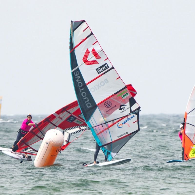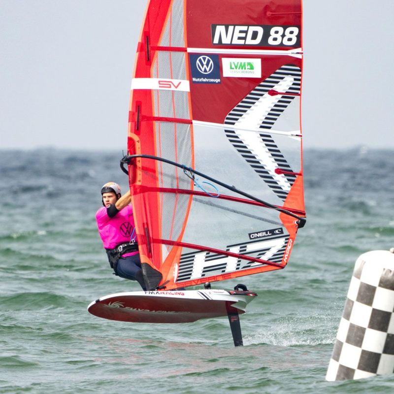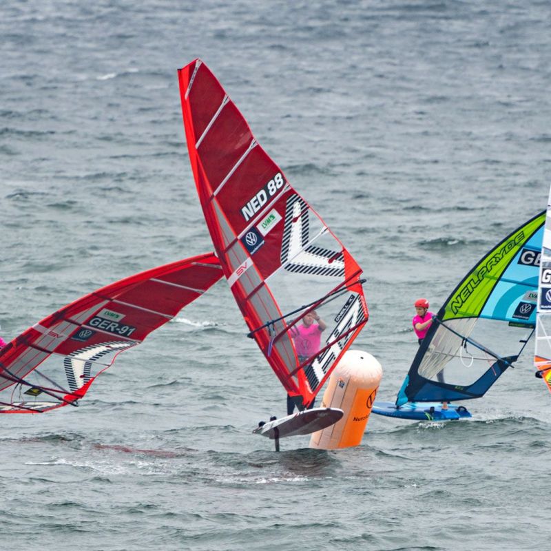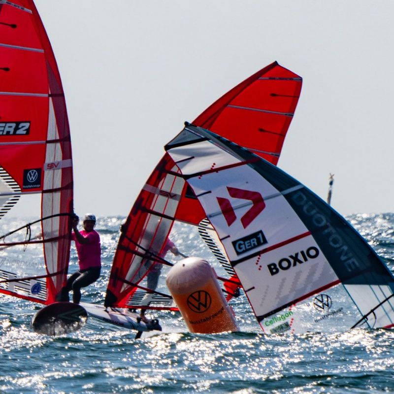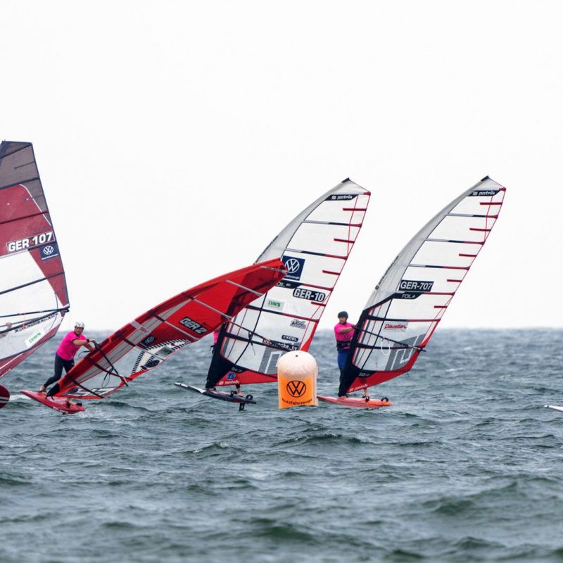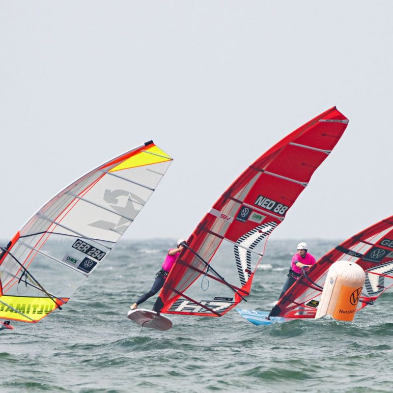 Fulminanter Auftakt bei den GWA Championships im Rahmen des California Surf Cups Sylt vor dem Brandenburger Strand. Nach drei Foil Slalom Entscheidungen setzt sich Vincent Langer vor Jonne Heimann und Anton Richter vorläufig an die Spitze.