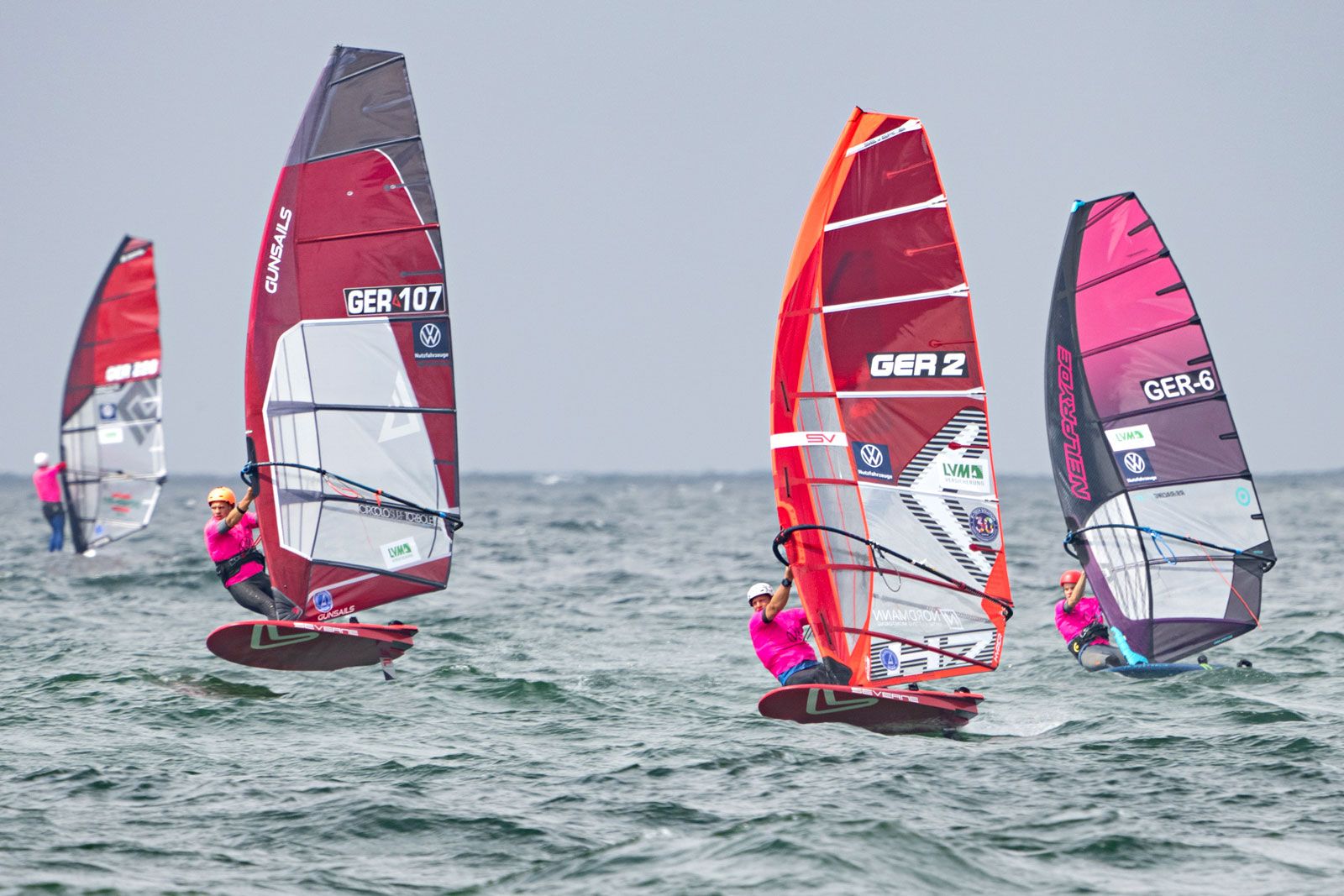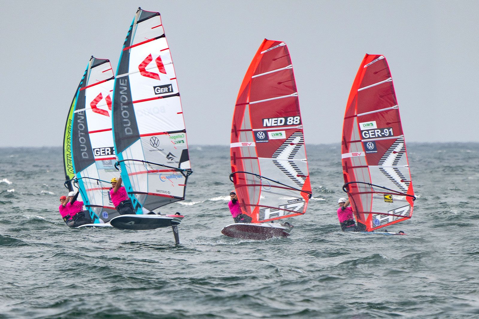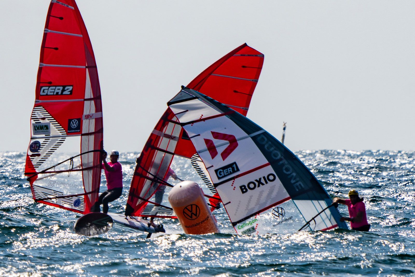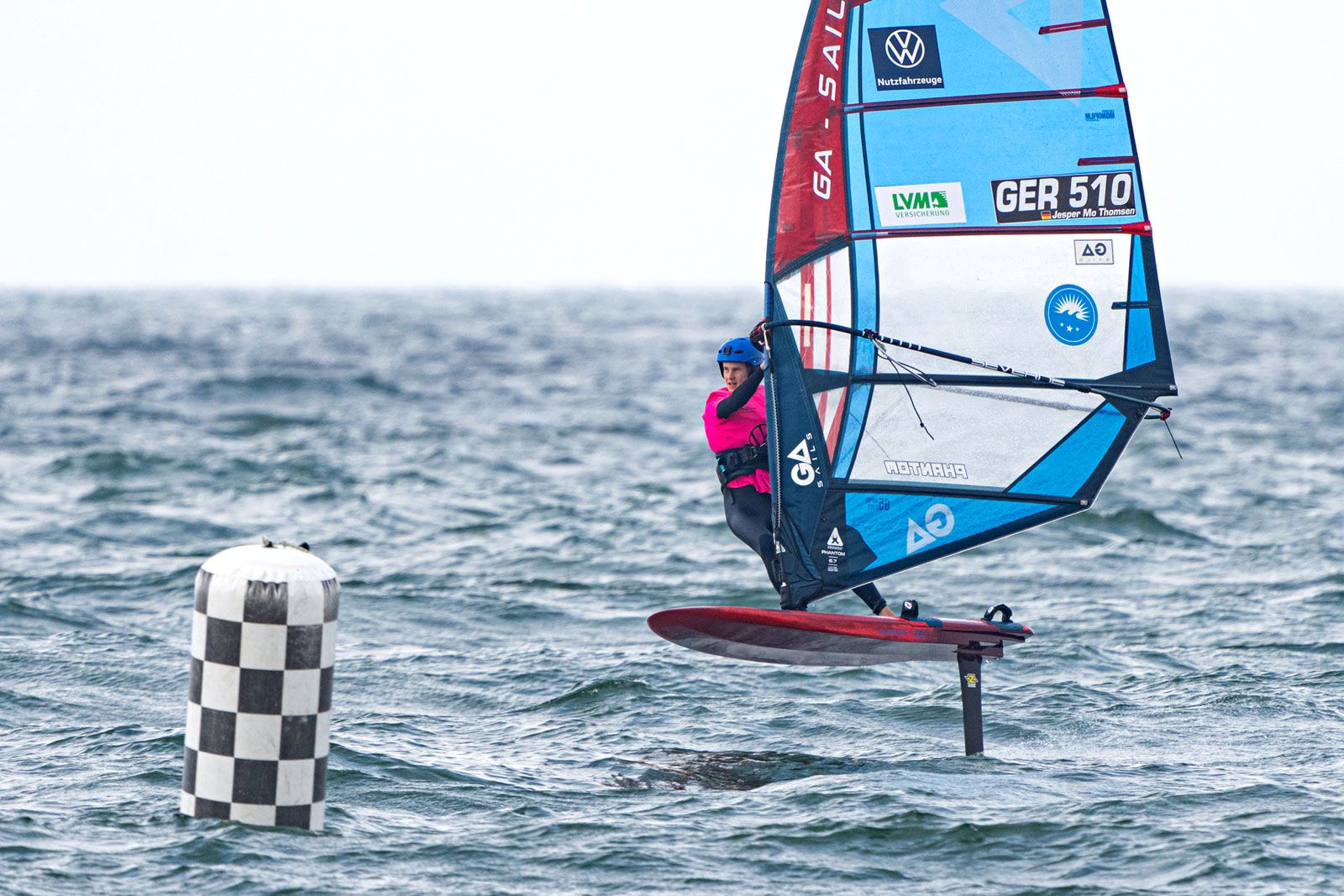 Nach drei Wettfahrten gibt es bekanntlich den ersten Streicher. So kommt Vincent Langer am Eröffnungstag mit zwei Laufsiegen auf die Idealpunktzahl 0,0, da er den Frühstart aus dem ersten Finale streichen kann. Auf dem zweiten Platz im Titelrennen folgt Jonne Heimann, der mit einem ersten und einem zweiten Platz punktet und so auf 2,0 Punkte kommt. Mit etwas Abstand folgt aktuell Anton Richter. Zweimal Platz drei sichern ihm 6,0 Punkte. Spannend gestalltet sich der Kampf um Platz vier. Der Niederländer Koen Hessels und der Flensburger Gunnar Asmussen liegen hier nach den drei bisherigen Wettfahrten punktgleich Kopf-an-Kopf. Beide kommen jeweils mit einem zweiten und einem fünften Platz auf 7,0 Punkte. Erst im Tiebreak kann sich Koen Hessels durchsetzen und so bis auf weiteres Platz vier erobern. Gunnar Asmussen komplettiert derzeit die Top-5.