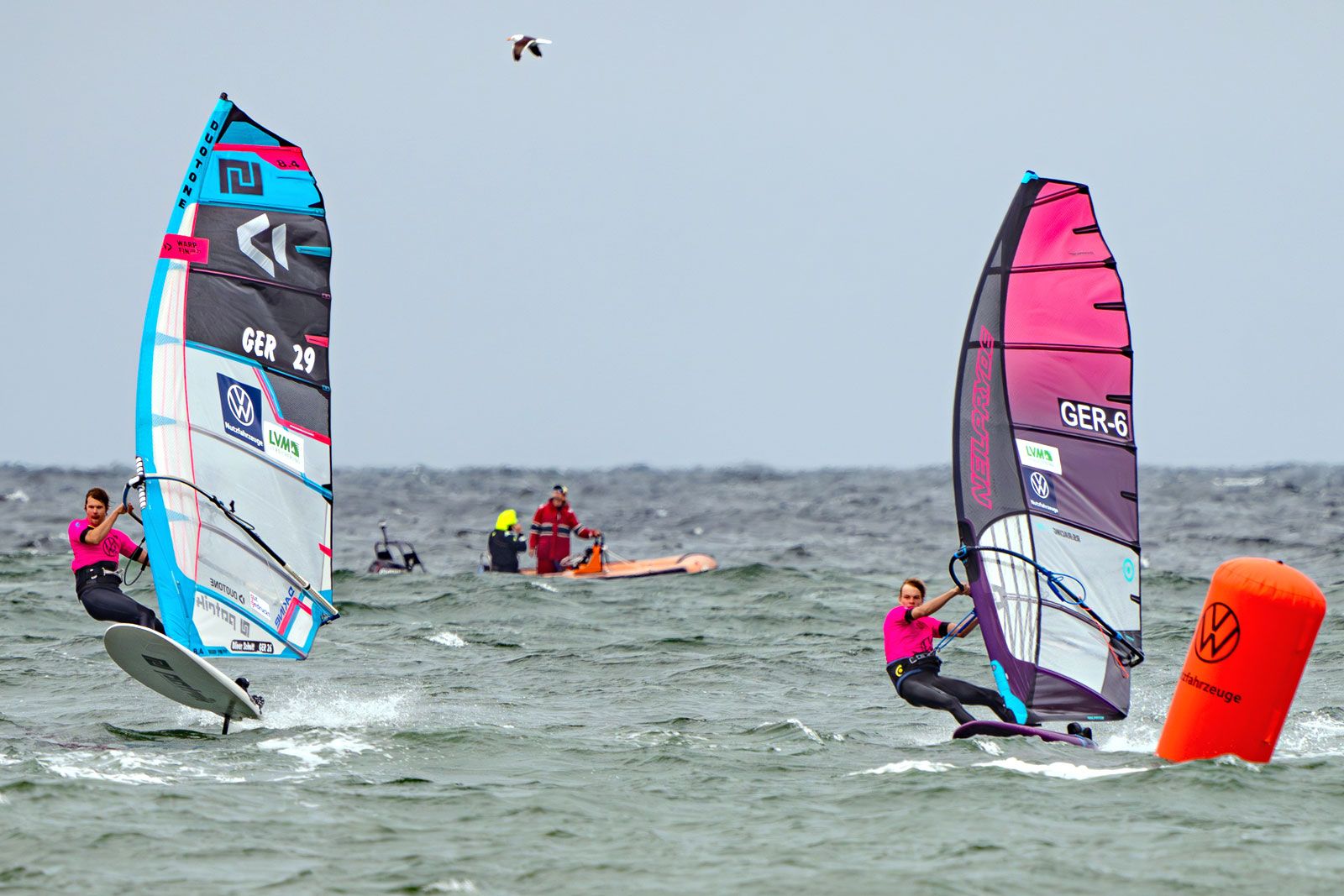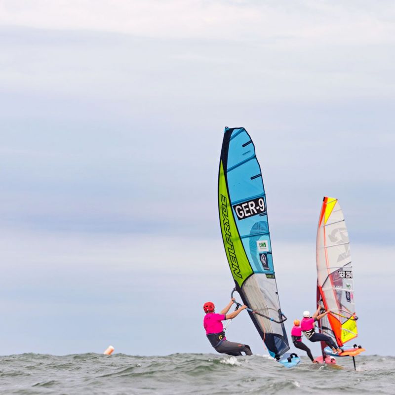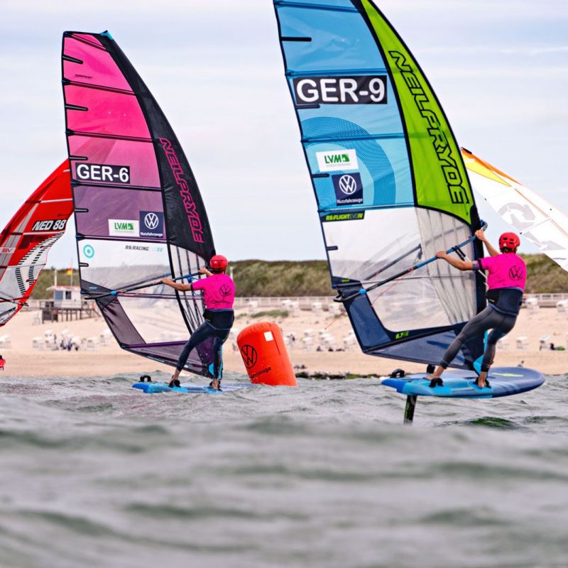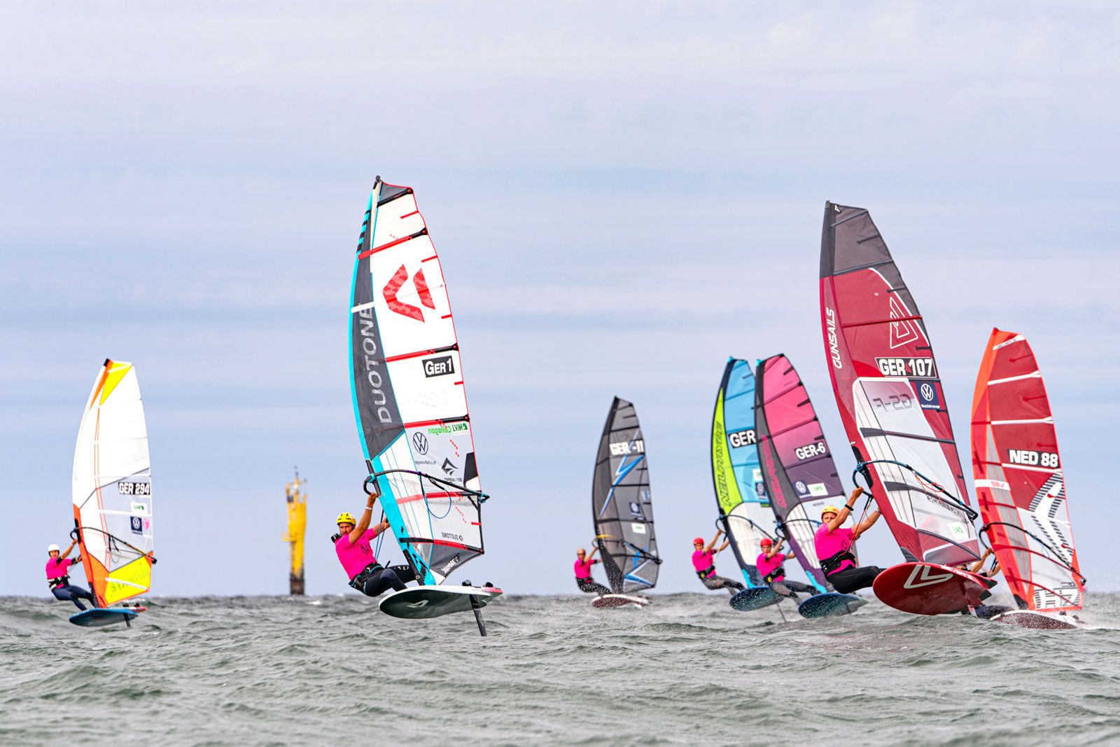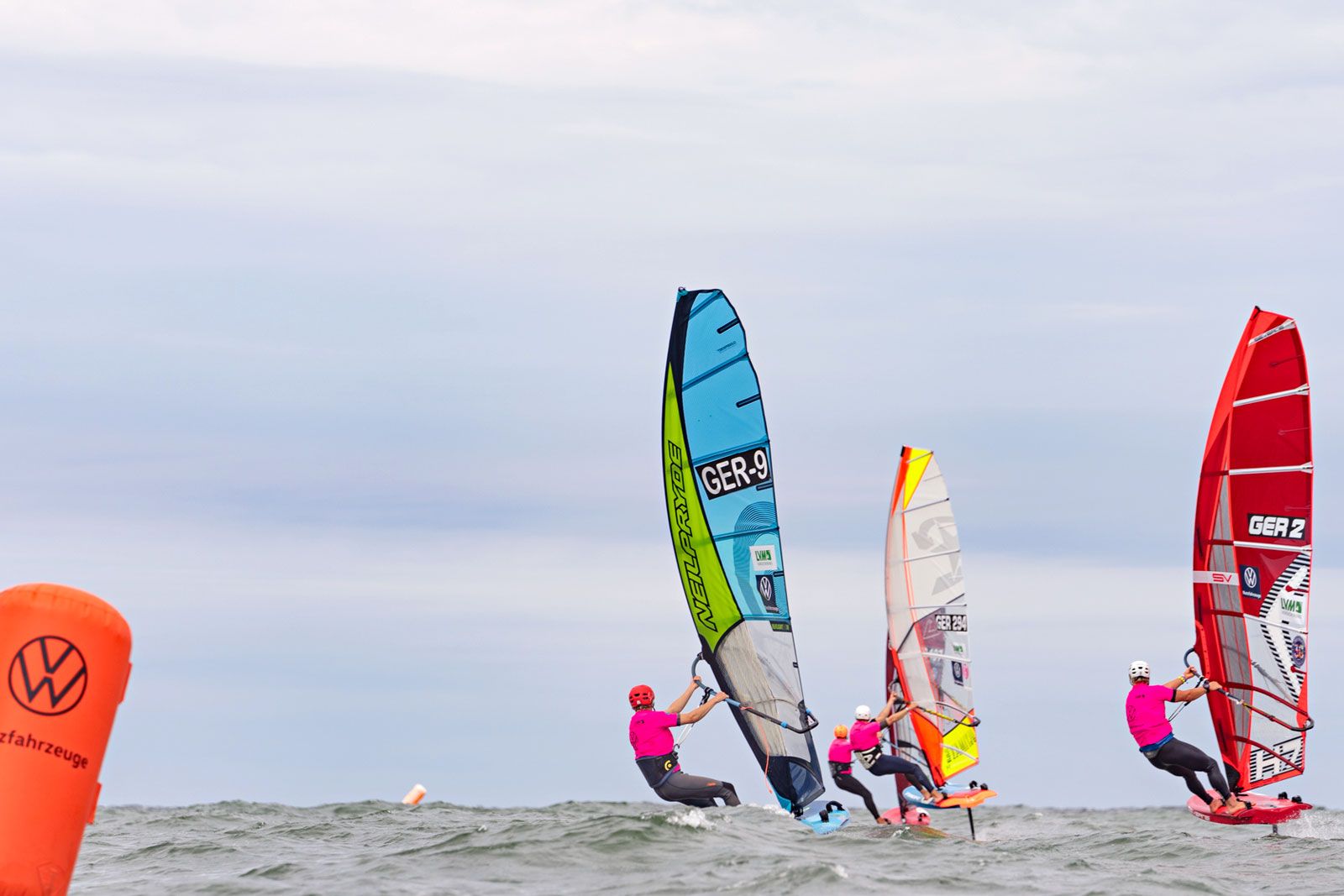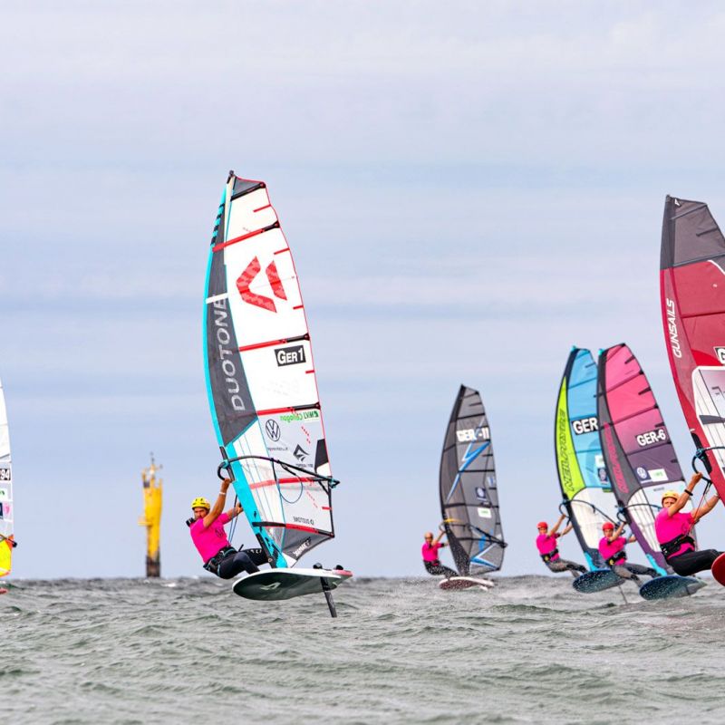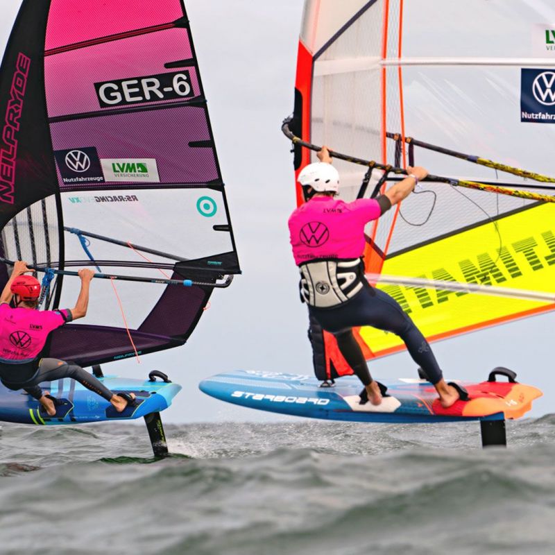 In der Disziplin Foiling stehen somit am Ende des dritten Wettkampftags fünf komplette Eliminationen zu Buche. Vincent Langer führt hier die Wertung mit der Idealpunktzahl von Netti 0,0 Punkten weiterhin an. Er kann nach zwei Streichern seinen zweiten Platz in der zweiten Wettfahrt heute und den zehnten Platz nach seinem Frühstart im Finale der Eröffnungswettfahrt am ersten Tag streichen. Auf Platz zwei folgt Jonne Heimann. Er ist der einzige, der neben Vincent Langer auch Laufsiege einfahren konnte. Mit zwei Siegen und einem zweiten Platz kommt er in der Gesamtwertung auf 2,0 Punkte. Mit einem weiteren Sieg würde er aufschließen und hat damit noch alle Chancen, GWA Foiling Champion 2024 zu werden. Mit deutlicherem Abstand folgt Koen Hessels auf dem dritten Platz. Auch Anton Richter und Alexander Neubert können sich mit Platz vier und fünf noch Hoffnungen auf das Podium machen. Der Drittplatzierte im Foiling, Koen Hessels, führt in der Youth U21-Wertung vor Leo Richter und Keno Recke. In der Youth U19-Wertung liegt hier Anton Richter vor Erik Wehkamp und Jesse Richter an der Spitze. Bei den Junioren U17 führt im Foil Slalom Paul Regber vor Jesper Mo Thomsen.