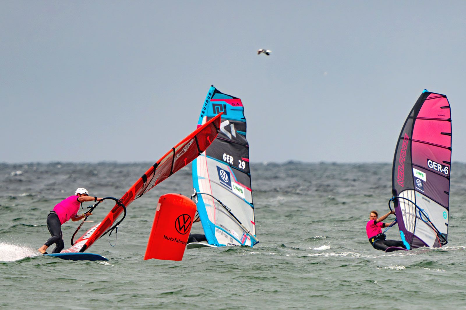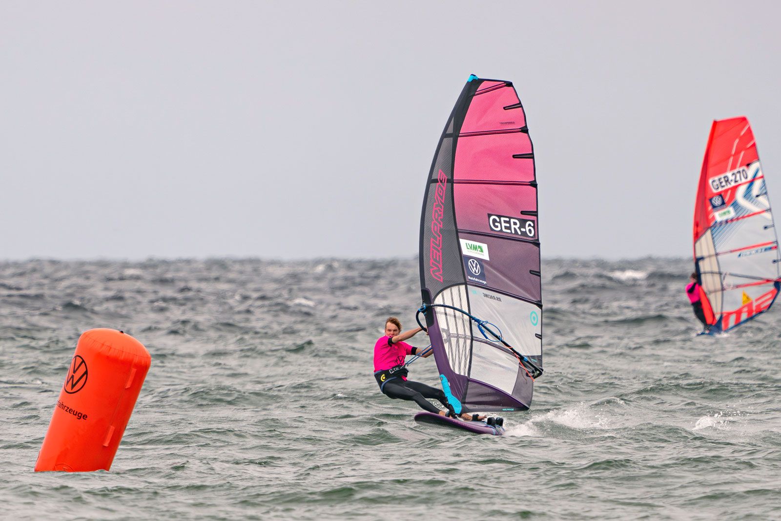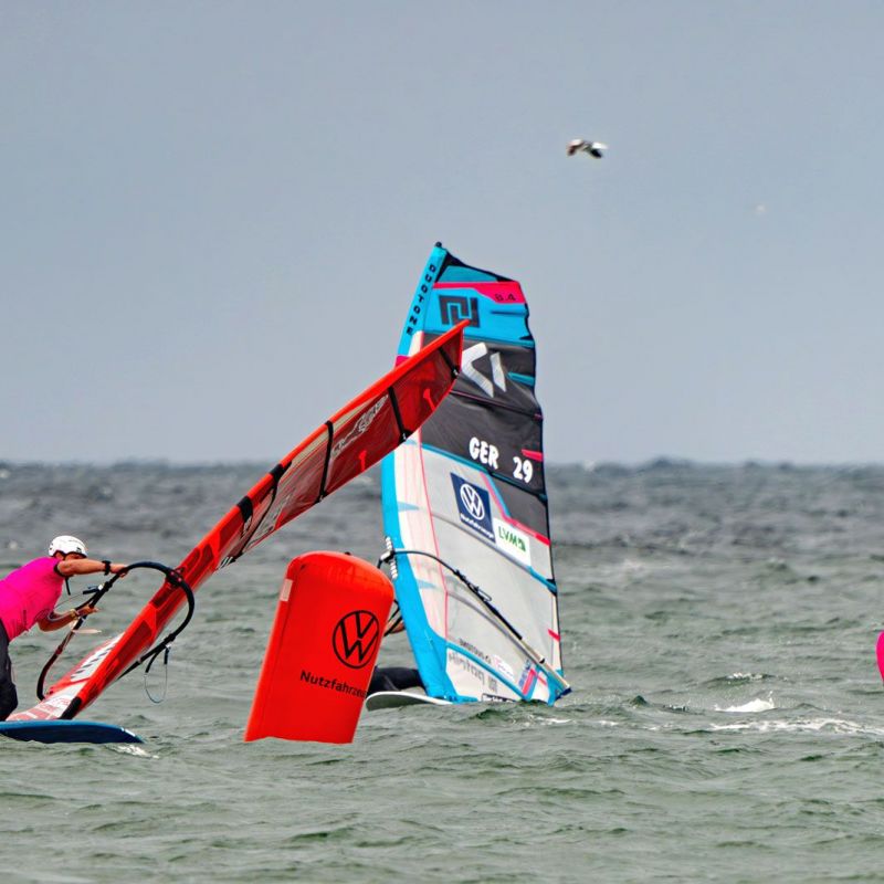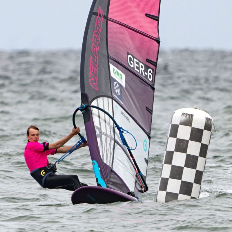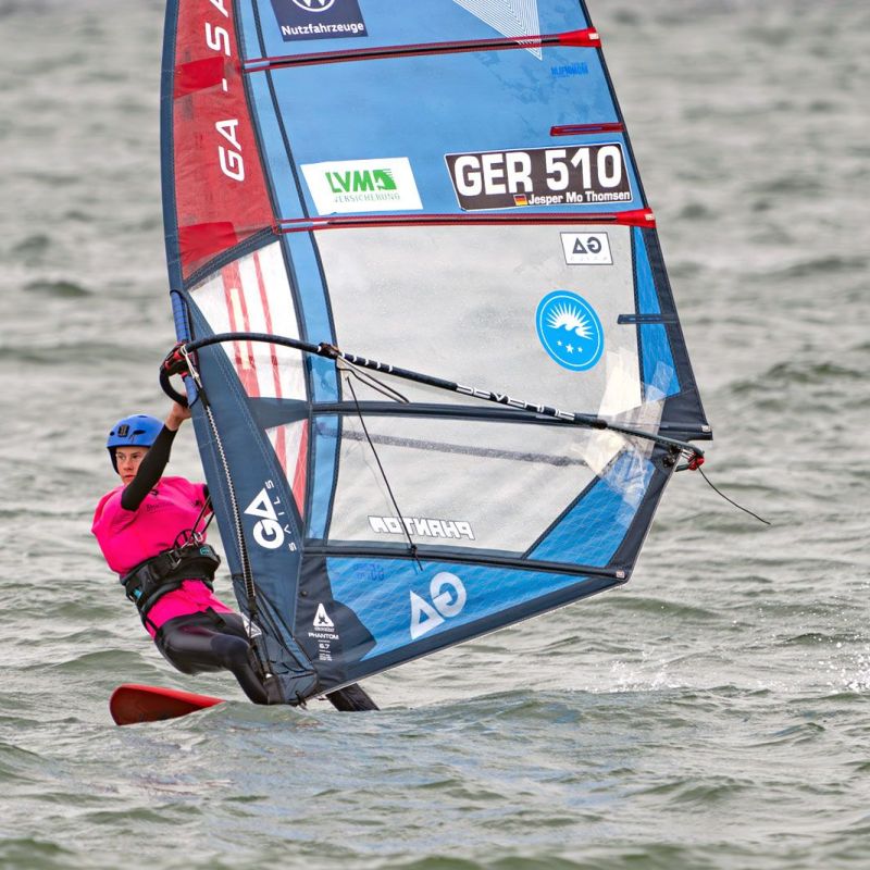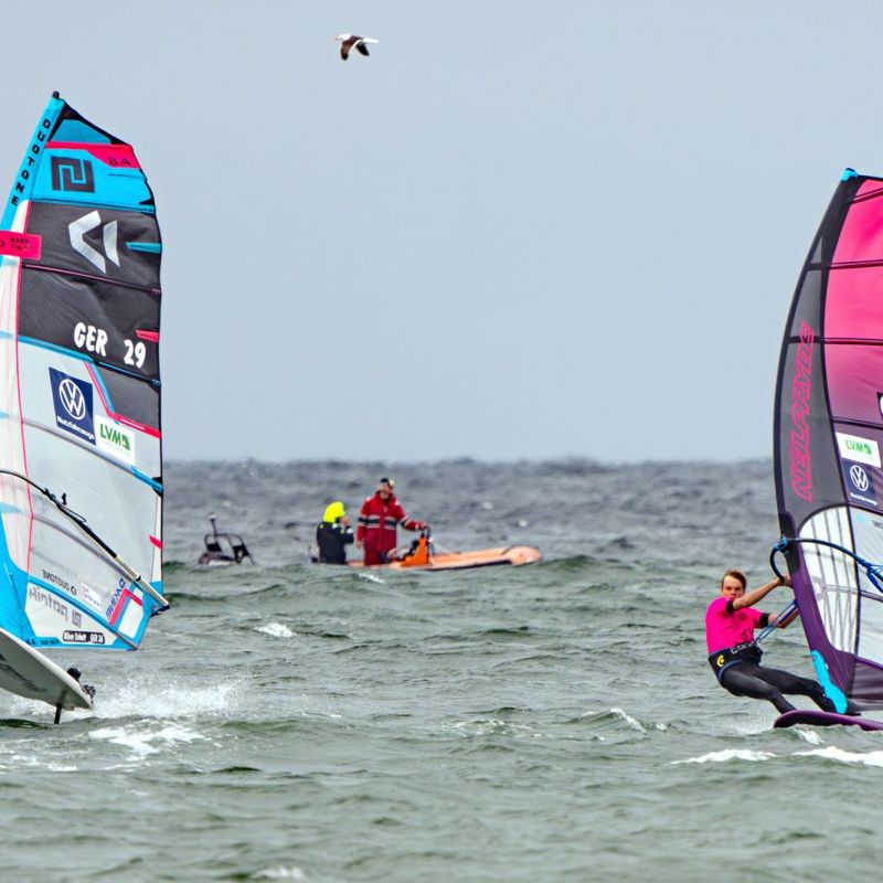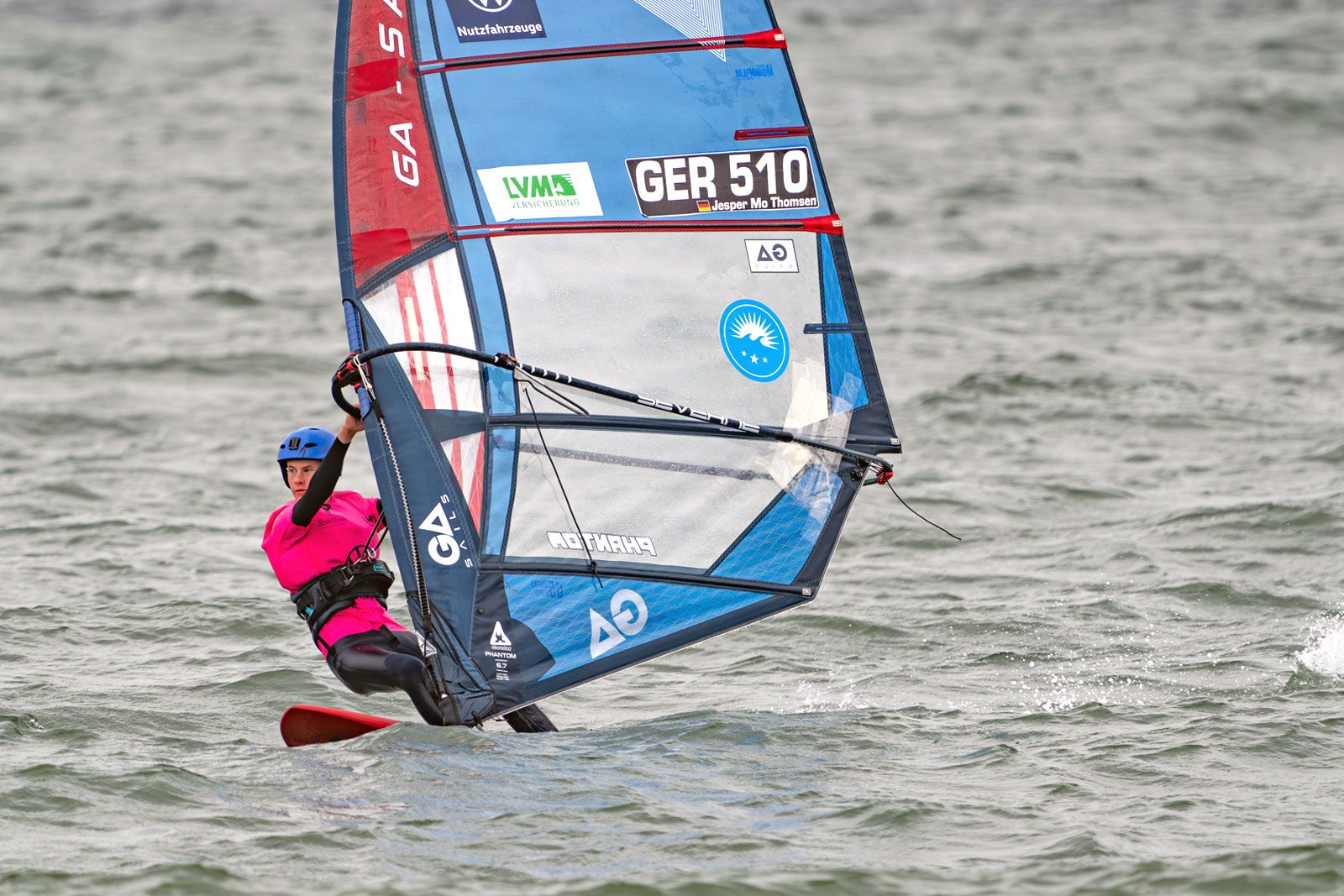 Aufgrund der guten Windprognose entschied die Regattaleitung im Anschluss auf die Disziplin Fin Slalom zu wechseln. Doch entgegen der Vorhersage wurde der Südwind im Laufe der Fin Slalom Elimination mehr und mehr löcherig. Die machte den Lauf zu einer Belastungsprobe für Fahrer und Regattaleitung. Überraschenderweise kam der eigentlich für seine Performance bei Starkwind bekannte Flensburger Gunnar Asmussen am besten mit den herausfordernden Bedingungen klar. In einem spannenden Dreikampf konnte er sich auf der Zielgeraden gegen Anton Richter und Justus Schott durchsetzen. Überraschend stark zeigte sich Florian Bandel mit dem vierten Platz. Die Top-5 im Fin Slalom werden von Leo Richter komplettiert. Da der Wind in der Folge leider weiter nachließ, entspricht die Laufplatzierung auch der aktuellen Ergebnisliste in dieser Disziplin. Bester Youth U19-Fahrer im Fin Slalom ist Anton Richter vor Erik Wehkamp und Jesse Richter. In der Youth U21-Wertung führt Leo Richter vor Koen Hessels und Keno Recke. In der Junior U17-Wertung liegt Jesper Mo Thomsen vor Paul Regber.
