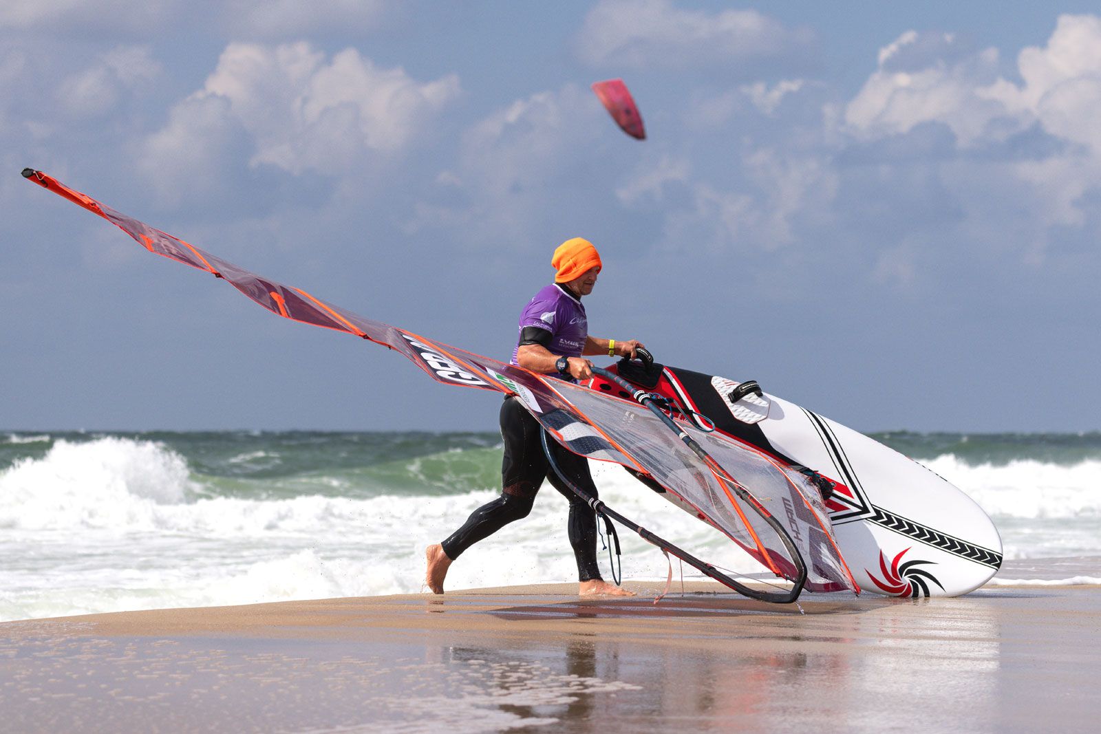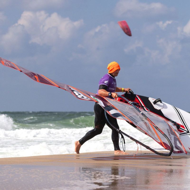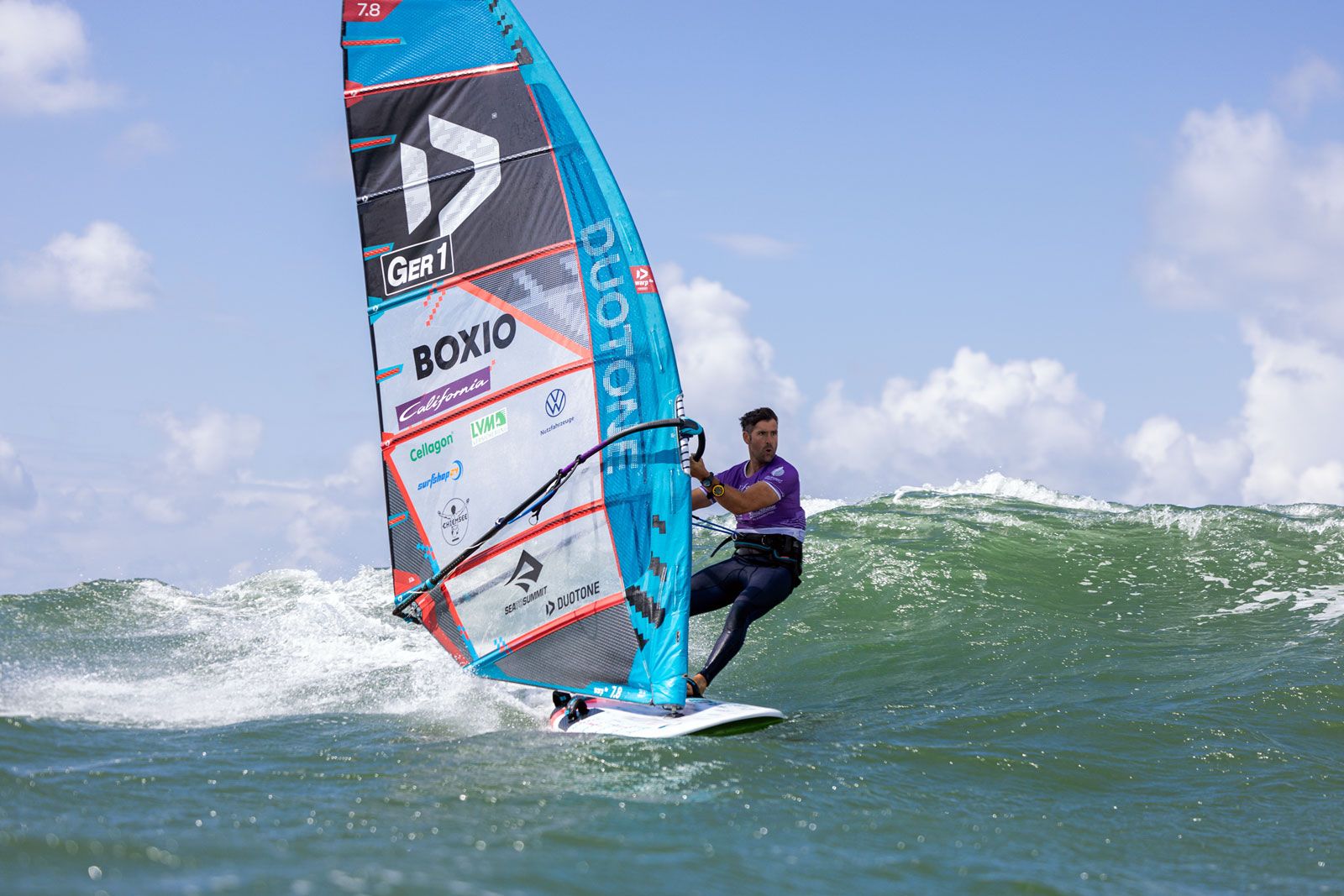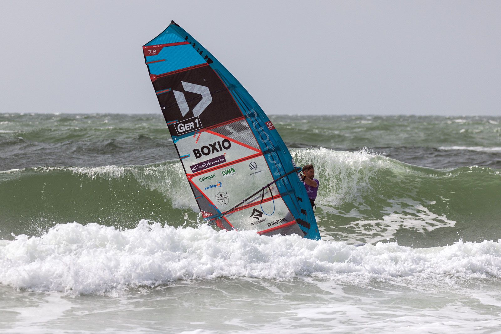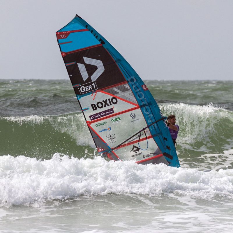 von Sven BlockStarker Wind und hohe Wellen brachten radikale Bedingungen an den Brandenburger Strand. Zu extrem, um Boote sicher auf die Nordsee zu schicken und offizielle Rennen auszutragen. Trotzdem gab es spektakuläre Action am Eröffnungstag des California Surf Cups vor Sylt. Beim Tower Race mussten die Teilnehmer ein Langstreckenrennen bis zum markanten „Langen Hans“ und wieder zurück zum Strand absolvieren. Vincent Langer kam am besten mit den extremen Bedingungen zurecht und konnte sich so den Sieg vor Gunnar Asmussen und Fabian Wolf sichern.