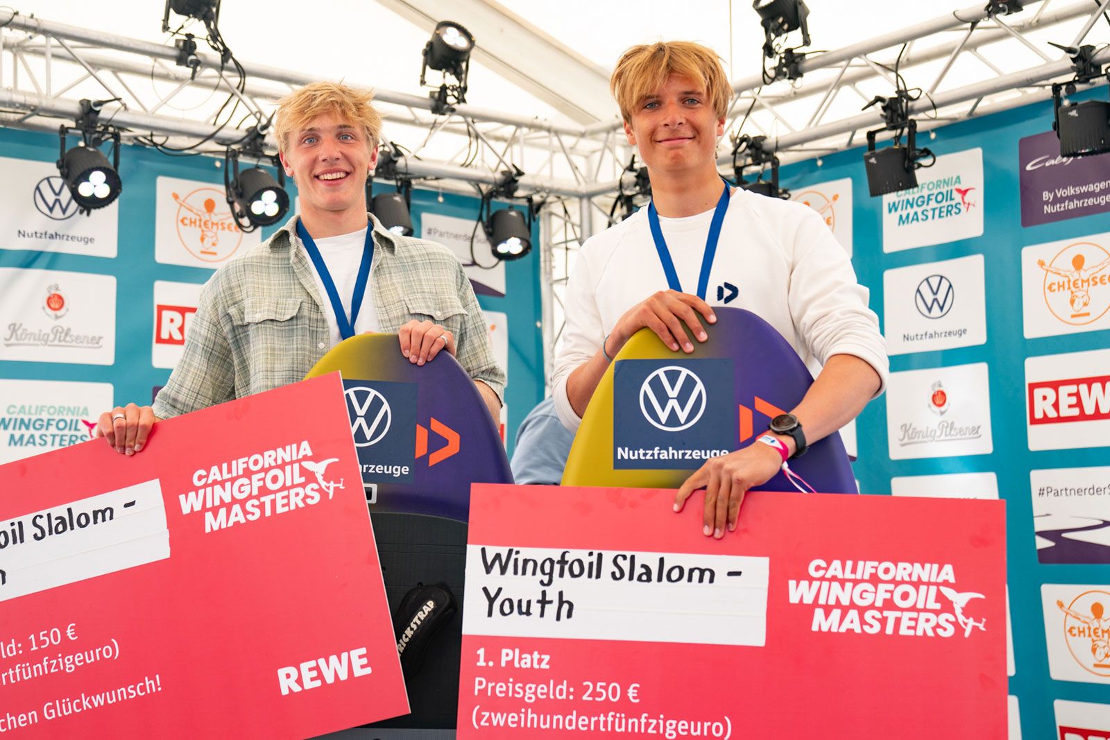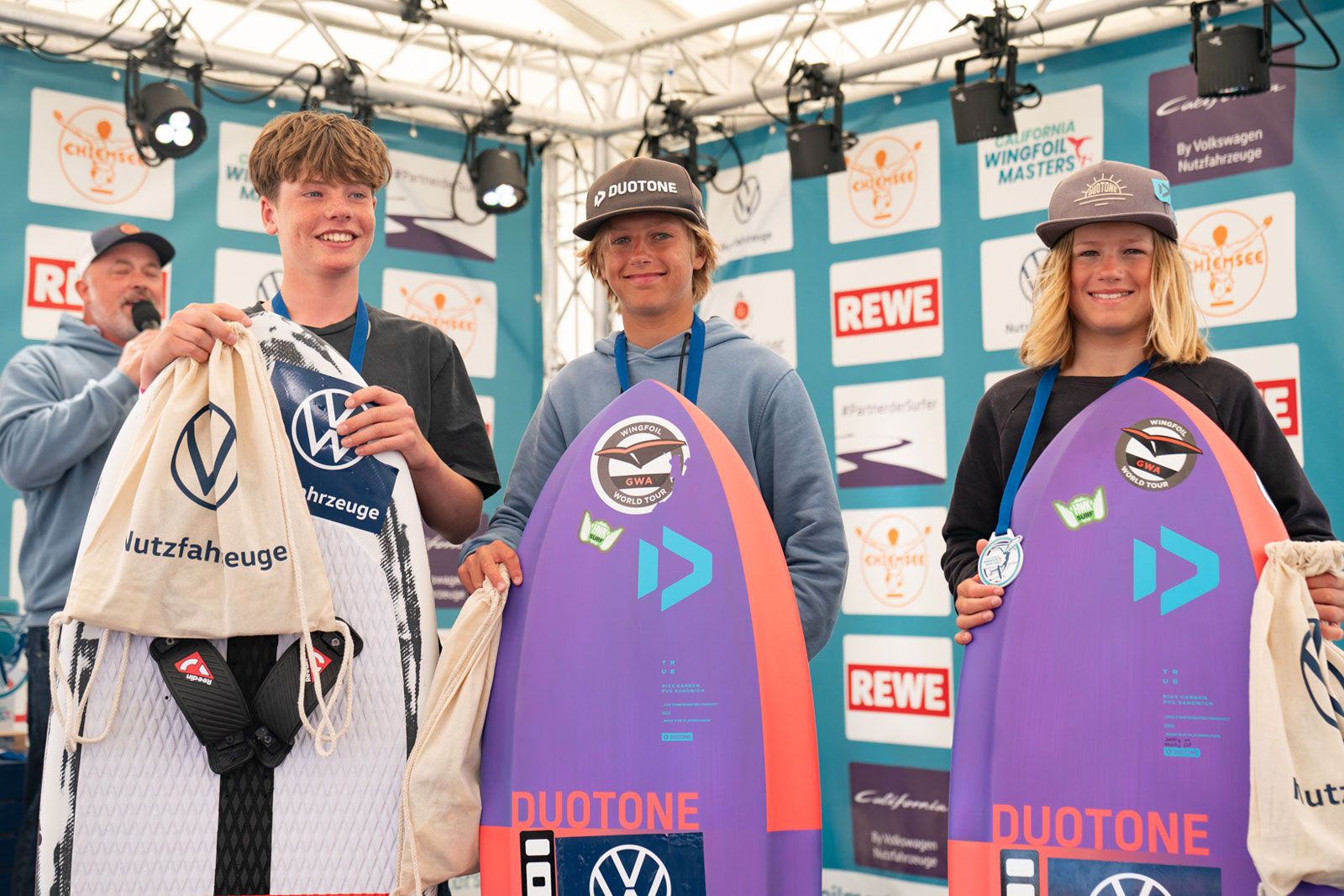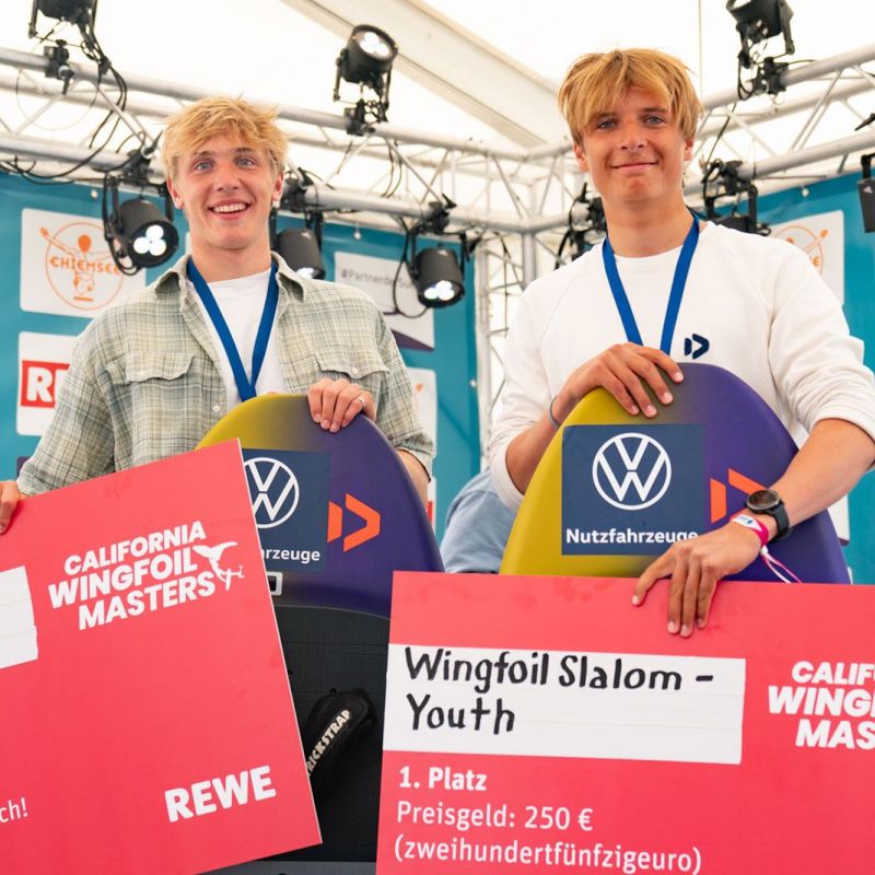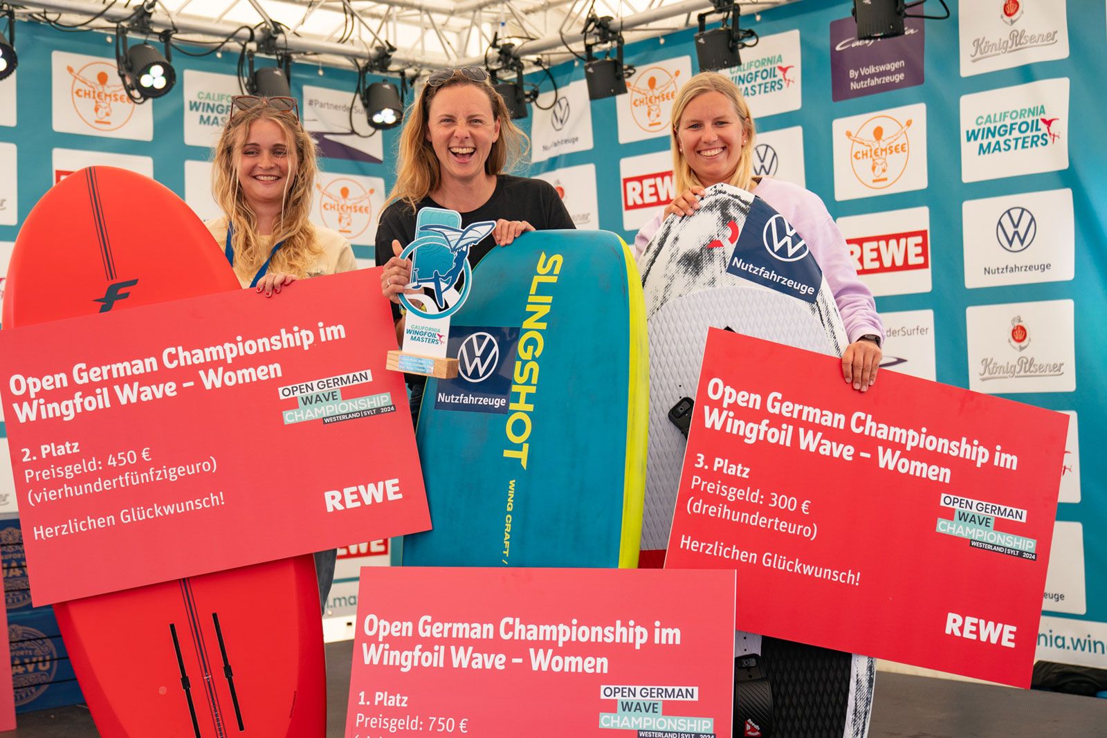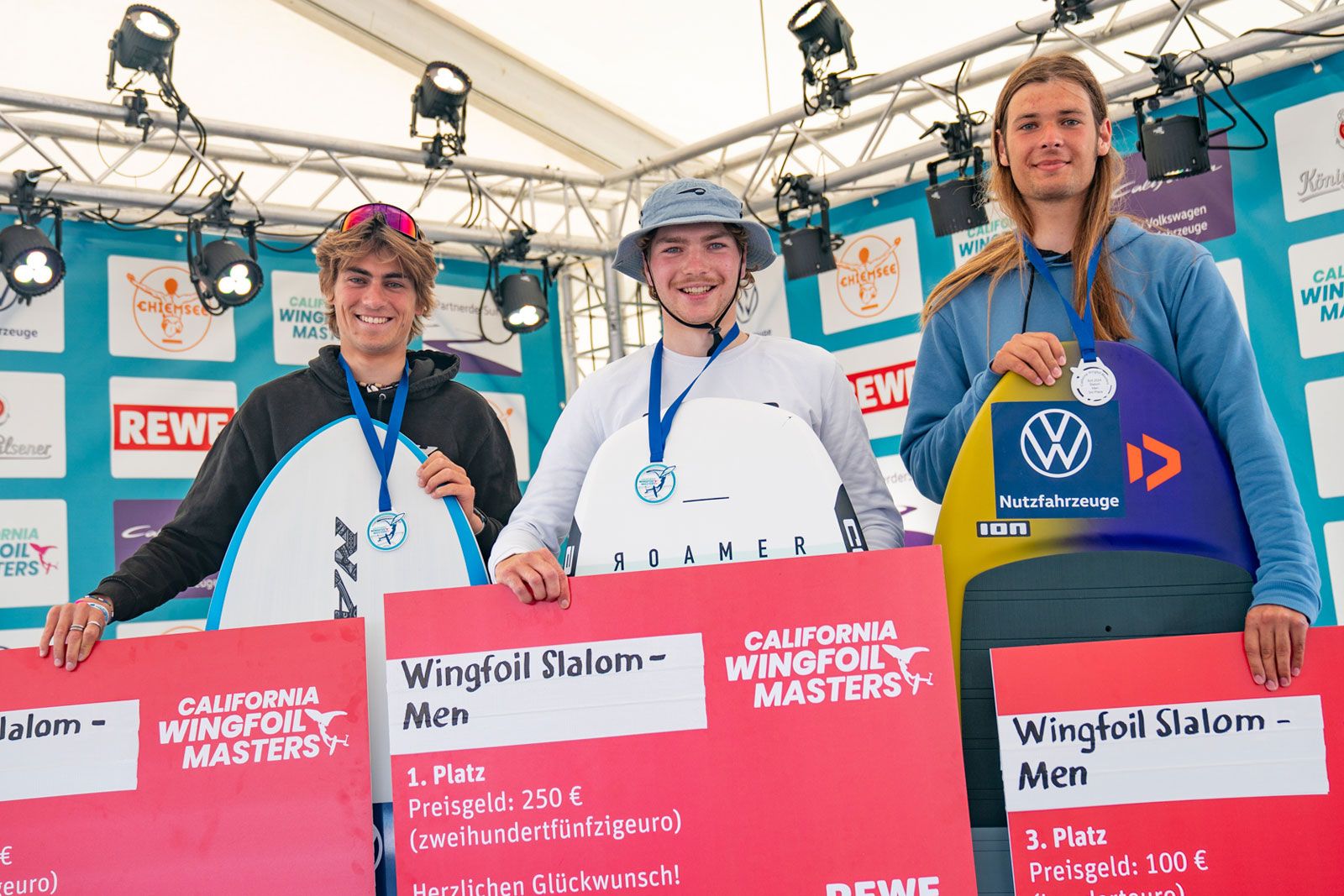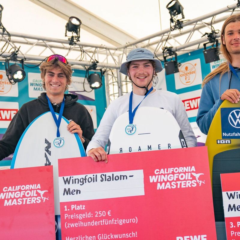 Bei den Herren fiel die Entscheidung am finalen Sonntag. Hier setzte sich Klaas Voget im Finale durch und ist so erster German Champion im Wingfoil Wave. Damit sicherte er sich auch einen guten Teil der 3.000 € Preisgeld, die allein für diese Disziplin vom Sponsor REWE zu Verfügung gestellt wurden. Auf dem Weg ins Finale musste er sich gegen den Südafrikaner Dylan Wichmann und Simon Spinas durchsetzen, bevor er seinem Duotone-Teamkollegen Julius Manthei gegenüberstand. Im entscheidenden Duell um den Titel behielt Klaas Voget die Oberhand und verdrängte Julius Manthei auf Platz zwei. Im Kampf um Platz drei siegte Kjeld Hansen gegen Simon Spinas und sicherte sich so den dritten Platz auf dem Podium bei den Herren.