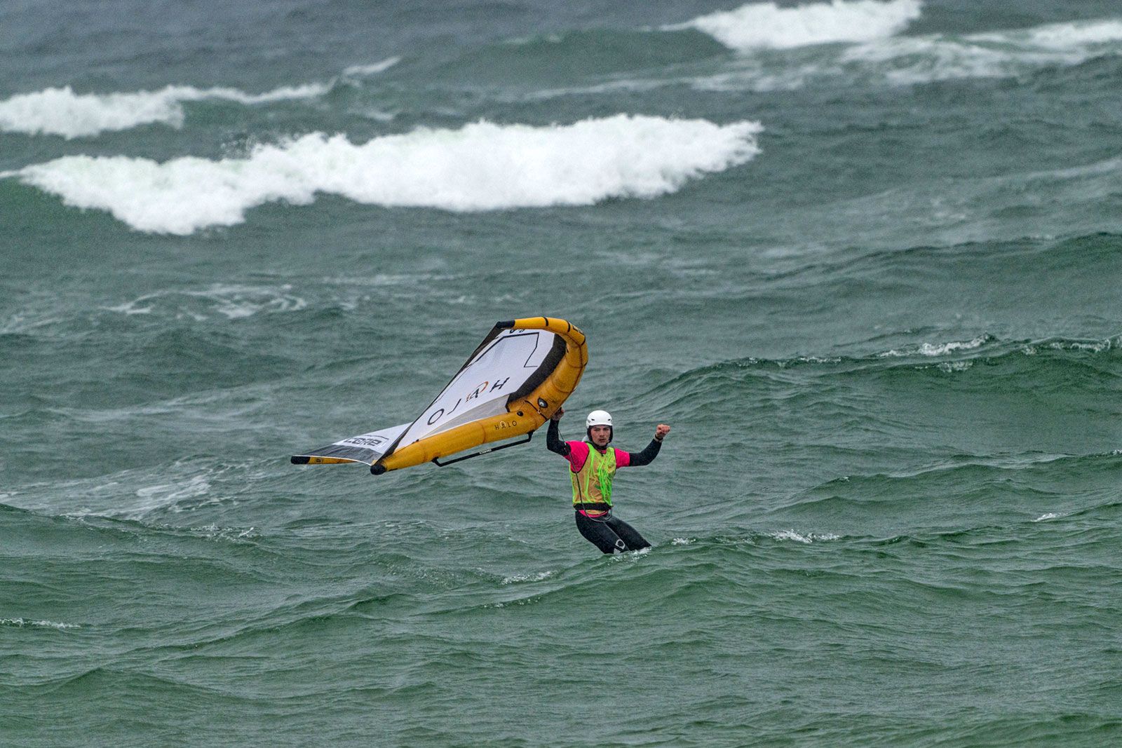 Erstmals wurde im Rahmen der California Wingfoil Masters Sylt die neue Championship Disziplin Wave ausgetragen. An zwei der sechs Regattatage ließen die Bedingungen die Durchführung von offiziellen Wettfahrten in dieser Disziplin zu. Insbesondere der Finaltag brachte mit bis zu sechs Windstärken und hohen Wellen noch einmal spektakuläre Bedingungen für die Premiere der neuen Championship Disziplin Wave.