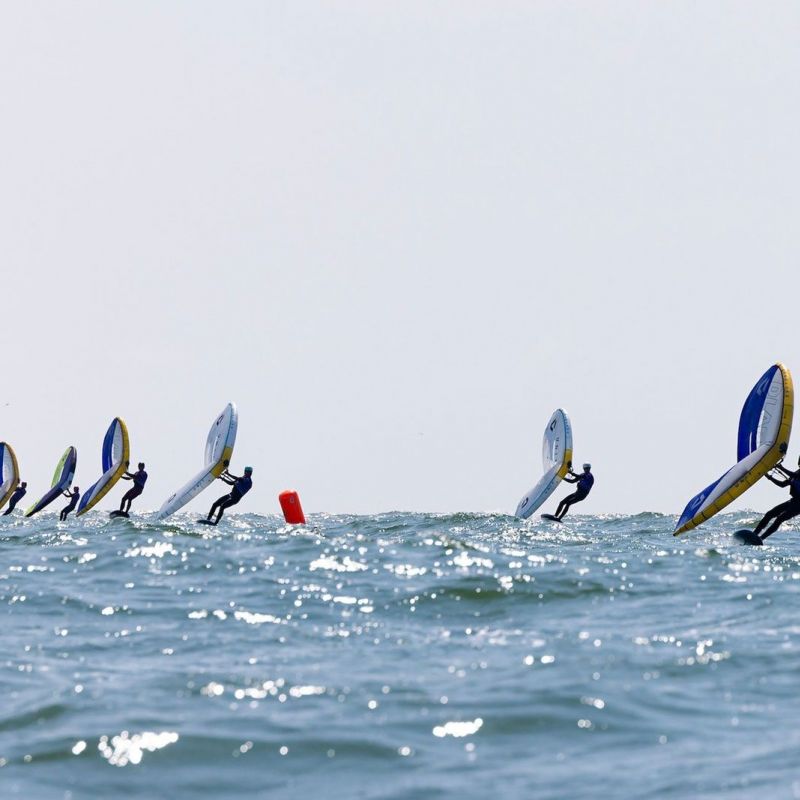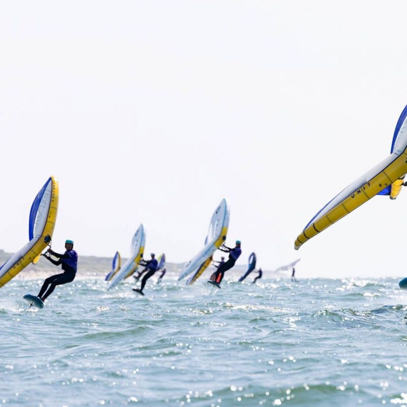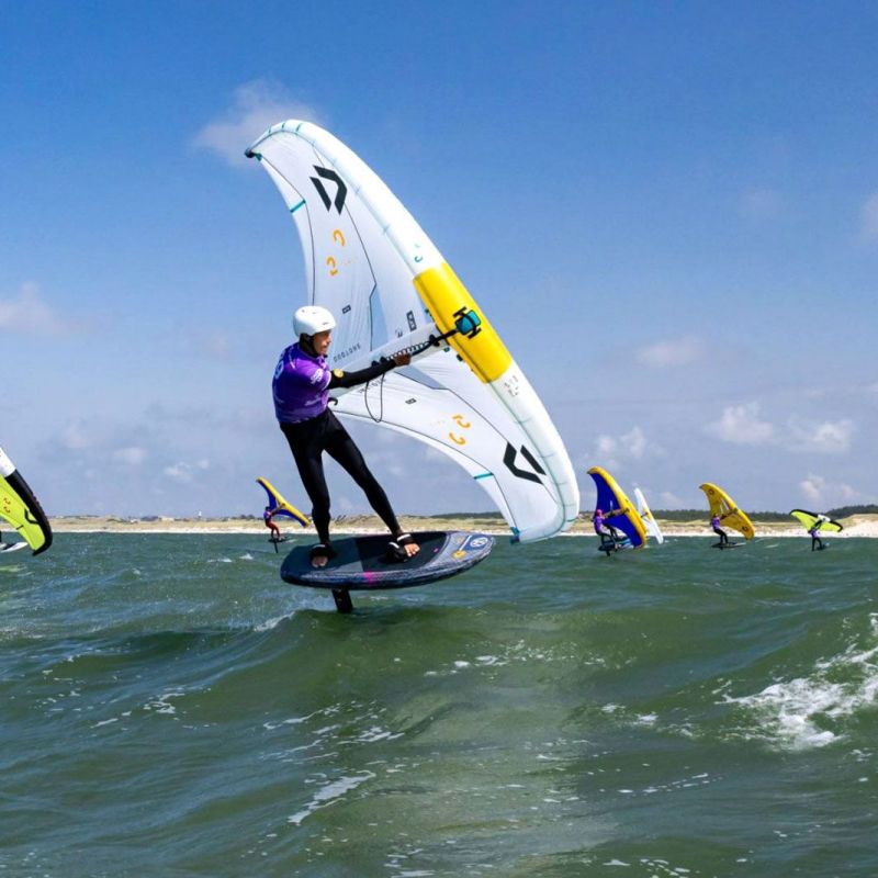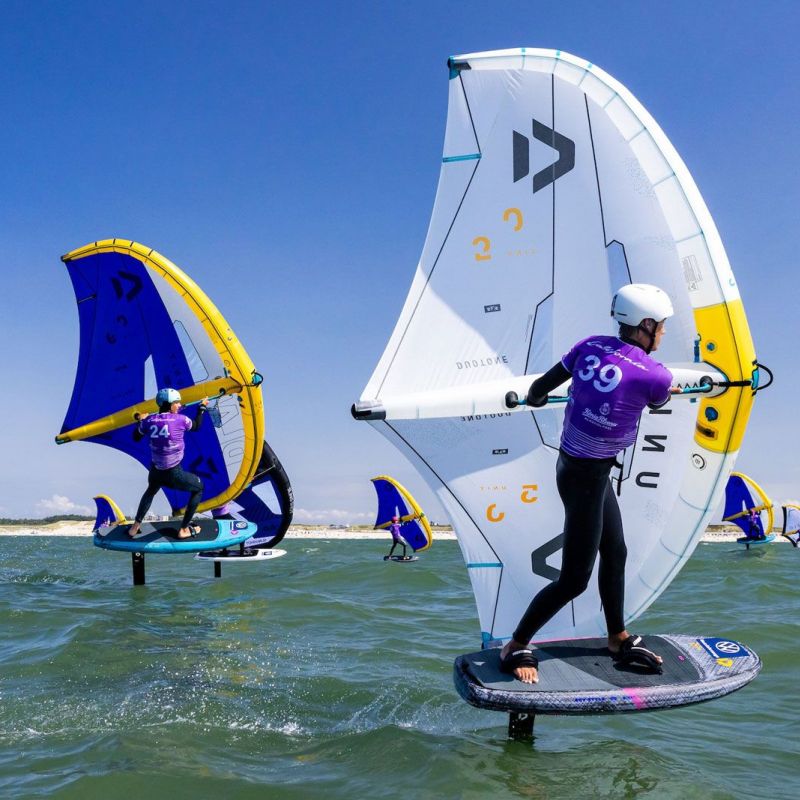 Nachdem die Wertungen für die Wingfoil Wave Championship bereits an den vergangenen beiden Tagen eingefahren werden konnten, ging es am vierten Tag im Full Fleet Format auf den Slalomkurs. Alle Starter rasten gemeinsam über einen Downwindkurs. Den vielen Besuchern am Brandenburger Strand bot sich so ein eindrucksvolles Bild auf der Nordsee.