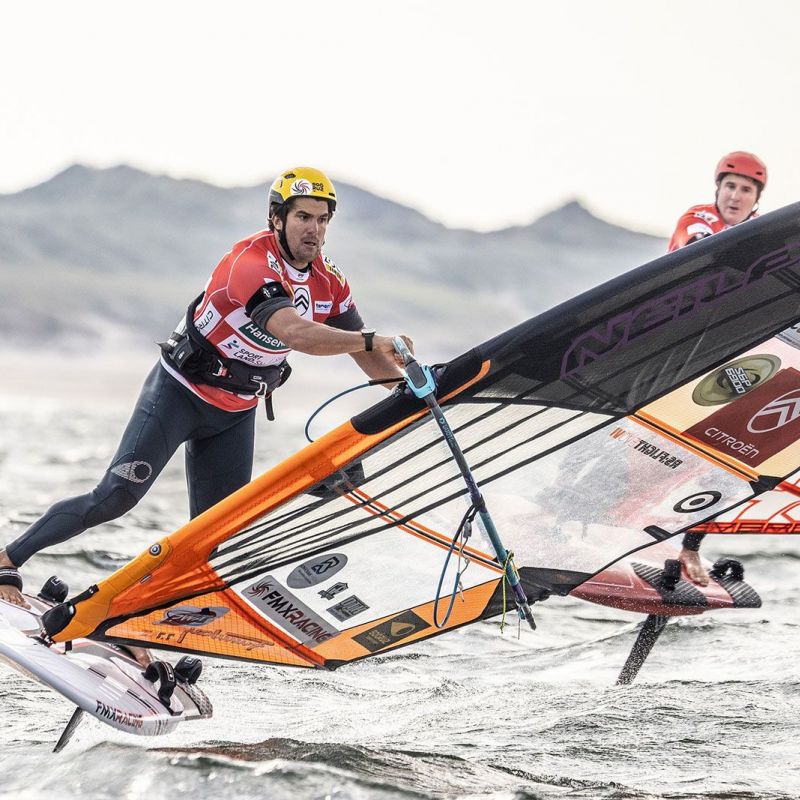 Pierre Mortefon führte heute das Eröffnungsrennen in der Anfangsphase an und ging als Zweiter in die vierte und letzte Halse, stürzte jedoch, nachdem er vom Medienboot abgelenkt wurde. Das war jedoch sein einziger Fehler heute, denn er erholte sich in den nächsten beiden Rennen mit einem soliden zweiten und dritten Platz. Angesichts der derzeitigen Prognose dürfte er im Rennen um den Weltmeistertitel jedoch wertvollen Boden verloren haben.