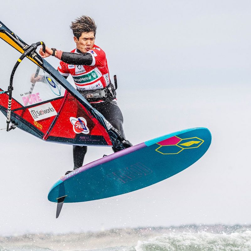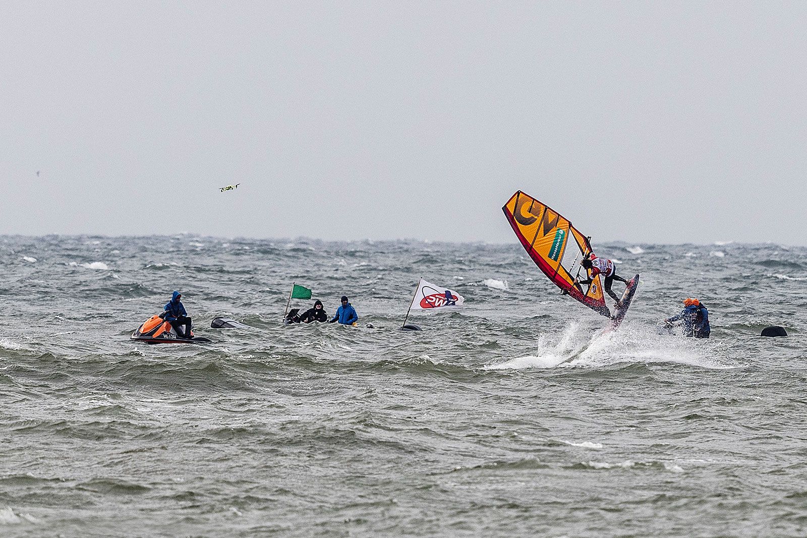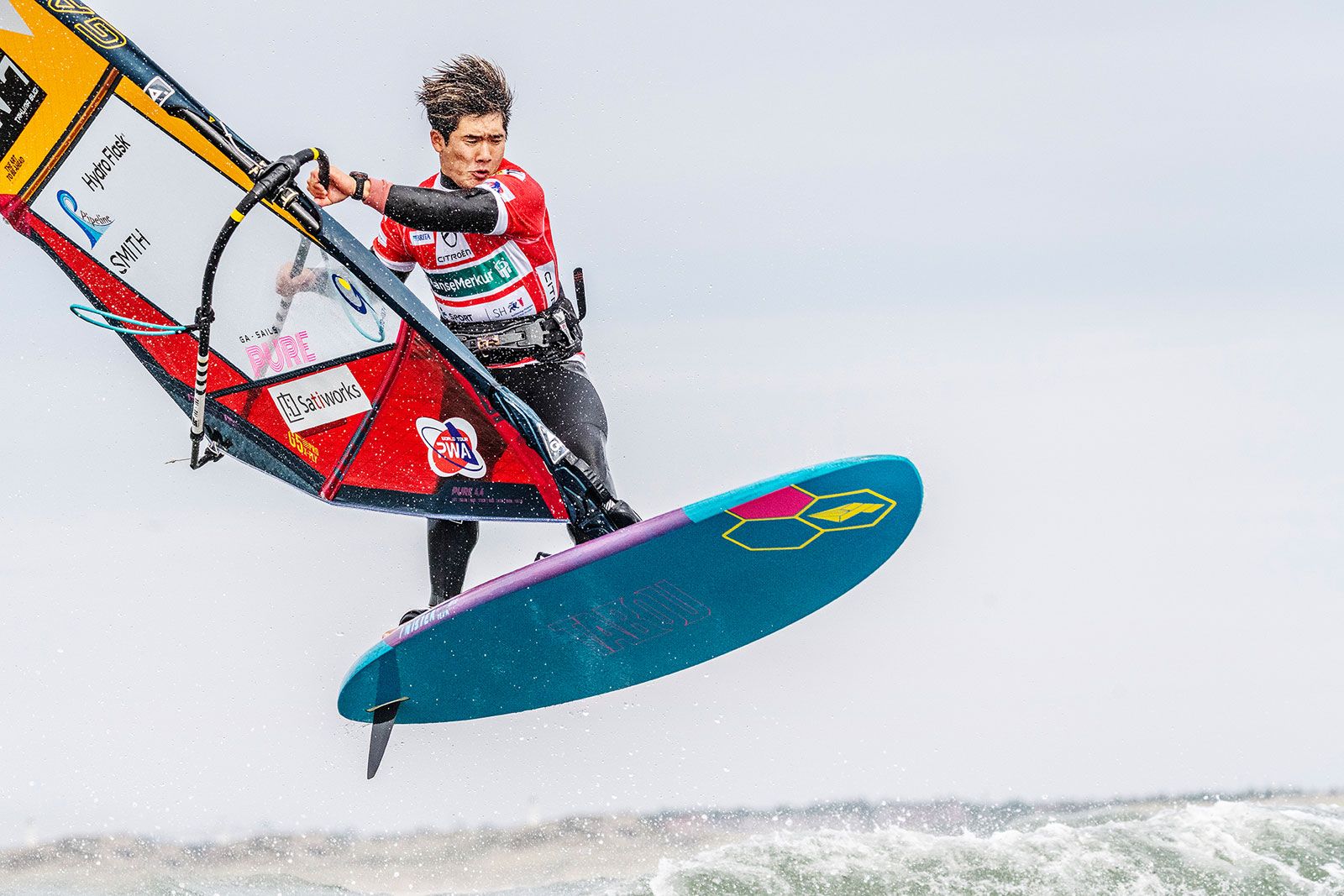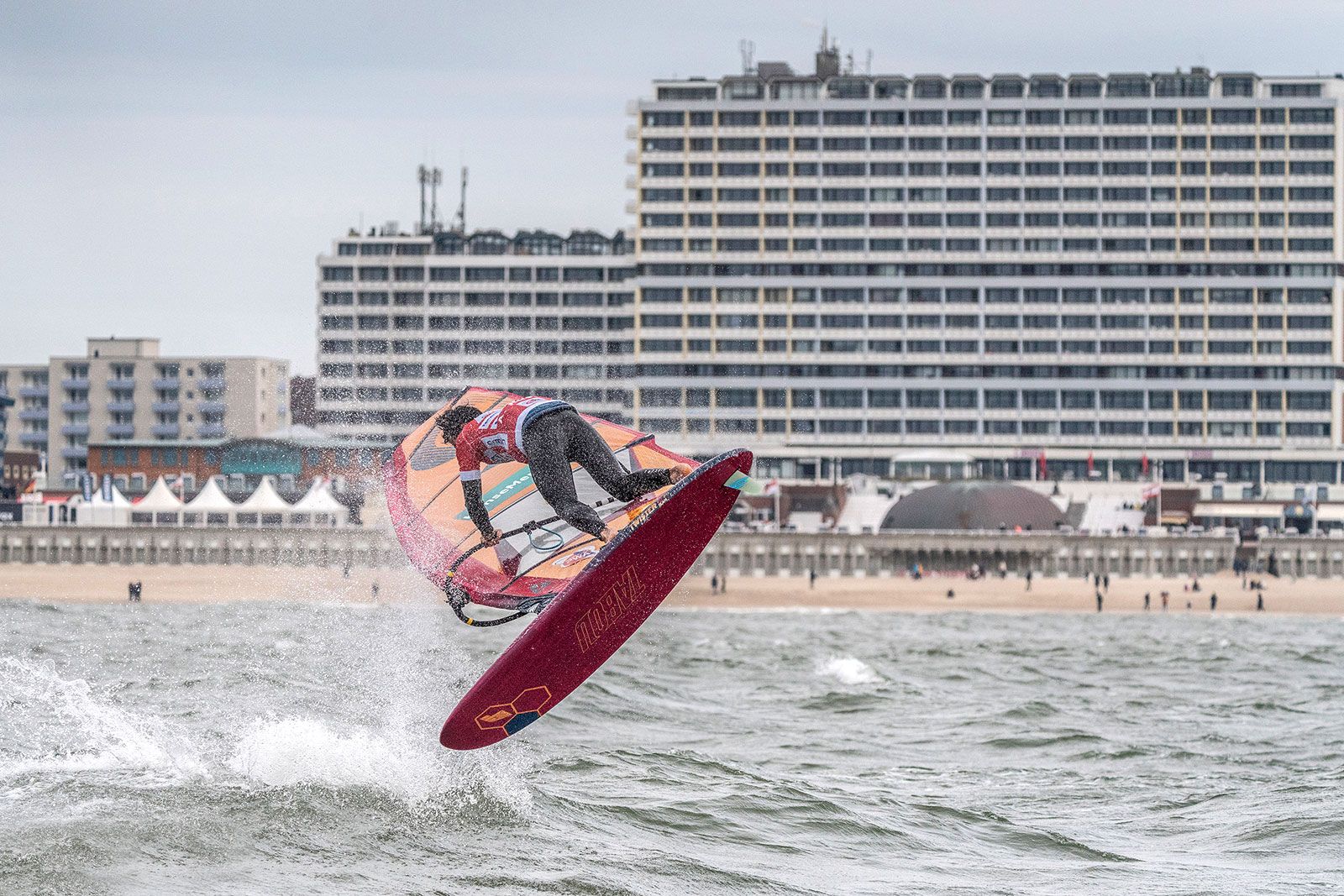 Takuma Sugi (Tabou / GA Sails / Black Project Fins) dürfte unterdessen nach einigen seiner besten Heats seine bisher bestes Ergebnis auf der Freestyle World Tour erzielt haben. In der Single Elimination belegt er gemeinsam mit Balz Müller (Severne Windsurfing), Youp Schmit (Flikka) und Dieter van der Eyken (Severne Windsurfing) den fünften Platz. Im Achtelfinale besiegte Dieter van der Eyken ausgerechnet seinen Schützling Takumi Moriya (Severne Windsurfing), der sich auf Platz 4 der Tour liegend, sicher mehr gewünscht hätte.