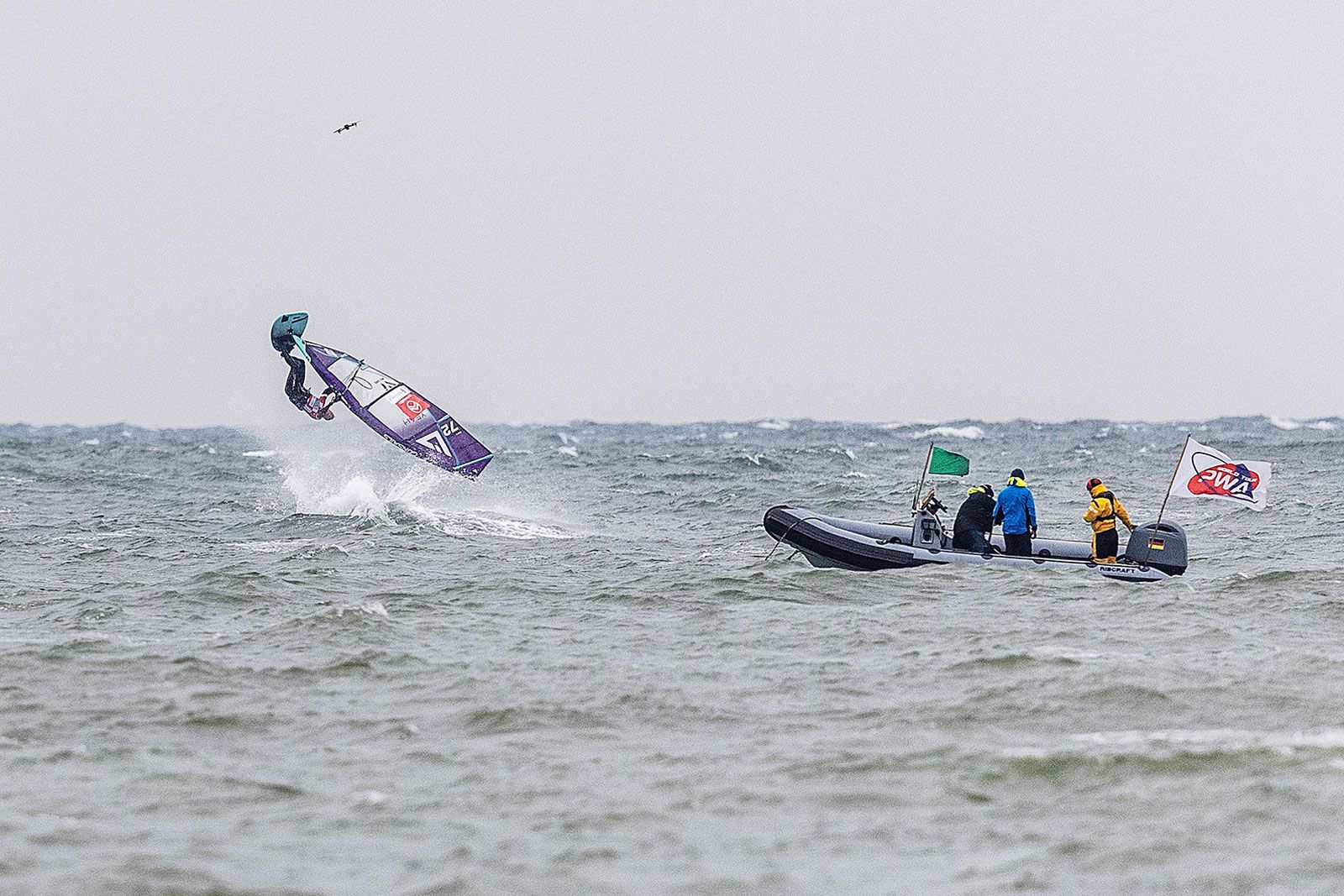 von Sven BlockSylt ist bekannt für die härtesten und anspruchsvollsten Freestyle-Bedingungen auf der Tour. Auch in den letzten Jahren hat Sylt fantastische Bedingungen geboten, und die Nordsee vor der beliebten Urlaubsinsel präsentierte sich auch am achten Tag des Citroën Windsurf World Cup 2025 erneut von der besten Seite: Starker, wenn auch etwas kühler Wind, kombiniert mit perfekten Kickern, sorgte für Skatepark-ähnliche Bedingungen. Zum Verdruss der vielen Zuschauer leider weit draußen, sodass die meisten mit den Großbildschirm vorlieb nehmen mussten, um die Action verfolgen zu können.