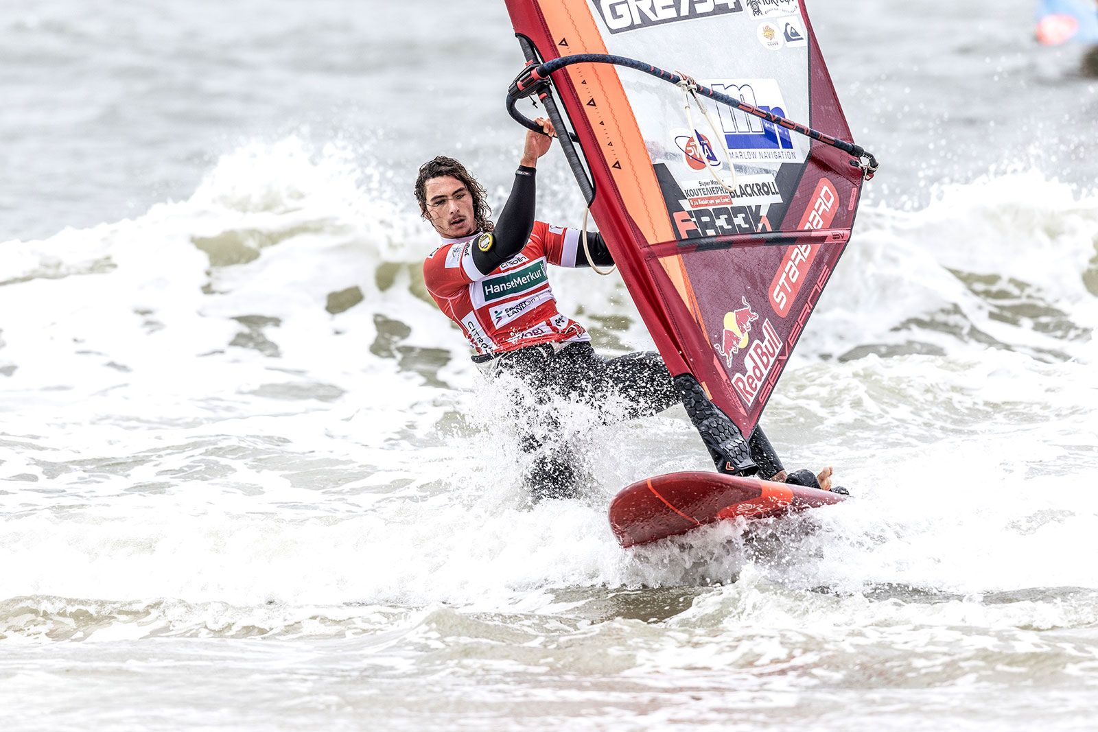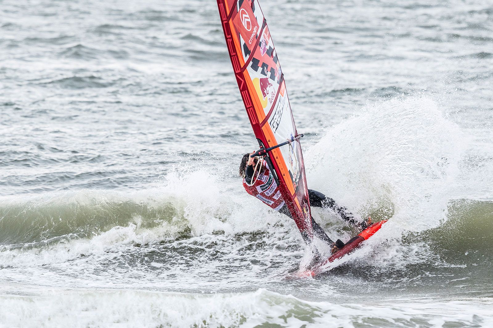 Yentel Caers' Hauptaugenmerk lag natürlich darauf, seine Führung im Rennen um die Freestyle-Weltmeisterschaft zu behaupten, und genau das ist dem Belgier auch gelungen, nachdem er sich unter die ersten zwei gekämpft hatte. Da der Fokus am Samstag auf Wave liegen sollte, steht Yentel Caers jetzt kurz davor, Ricardo Campellos Bilanz von drei Freestyle-Weltmeistertiteln zu erreichen. Der Belgier war heute in Höchstform und durchbrach in drei von vier Heats die 40-Punkte-Marke. Der 30-Jährige zeigte einmal mehr, wie gut er unter Druck Leistung abrufen kann