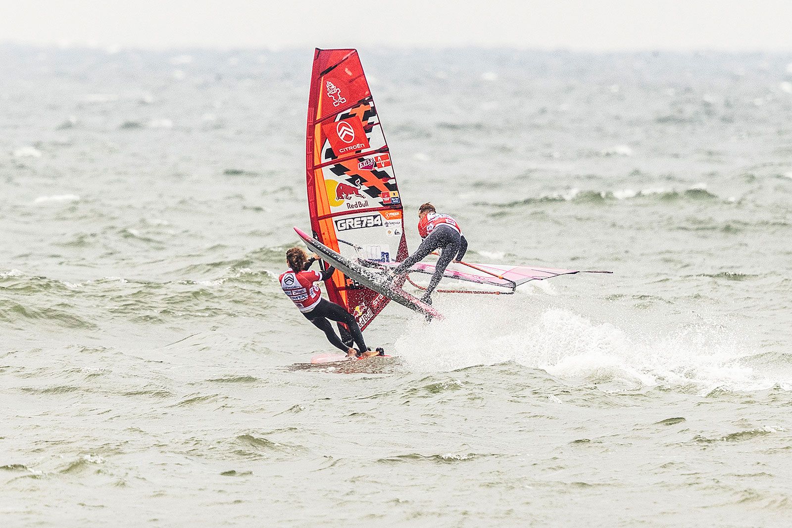 Sein größter Rivale um den Weltmeistertitel - Jacopo Testa (We One / Gunsails) - wurde im Halbfinale von Lennart Neubauer geschlagen. Auch dieser Heat war spannend und die Fans bekamen ein wahres Action-Feuerwerk geboten. Der stylische Italiener war ein weiterer Segler, der heute auf der World Tour einen neuen Move zeigen konnte: Er landete regelmäßig Double Air Shakas und begeisterte damit Publikum und Jury gleichermassen. Doch das reichte diesmal ebenfalls nicht, um Lennart Neubauer zu stoppen.