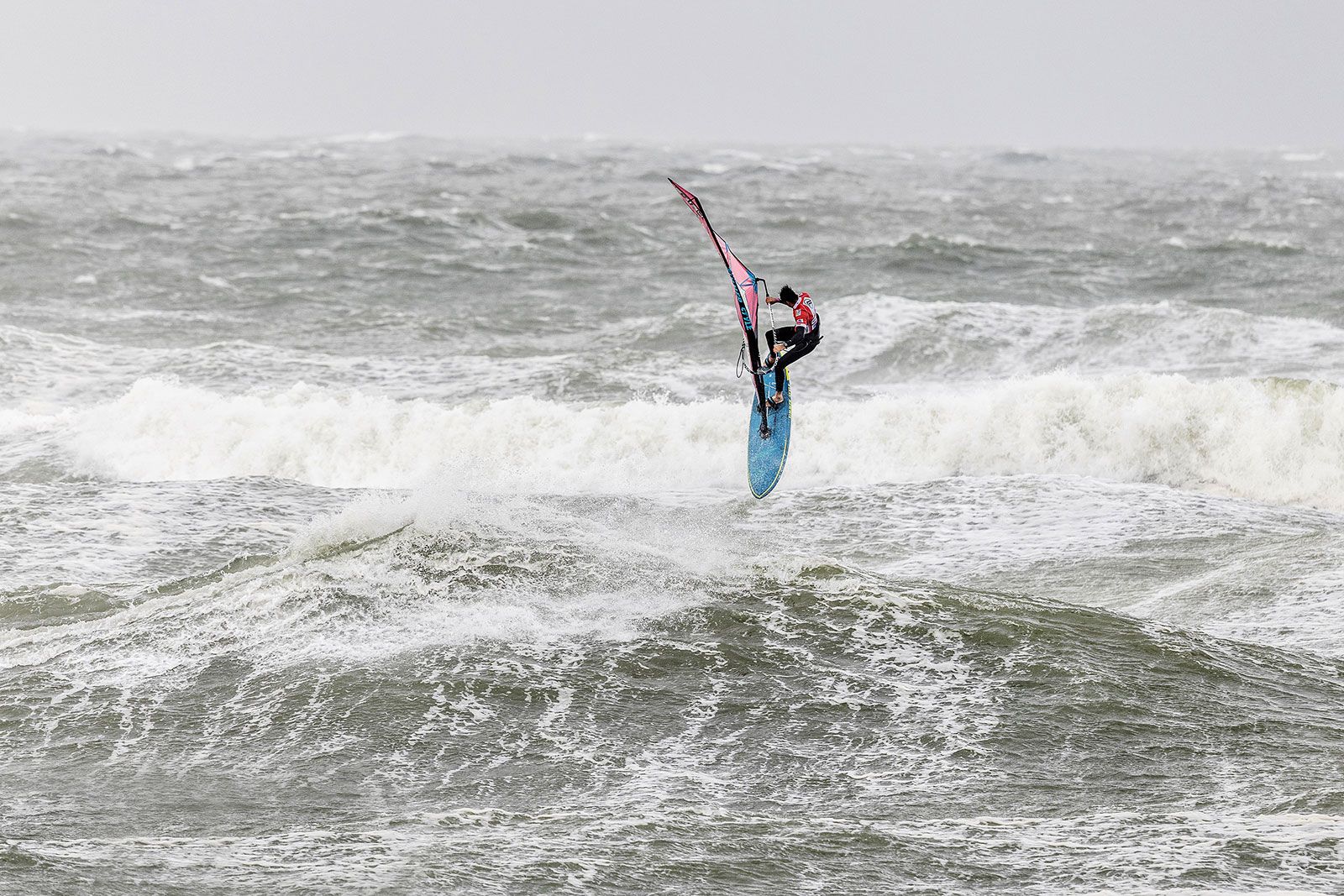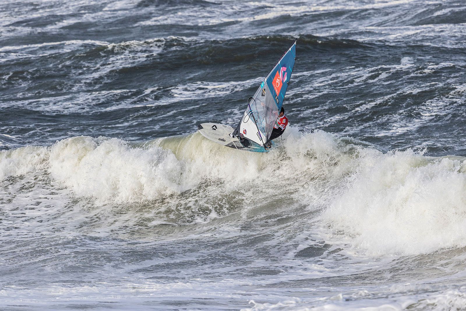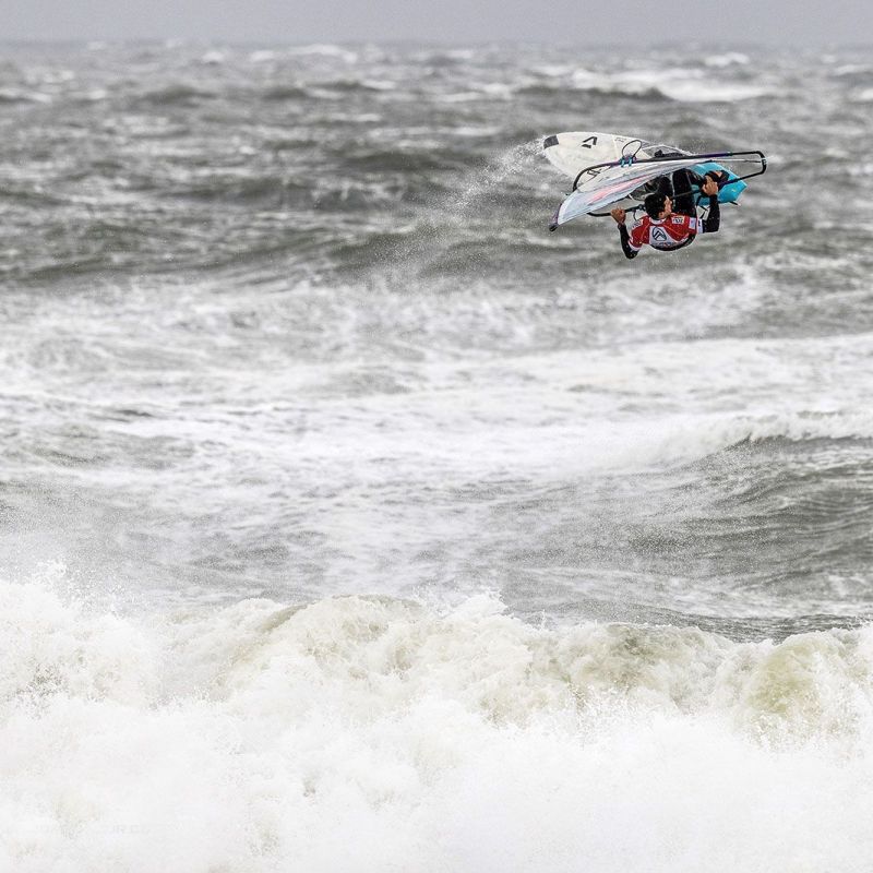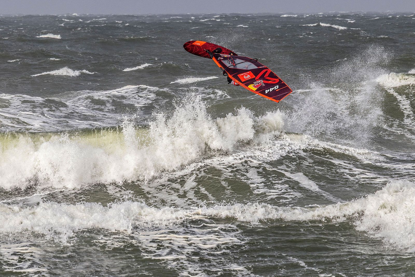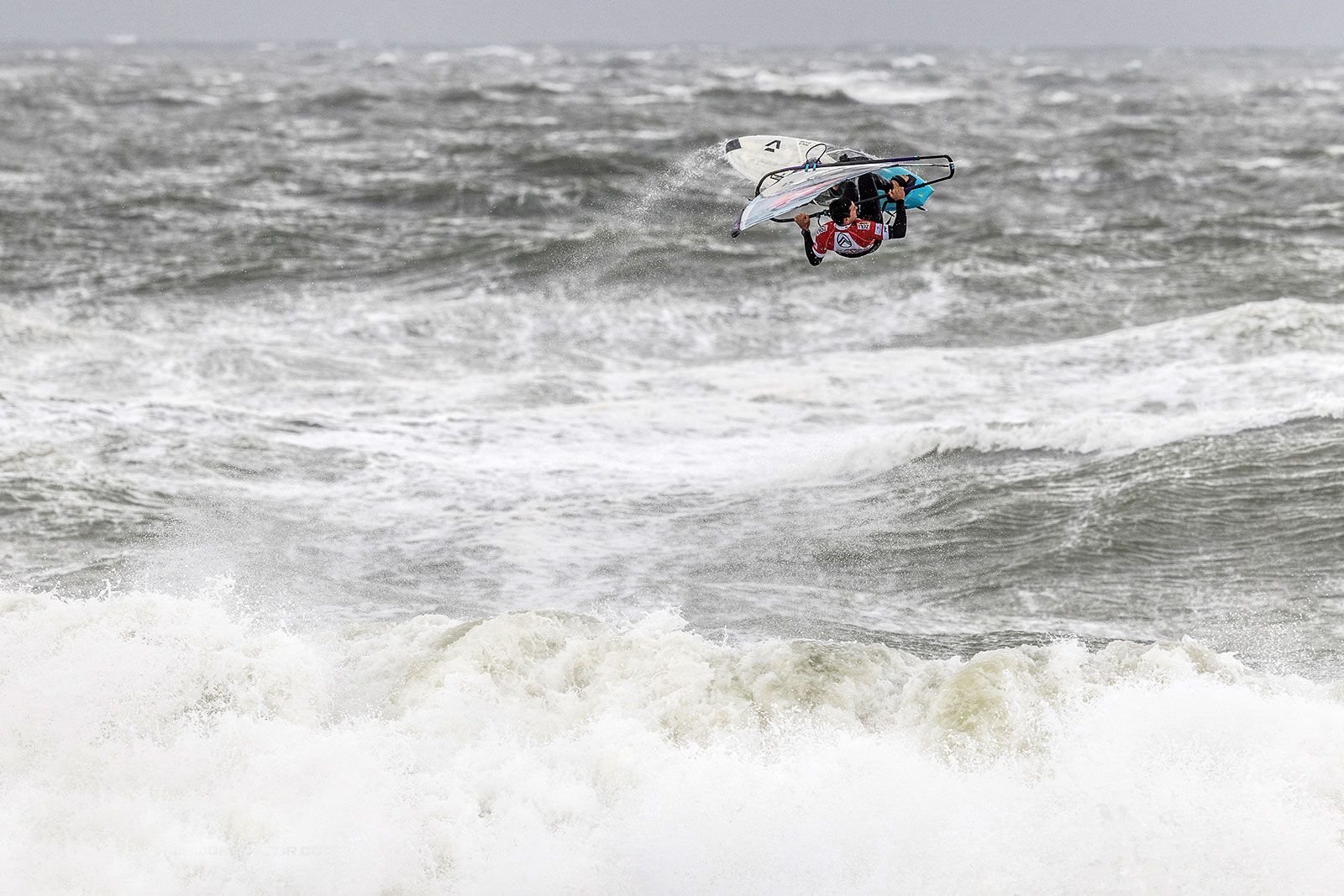 Philip Köster (Severne Windsurfing) setzte sich in der Luft knapp gegen Marc Paré durch. Der fünffache Weltmeister holte 13,6 Punkte gegenüber Marc Parés 13,5 Punkten, nachdem er einen exzellenten Double Forward und einen großen, sauberen One-Footed-Backloop zeigen konnte. Unter den extrem schwierigen Bedingungen beim Wellenreiten erreichte er jedoch nicht die nötige Punktzahl für den Platz ganz oben auf dem Podium. Der zweite Platz hier bringt Köster dennoch wertvolle 8.500 Punkte ein. Er hält damit seine Chancen auf den Weltmeistertitel vor Maui weiter aufrecht.