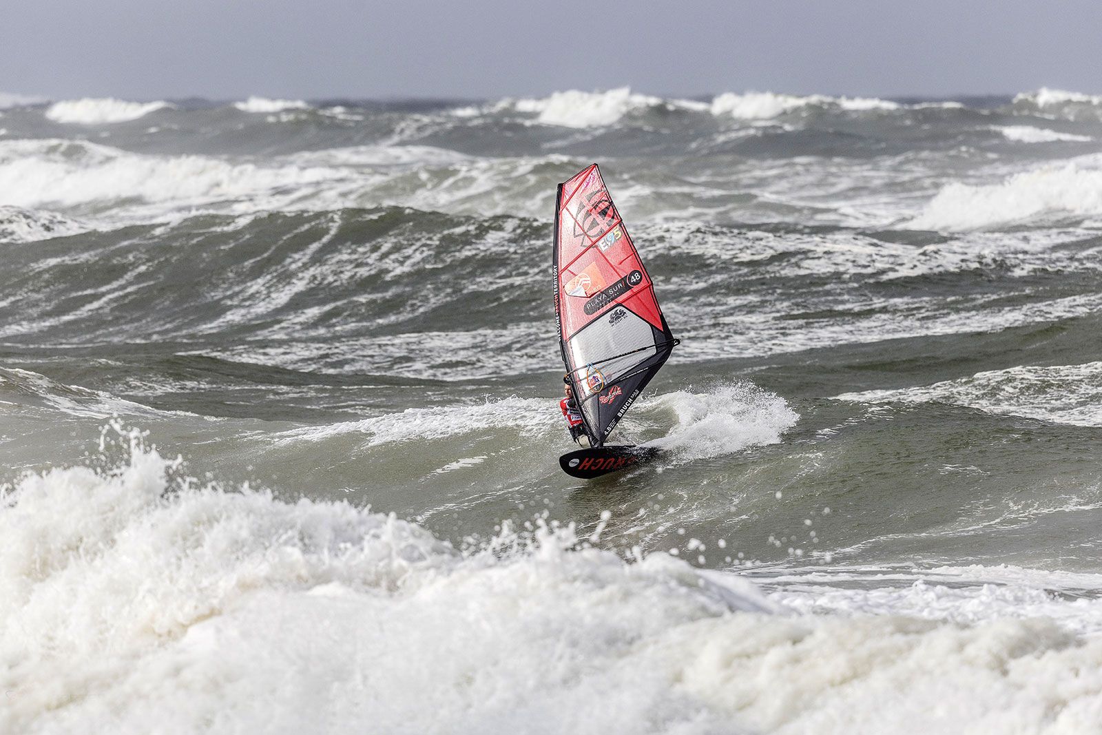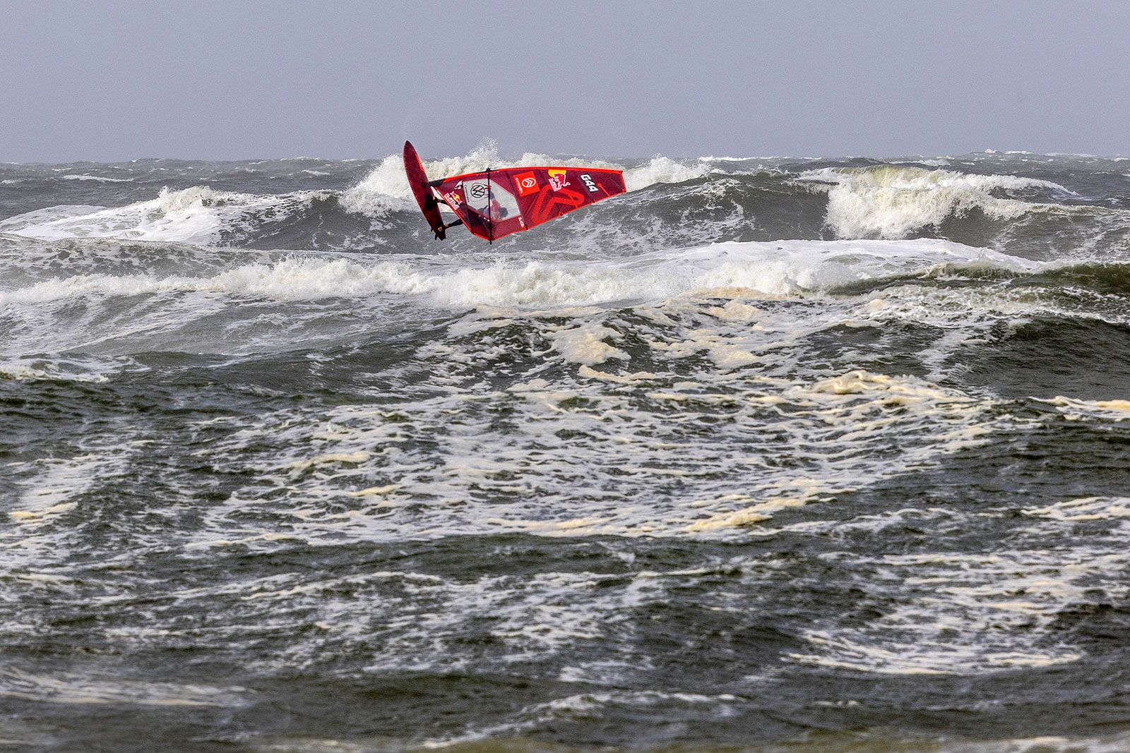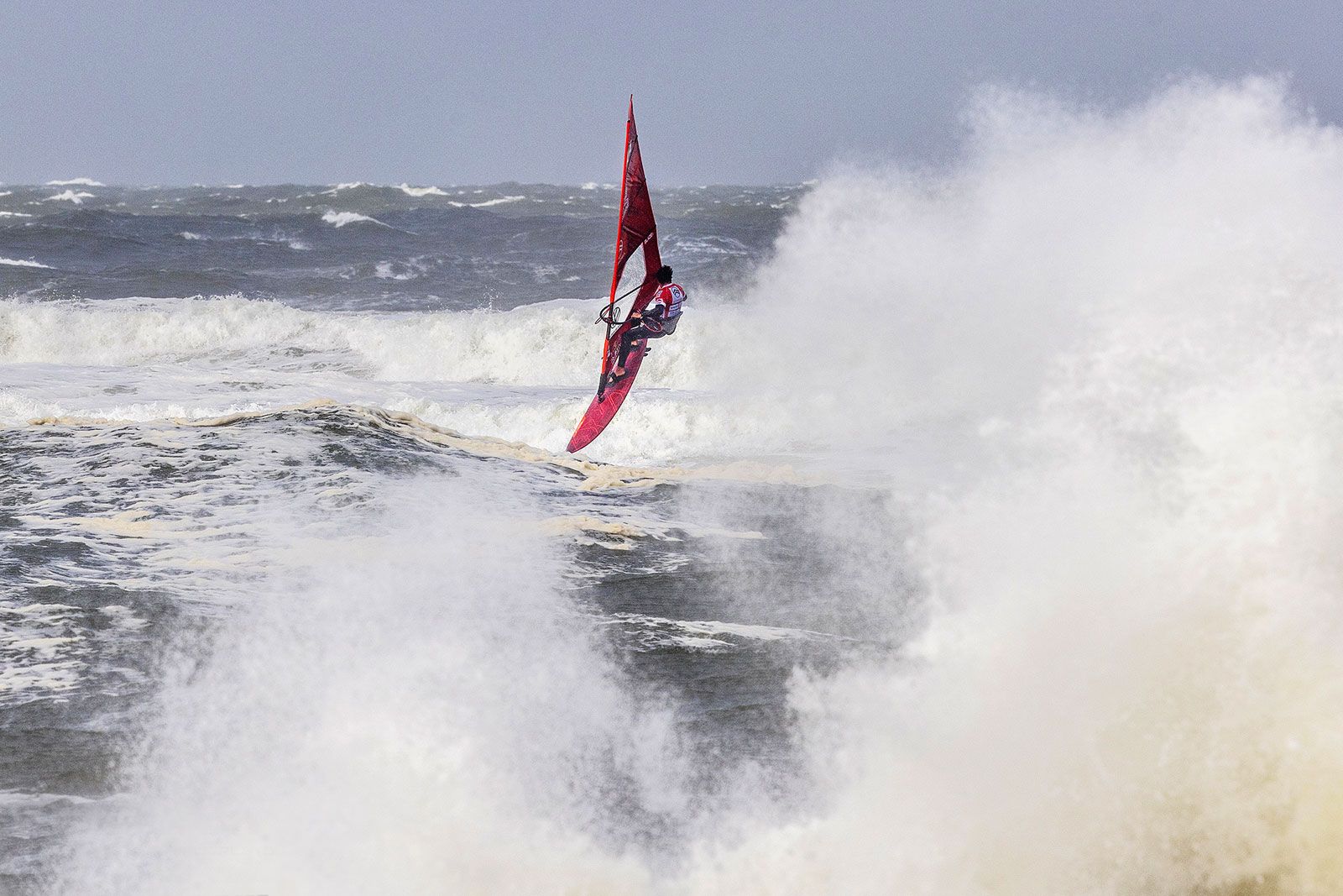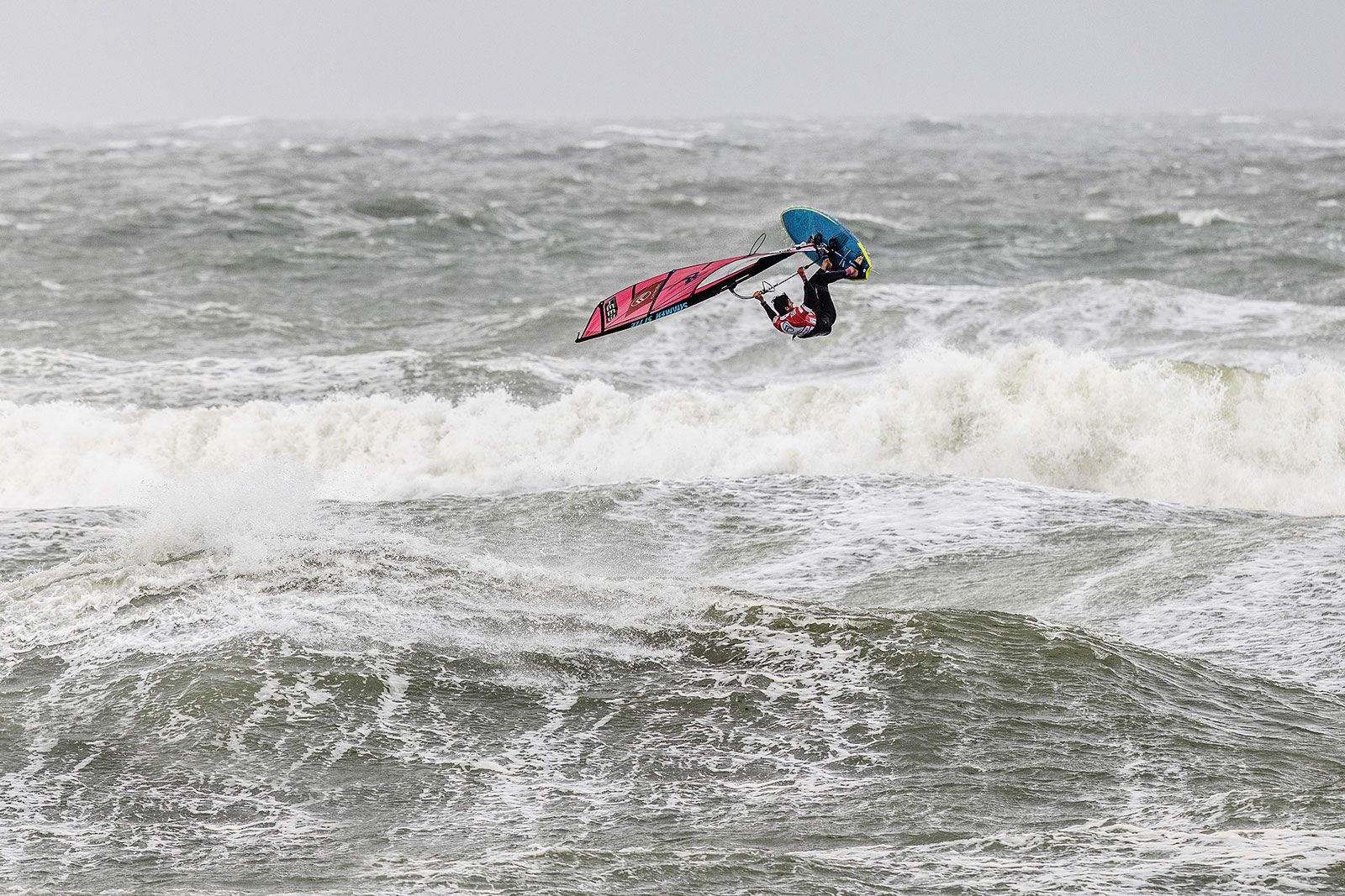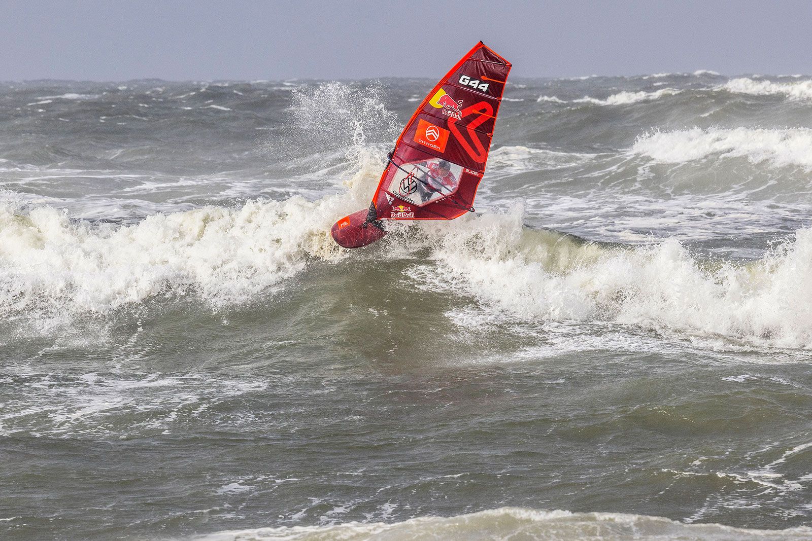 Philip Köster (Severne Windsurfing) setzte sich in der Luft knapp gegen Marc Paré durch. Der fünffache Weltmeister holte 13,6 Punkte gegenüber Marc Parés 13,5 Punkten, nachdem er einen exzellenten Double Forward und einen großen, sauberen One-Footed-Backloop zeigen konnte. Unter den extrem schwierigen Bedingungen beim Wellenreiten erreichte er jedoch nicht die nötige Punktzahl für den Platz ganz oben auf dem Podium. Der zweite Platz hier bringt Köster dennoch wertvolle 8.500 Punkte ein. Er hält damit seine Chancen auf den Weltmeistertitel vor Maui weiter aufrecht.