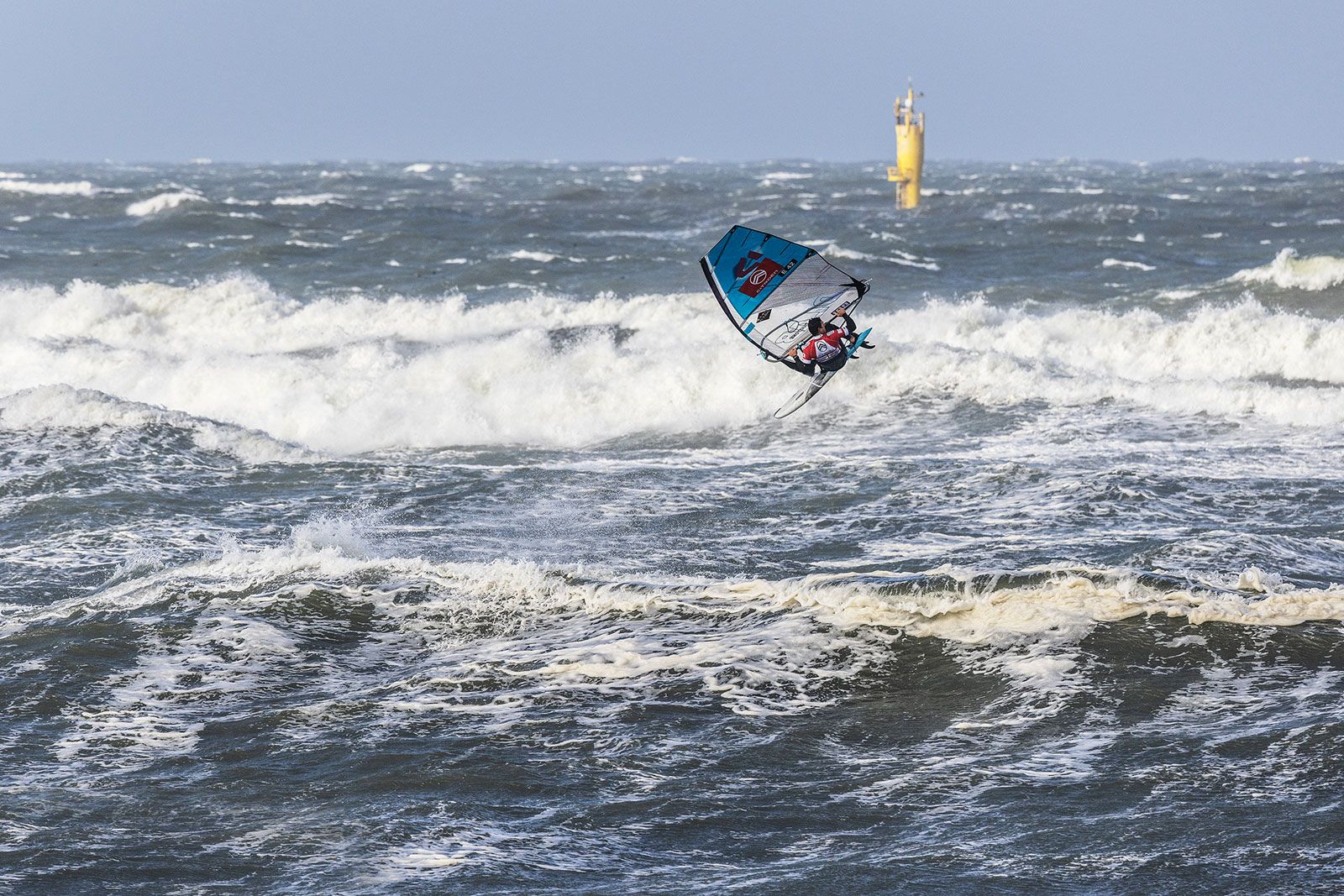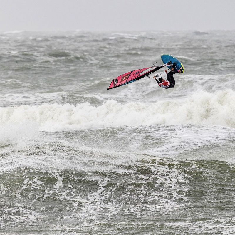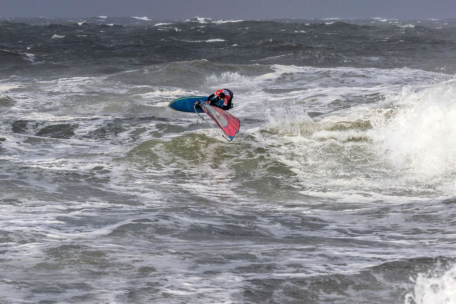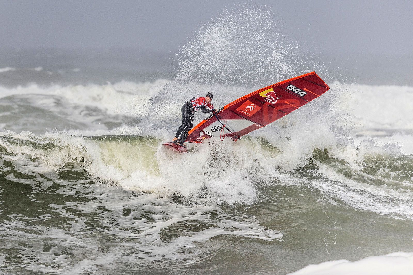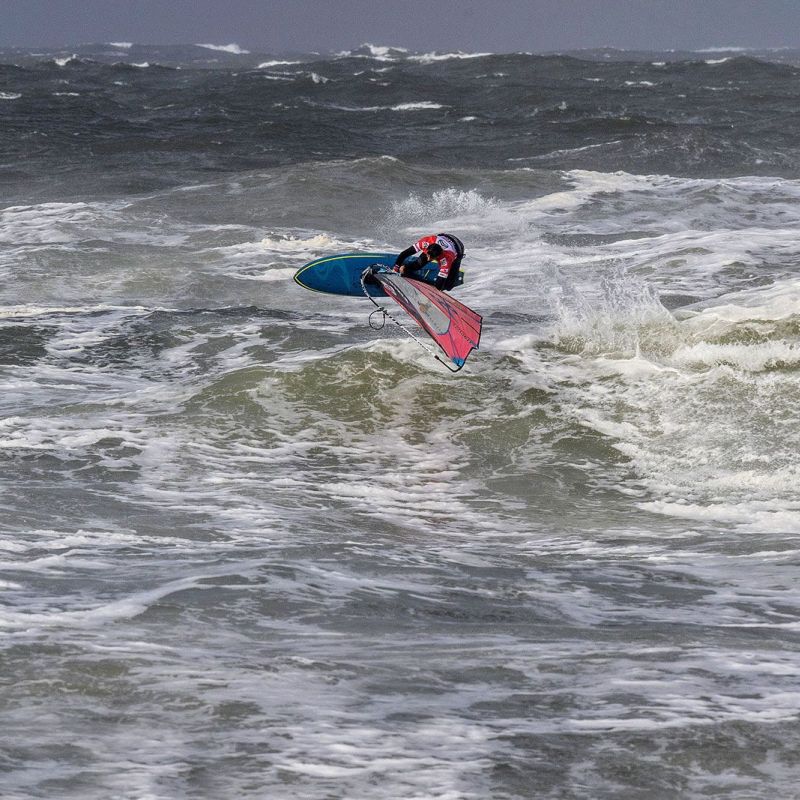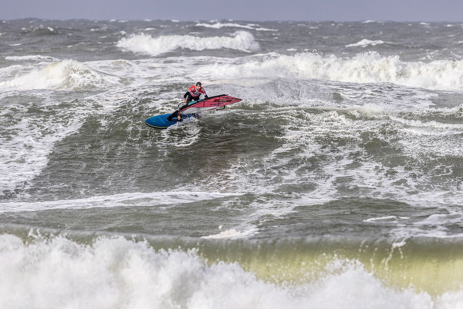 Philip Köster (Severne Windsurfing) setzte sich in der Luft knapp gegen Marc Paré durch. Der fünffache Weltmeister holte 13,6 Punkte gegenüber Marc Parés 13,5 Punkten, nachdem er einen exzellenten Double Forward und einen großen, sauberen One-Footed-Backloop zeigen konnte. Unter den extrem schwierigen Bedingungen beim Wellenreiten erreichte er jedoch nicht die nötige Punktzahl für den Platz ganz oben auf dem Podium. Der zweite Platz hier bringt Köster dennoch wertvolle 8.500 Punkte ein. Er hält damit seine Chancen auf den Weltmeistertitel vor Maui weiter aufrecht.