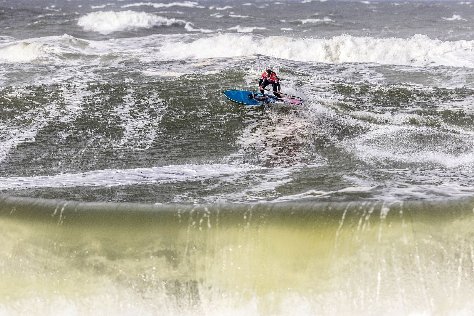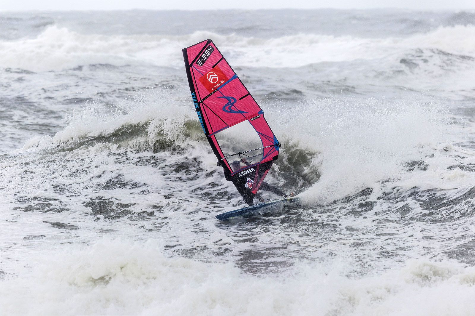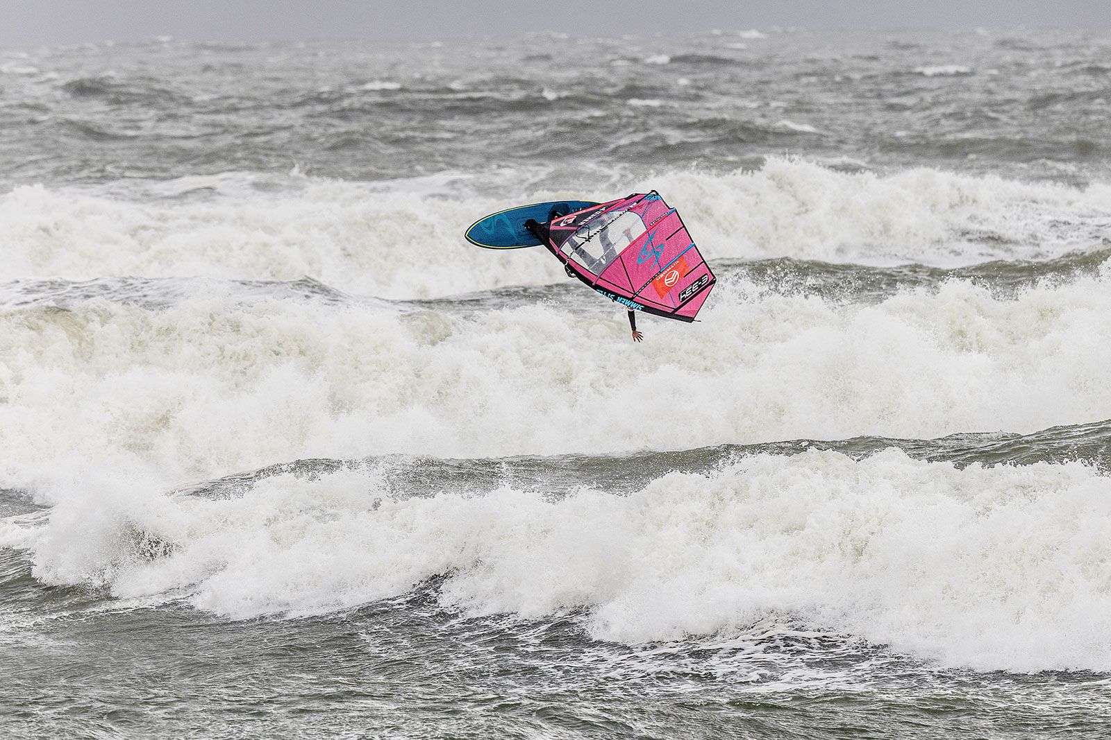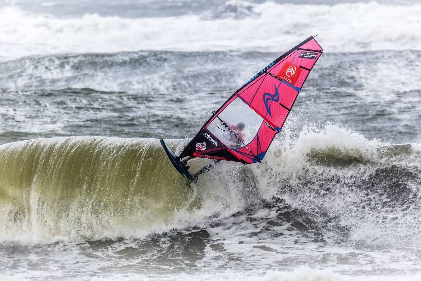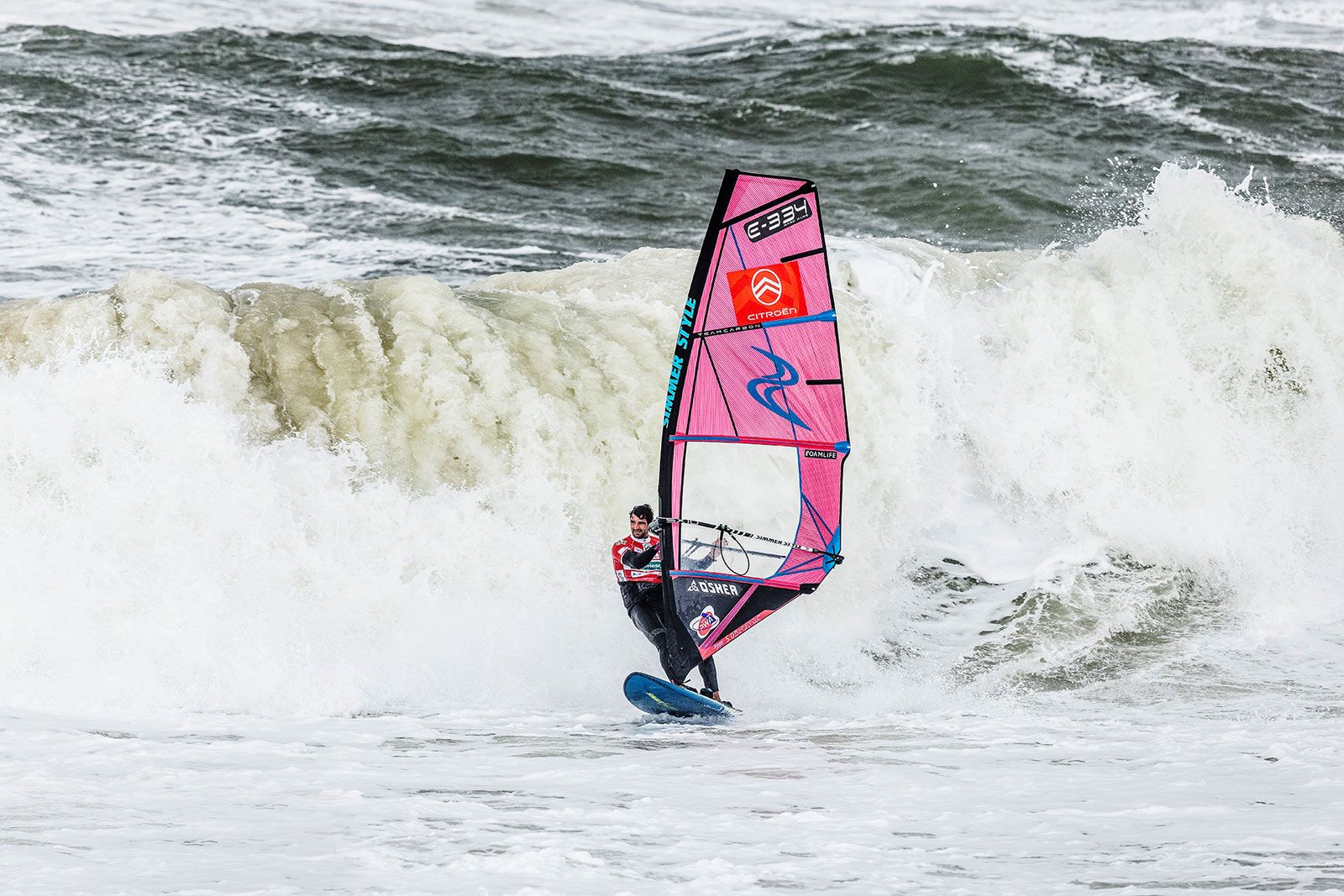 Philip Köster (Severne Windsurfing) setzte sich in der Luft knapp gegen Marc Paré durch. Der fünffache Weltmeister holte 13,6 Punkte gegenüber Marc Parés 13,5 Punkten, nachdem er einen exzellenten Double Forward und einen großen, sauberen One-Footed-Backloop zeigen konnte. Unter den extrem schwierigen Bedingungen beim Wellenreiten erreichte er jedoch nicht die nötige Punktzahl für den Platz ganz oben auf dem Podium. Der zweite Platz hier bringt Köster dennoch wertvolle 8.500 Punkte ein. Er hält damit seine Chancen auf den Weltmeistertitel vor Maui weiter aufrecht.