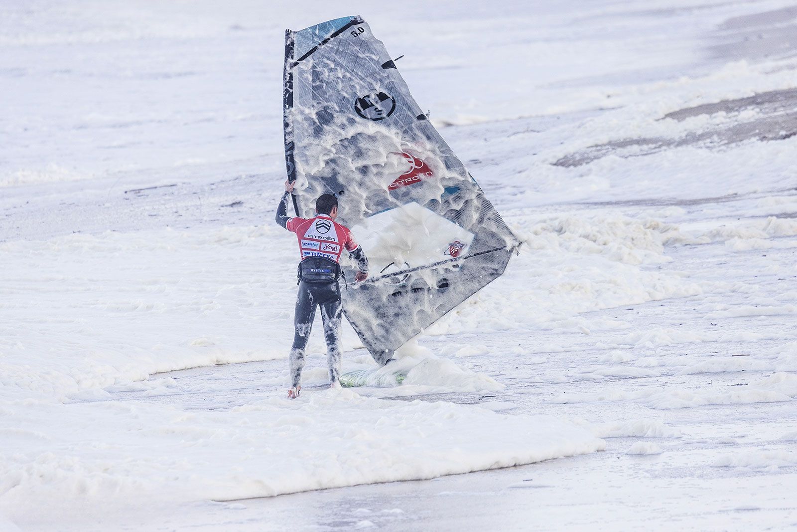 Víctor Fernández (Duotone Windsurfing) versteht es meisterhaft, selbst schwierigste Bedingungen einfach aussehen zu lassen. Genau das tat er auch im ersten Halbfinale und sicherte sich mit einem komfortablen Sieg als erster Fahrer seinen Platz im Finale. Er nutzte sein ganzes Wettkampfgeschick, um weiterzukommen. Im Halbfinale landete Fernandez einen perfekten Double, doch im Finale konnte er nicht ganz daran anschließen, sodass er hier mit dem vierten Platz vorlieb nehmen muss. Es ist schwer zu beschreiben, wie schwierig die Bedingungen heute waren, aber wenn Víctor Fernández, der seit 25 Jahren hier antritt, sagt, er sei noch nie unter solchen Bedingungen rausgegangen, spricht es sicherlich Bände.