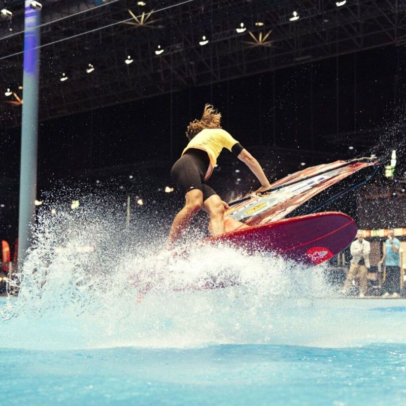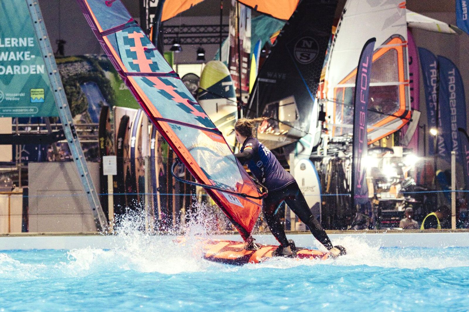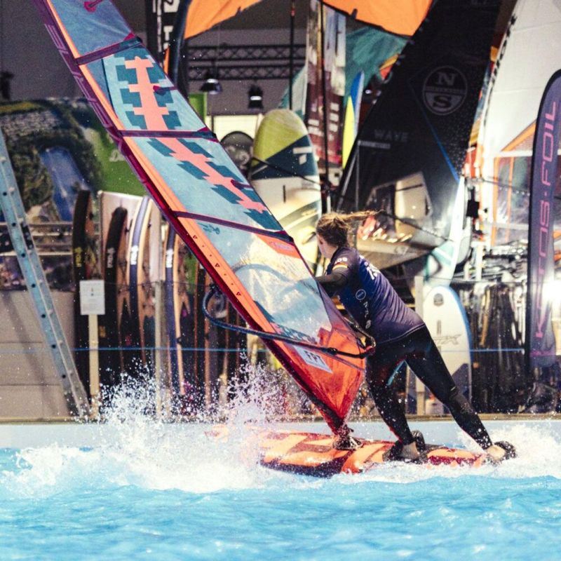 Den ganzen Tag über genossen die Fahrer die Boot Düsseldorf, hielten sich auf dem Messegelände auf, erkundeten die Convention, wagten sich in den Pool zum Pumpfoilen und knüpften Kontakte in der Umgebung von Halle 17. Die Ruhe vor dem Sturm.