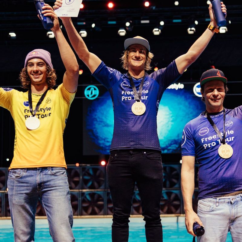 Ein knappes Finale der Herren hatte der FPT-Gesamtsieger 2025 Lennart Neubauer schon vorab angekündigt. „Yentel (Caers, Anm. d. Red) und ich werden uns gegenseitig pushen, immer mehr zu geben. Wahrscheinlich werden wir jede Runde den Schwierigkeitsgrad und die Punkte steigern.“ Damit sollte Lennart Neubauer recht behalten, denn das Finale der Herren war eine äußerst knappe Angelegenheit. Erst nach der fünften Runde konnte sich Yentel Caers mit einem Burner Air Funnel durchsetzen. Die höchste Punktzahl erreichte der Belgier mit einem Double Culo, der von den Judges mit 9,83 Punkten belohnt wurde. „Wir haben hier eine gute Show abgeliefert! Das hat wirklich Spaß gemacht und ist etwas Besonderes, hier mitten in Deutschland im Winter in einer Halle so einen Contest austragen zu können“, freute sich Yentel Caers über den Gewinn der Trophäe in diesem Jahr.