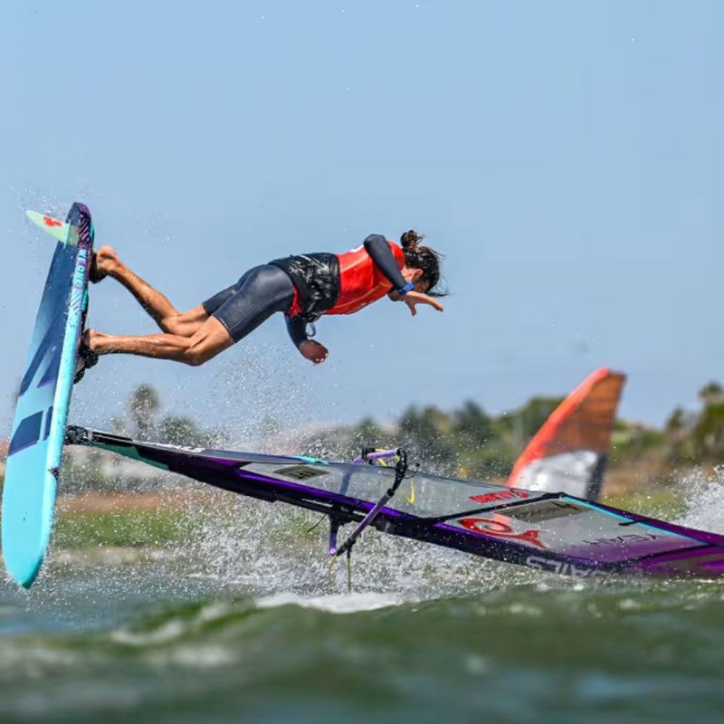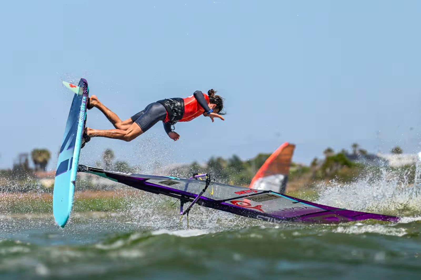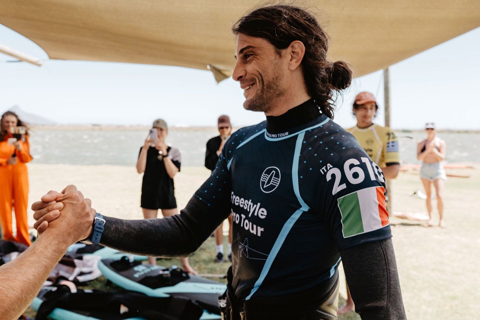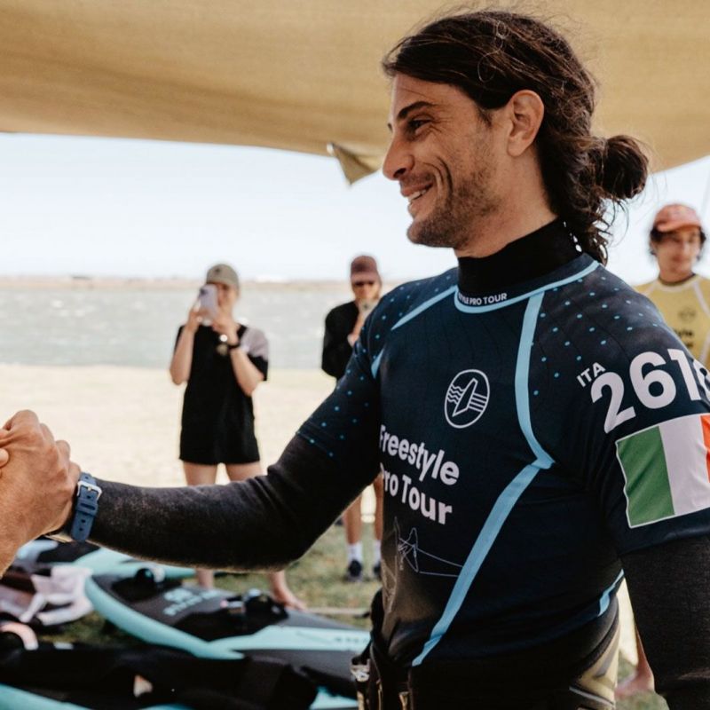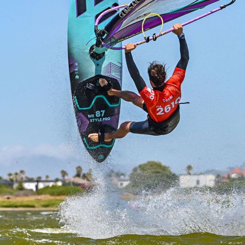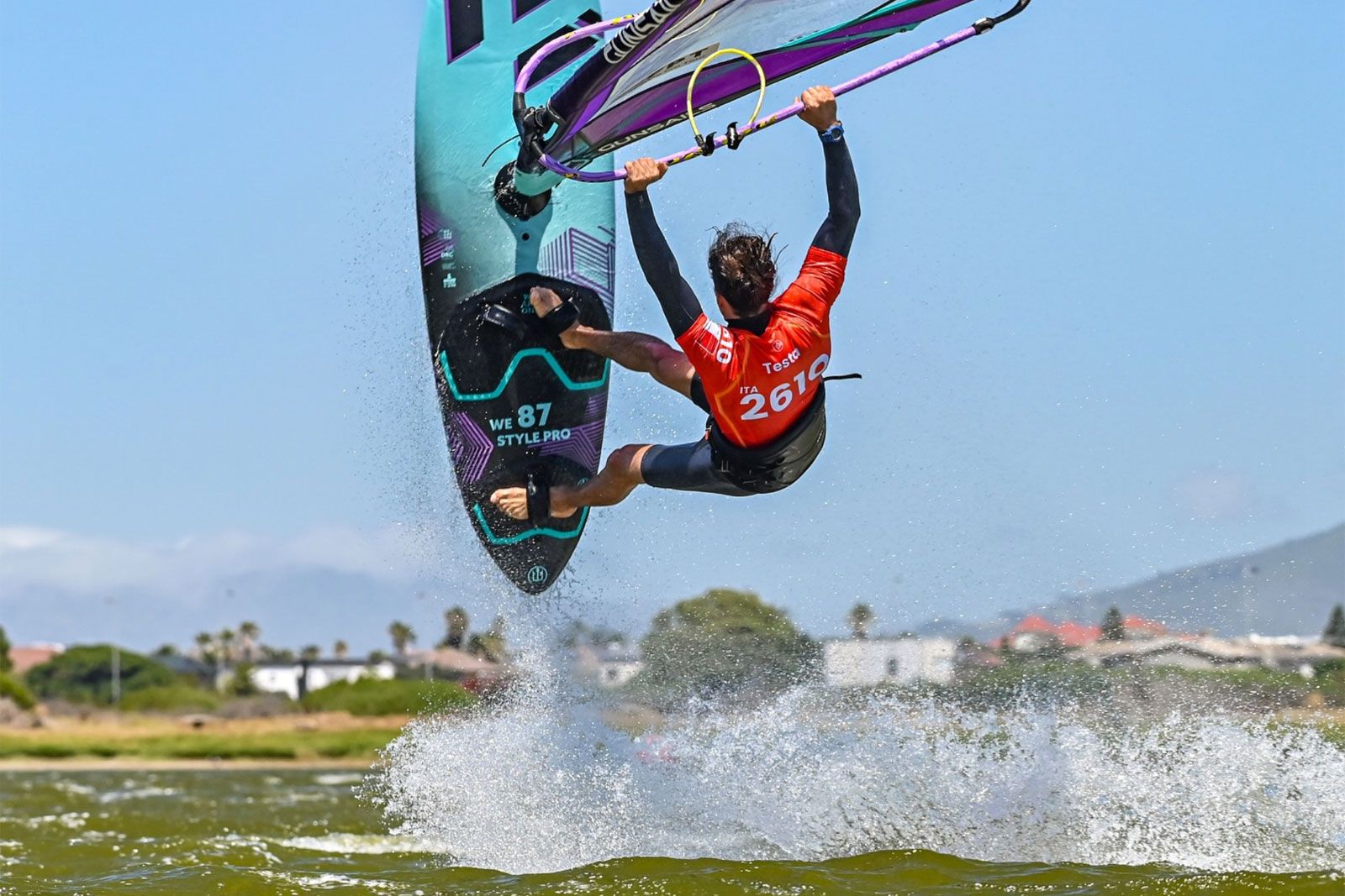 Auch die junge italienische Truppe machte am ersten Tag neben Routinier Jacopo Testa einen starken Eindruck und stellte ihr Können unter Beweis. Fast alle Teilnehmer erreichten den 5. Platz. Unter ihnen stach Cosmo Pezzetti mit einem makellos ausgeführten No Handed Burner heraus, der Vergleiche mit der ehemaligen italienischen Windsurflegende Francesco Cappuzzo aufkommen ließ.