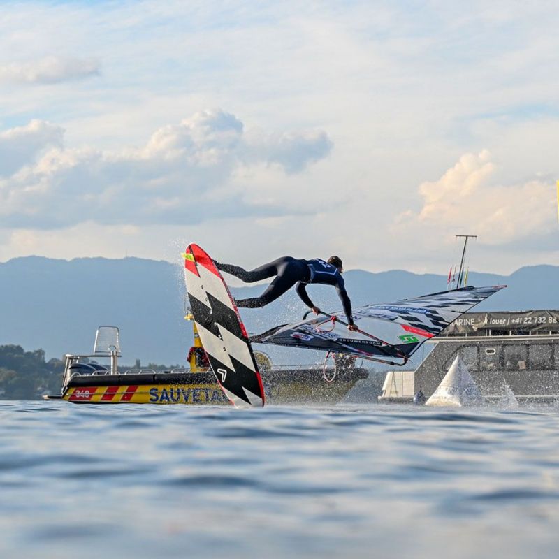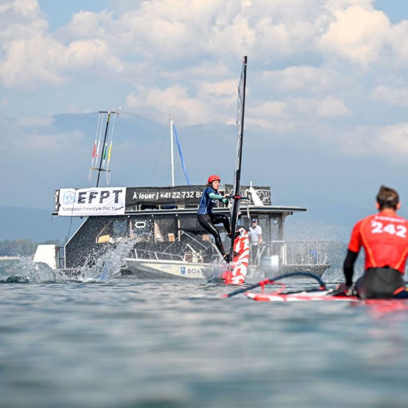 von Sven BlockDie Vorhersage ließ auch am dritten Tage keine Option für Foilstyle zu, der Genfer See präsentierte sich glasklar mit spiegelglattem Wasser. Yentel Caers unterrichtete eine weitere Gruppe von Tow-in-Aspiranten und trainierte mit ihnen Combo-Moves. Am frühen Abend war es dann Zeit für die erste Qualifikationsrunde. Die besten vier Herren und die beiden Damen mit der höchsten Gesamtpunktzahl ziehen Sonntag ins große Finale ein. Das Format wurde gegenüber den Vorjahren leicht angepasst. Jeder Fahrer hatte drei Läufe, von denen die zwei besten zählten. Einer der Versuche musste auf flachem Wasser durchgeführt werden, die beiden anderen nutzten die Welle vom Wakeboot. Als erstes waren Maaike Huvermann und Leander Halm an der Reihe.