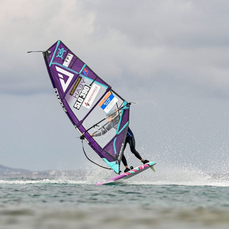 Als es Abend wurde, briste es wieder auf, und das Foilstyle-Finale konnte starten. Die vier Fahrer - Lennart Neubauer, Dudu Levi, Yentel Caers und Tigo Kort - gingen aufs Wasser. Alle außer Dudu Levi, der auf 4,8 qm unterwegs war, griffen auf 5,2 qm zurück und kämpften hart, um unter den grenzwertigen Bedingungen auf das Foil zu kommen. Bei nur drei gewerteten Moves und einem auf 18 Minuten verlängerten Heat waren Konstanz und Selbstvertrauen gefragt, als das Signal ertönte und den letzten Heat des Tages eingeläutet wurde.