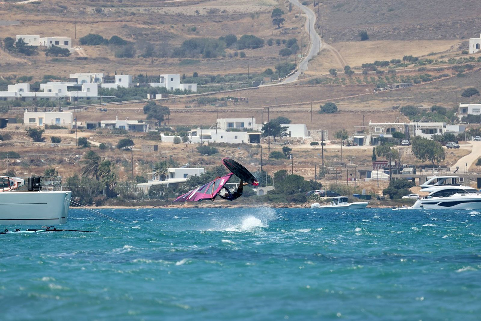 Starker Wind vom morgens bis zum späten Nachmittag, begleitet von pausenloser Freestyle-Action. Besser hätte der Freestyle Pro Tour Event auf Paros nicht starten können. Am Ende kam es zum Aufeinandertreffen von Yentel Caers und Lennart Neubauer, die wie erwartet ein Feuerwerk auf dem Wasser ablieferten.