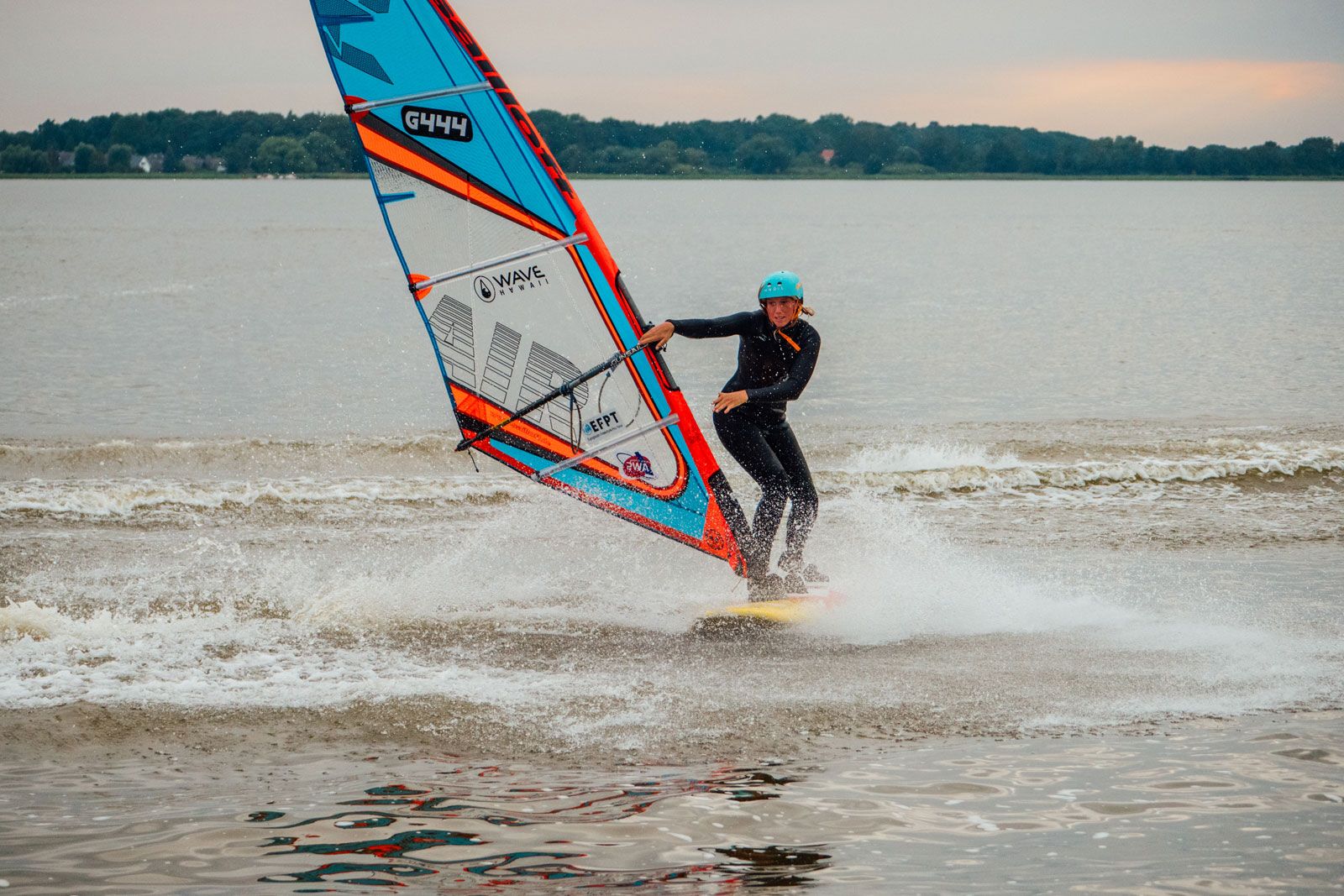Was natürlich nicht zu kurz kam, war der Wettkampf, denn es war bereits das zweite Tow-In Event für die German Freestyle Battles und somit war die Erwartungshaltung groß. Die Fahrerinnen und Fahrer hatten insgesamt drei Versuche, ihr bestes Manöver dem Publikum der Wasserwelt zu präsentieren. Es gab klare Favoriten und diejenigen, die erneut überraschten. Bei den Damen war es ganz klar Lisa Kloster, die es schaffte, ihren mittlerweile Signature Tow-In Move zu zeigen und die Judges zu überzeugen - sie sprang einen Spock par excellence. Vom gesamten Fahrerfeld war auch Sie die einzige, die es sich traute, das Manöver zu riskieren und zu zeigen. Elena Dominick und Shania Raphael füllten ebenfalls ihr Scoresheet mit amtlichen Manövern und zeigten, dass auch sie nur noch wenige Tow-In Sessions davon entfernt sind den Männern Paroli zu bieten, um sich vielleicht auch sehr bald eine Podiumsplatzierung zu sichern. Zum ersten Mal wurde darauf verzichtet, den Damen- und Herrenwettkampf voneinander zu trennen, denn mittlerweile wird sich in der Speerspitze des Deutschen Freestyle Windsurfens und insbesondere beim Tow-In gegenseitig nicht mehr viel geschenkt. Denn wie wir alle Wissen, geht es bei den Battles darum, den besten Fahrer bzw. die beste Fahrerin zu finden.