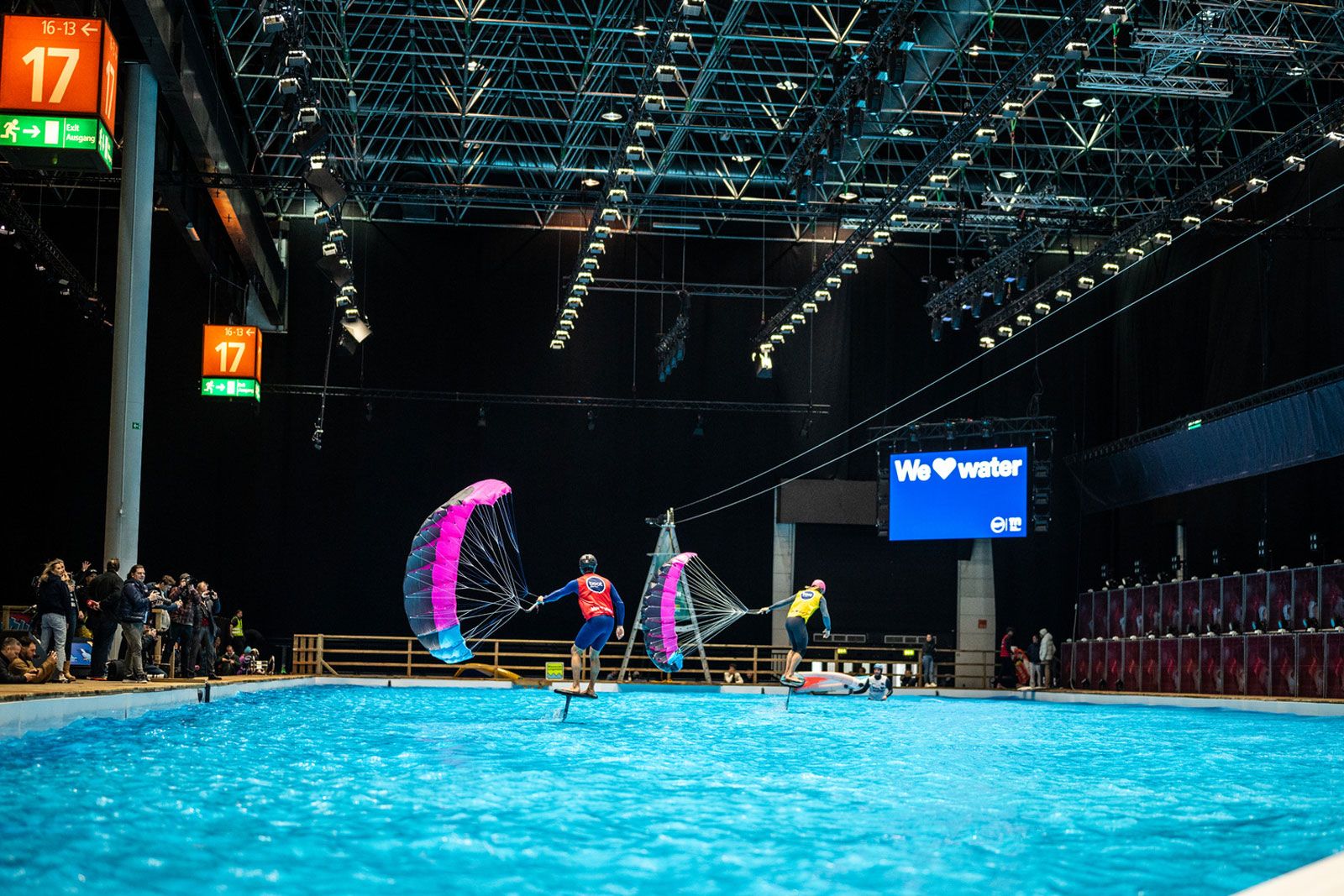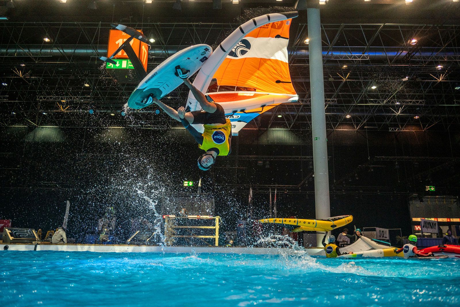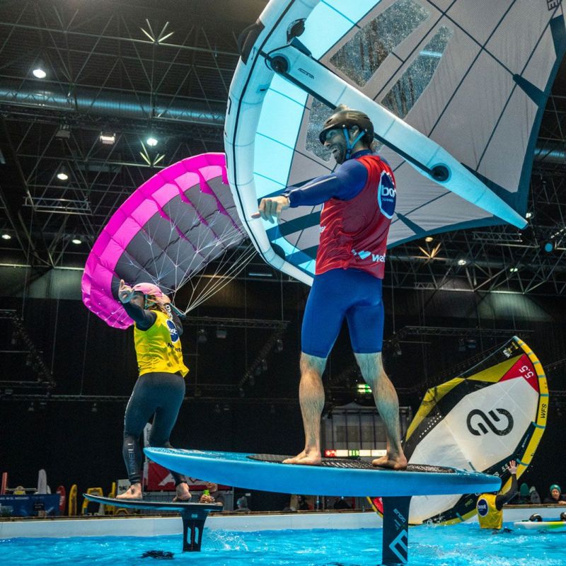 von Sven BlockDer neue Indoor Wingfoil World Cup wurde an drei Tagen im 60×20 Meter großen Becken der boot Düsseldorf ausgetragen. Premiere für eine Indoor-Veranstaltung bei der GWA und Premiere der GWA mit einem Worldcup bei der boot. Während der erste Tag ausschließlich dem Training gewidmet war, damit die Athletinnen und Athleten die Möglichkeit hatten sich auf dem fremden Terrain einzufahren, ging es am Wochenende zur Sache.