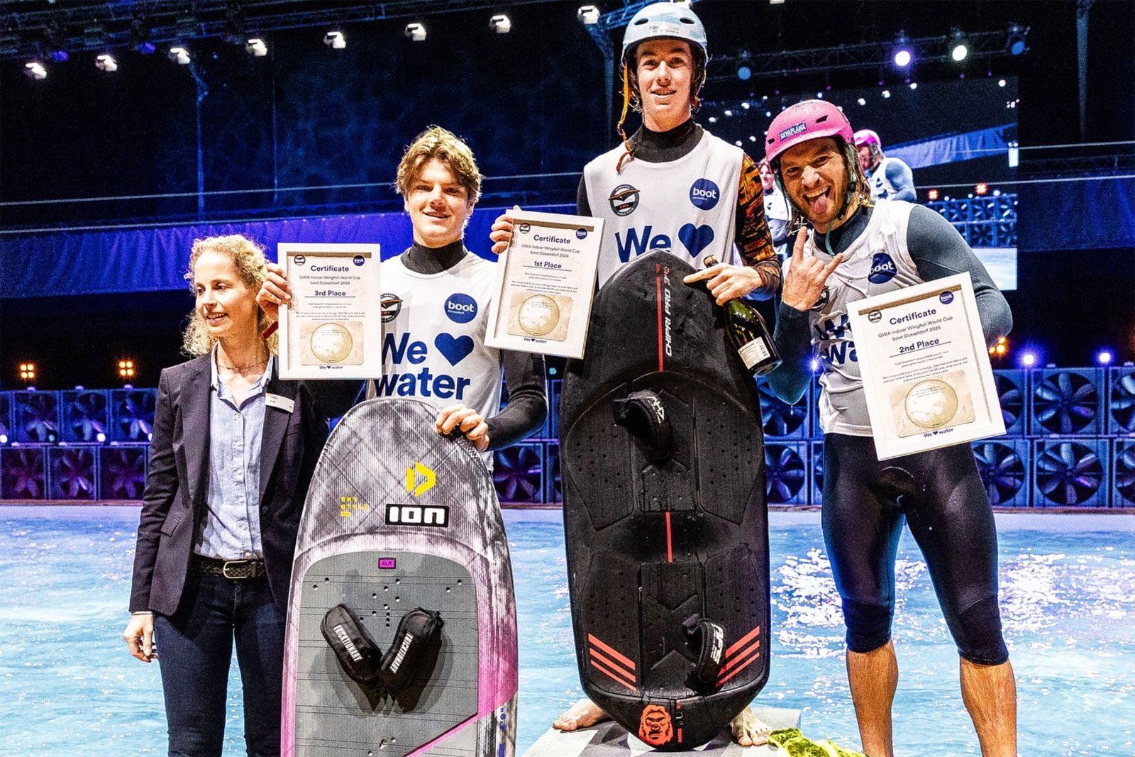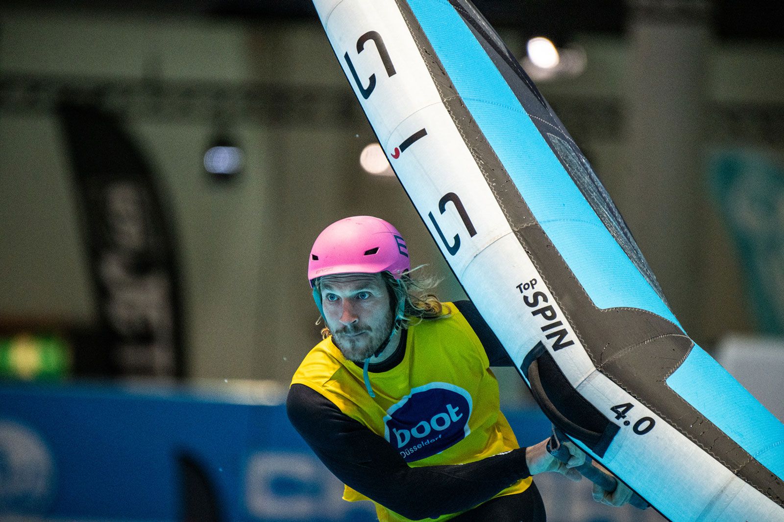 Action gleich am ersten Messewochenende: Axel Gerard gewinnt den GWA Indoor-Weltcup auf der boot Düsseldorf vor Balz Müller und Benjamin May. Bei den Damen konnte sich Nia Suardíaz gegen Viola Lippitsch und Orane Ceris durchsetzen.