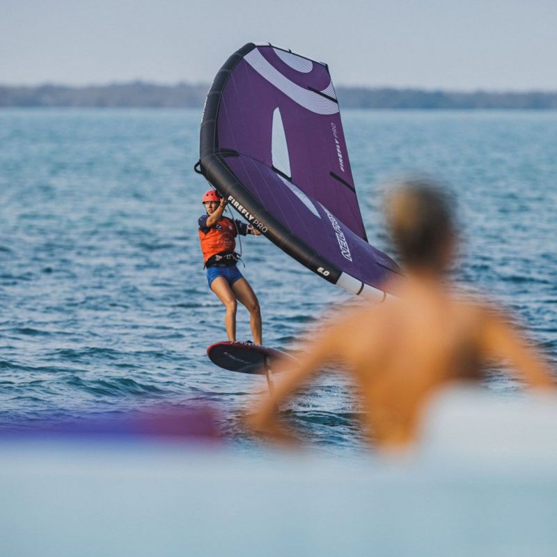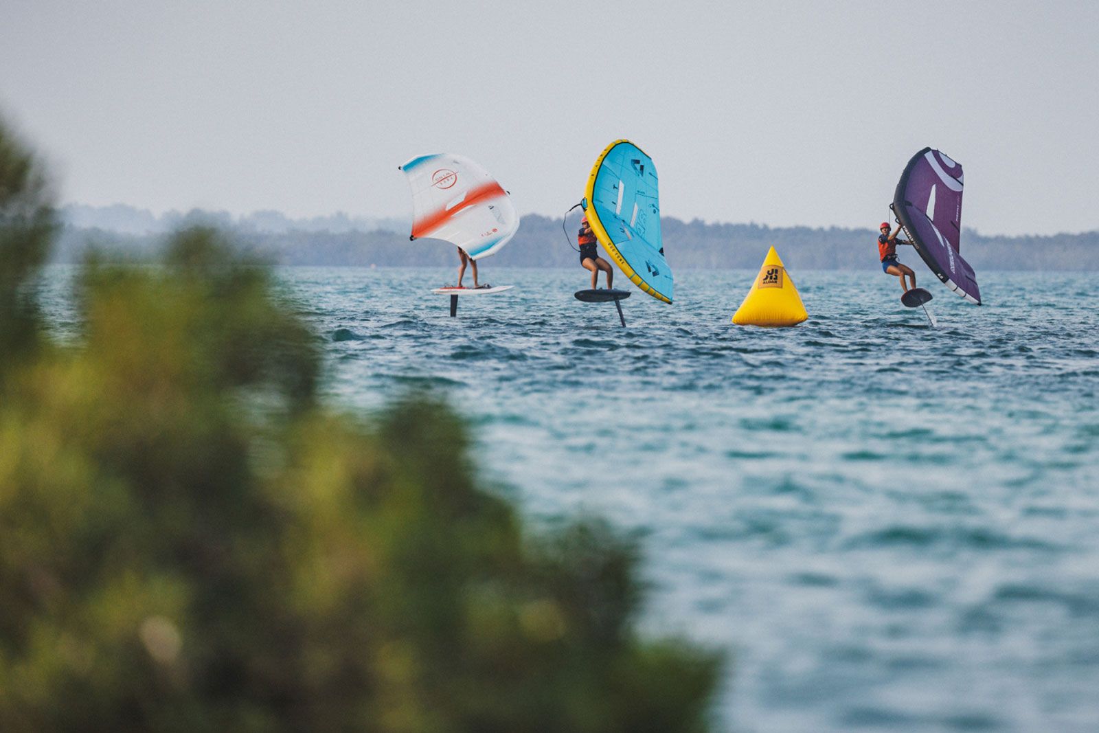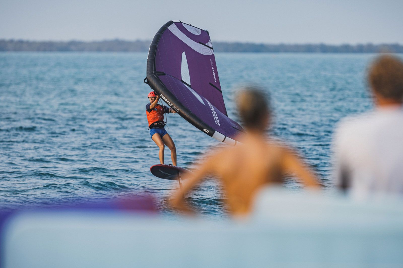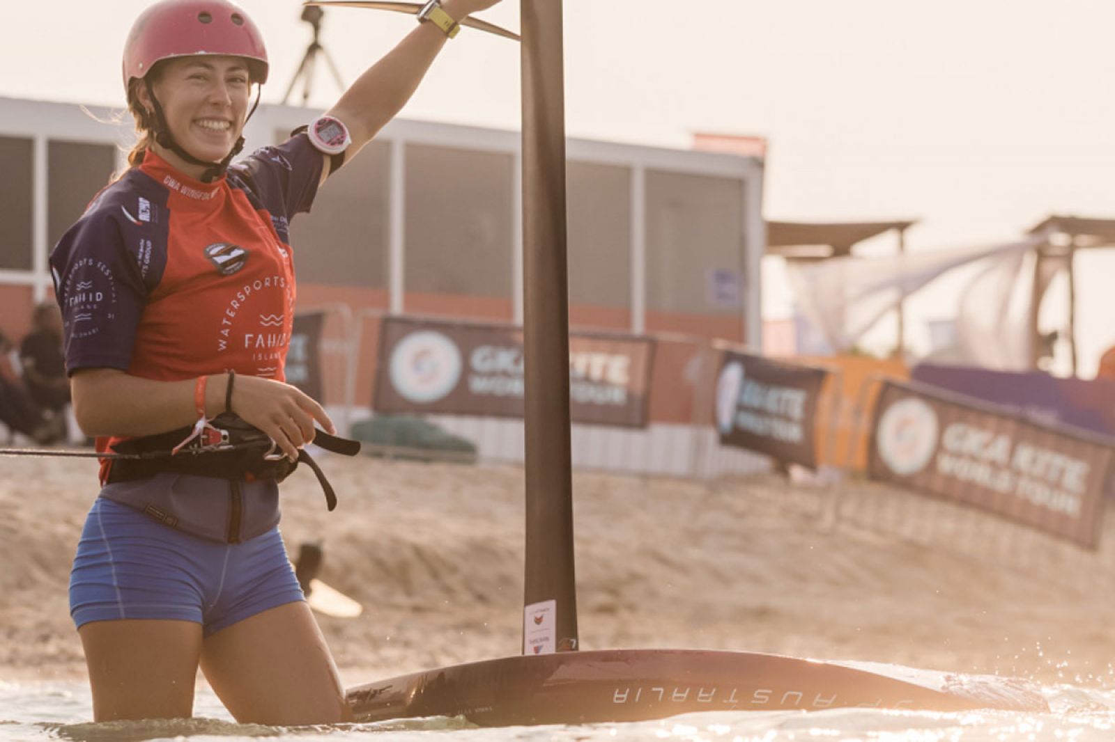 In ihrem ersten Rennen startete die amtierende Weltmeisterin gut, doch an einer der ersten Bojen kam sie ins straucheln, verlor die Kontrolle über ihr Foil, wodurch ihre Konkurrentinnen vorbeiziehen konnten. Kylie Belloeuvre behielt die Nerven und holte sich den Auftaktsieg. Die Spanierin Mar de Arce wurde Zweite, die Österreicherin Viola Lippitsch Dritte.