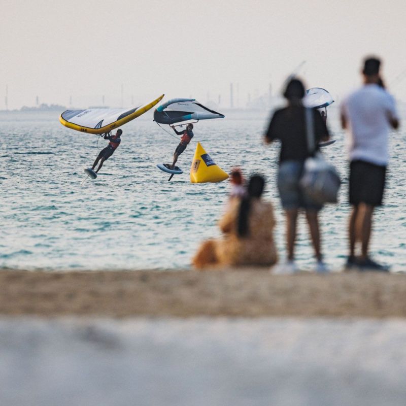 von Sven BlockNia Suardíaz und Francesco Cappuzzo gehen als Führende der FreeFly-Slalom-Weltrangliste in den letzten Worldcup, nachdem sie die ersten beiden Wettbewerbe in Leucate und auf Fuerteventura gewinnen konnten, aber beim Saisonfinale in Abu Dhabi ging es für die Titelanwärter nicht wie gewünscht los. Nachdem er es in das Finale der ersten und einzigen Ausscheidungsrunde des Tages geschafft hatte, schied Francesco Cappuzzo unter schwierigen Bedingungen auf der Strecke nur wenige Meter vor dem Barbossa Beach der Insel Fahid aus. Auch Nia Suardíaz erlebte in den beiden ersten Rennen einen durchwachsenen Tag. Sie schied im zunächst aus, ein weiterer Fehler im zweiten Rennen ließ sie auf den dritten Platz zurückfallen. Damit liegt sie in der Weltrangliste zunächst zurück, während ihre Hauptkonkurrentin Kylie Belloeuvre mit zwei Siegen die Führung übernimmt.