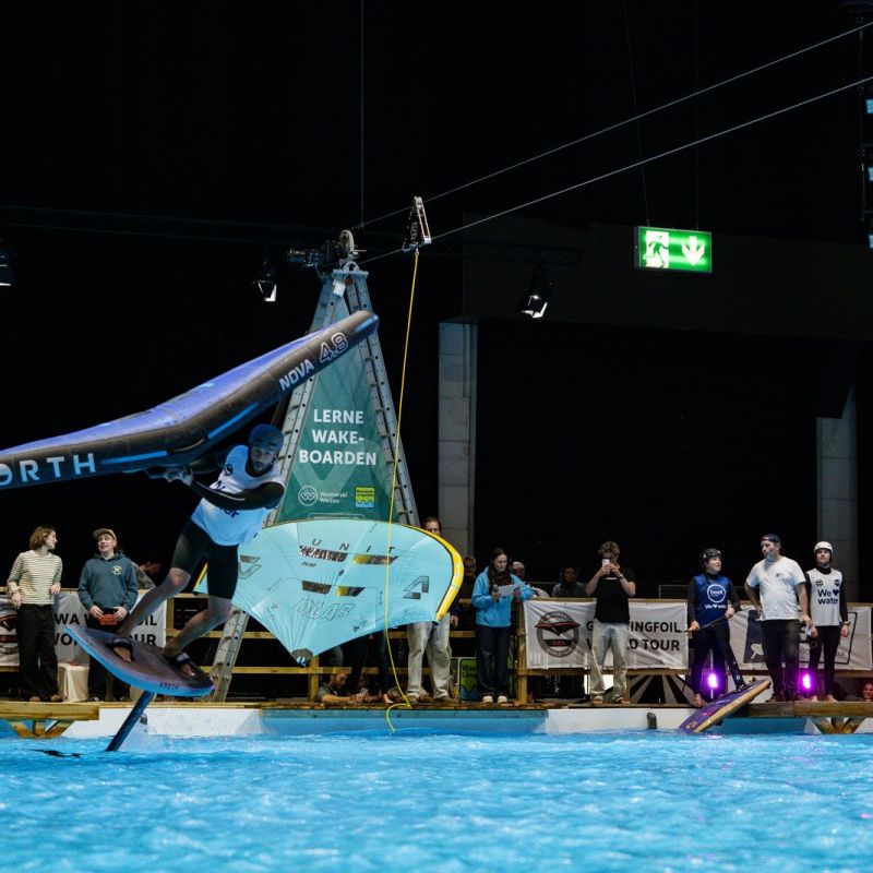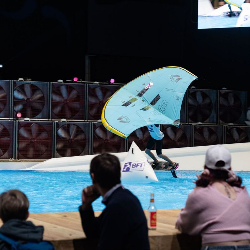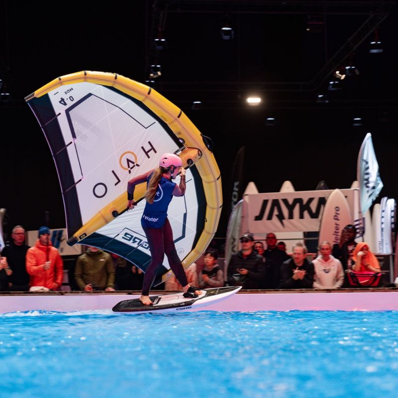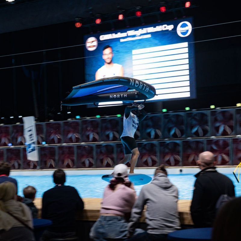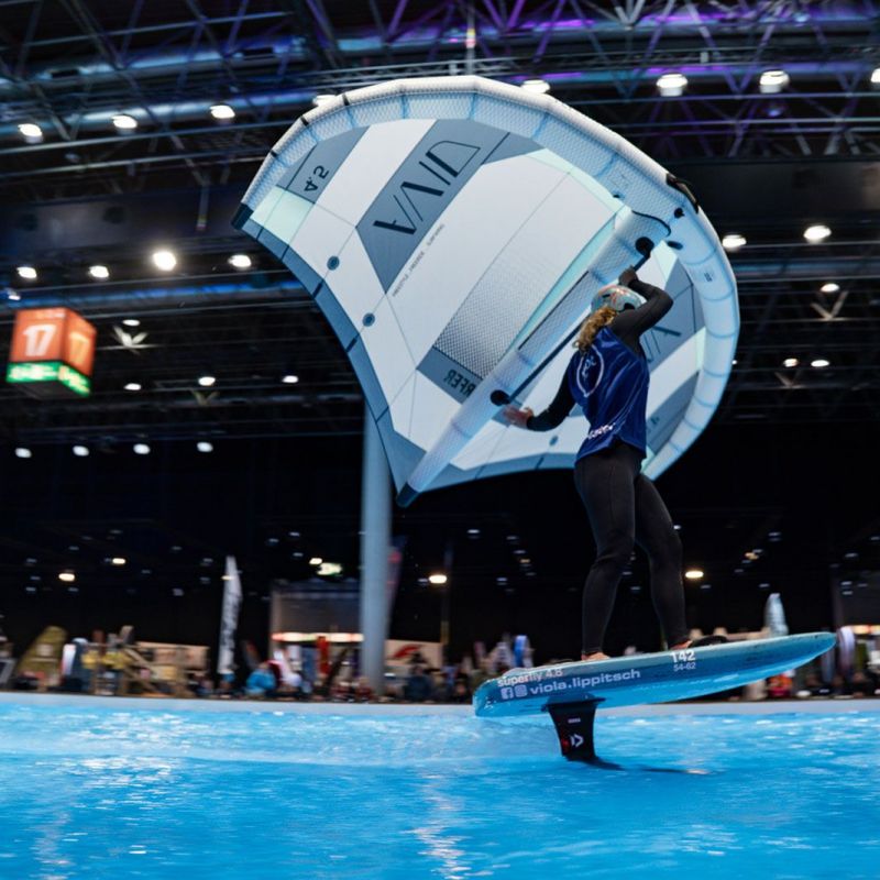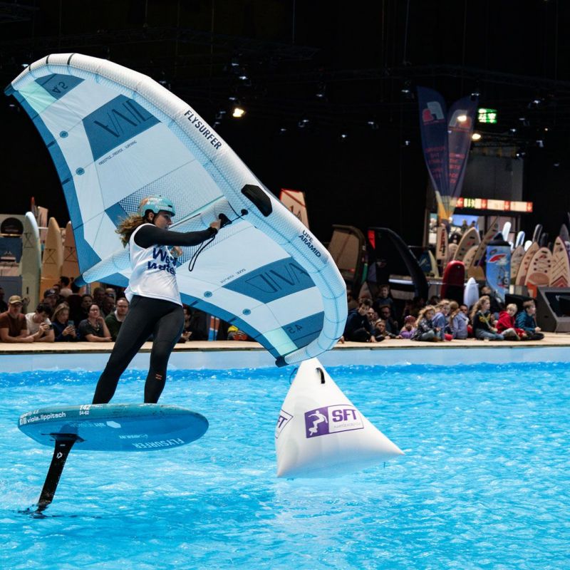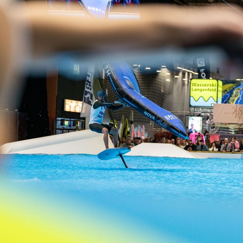 Viele der Besucher in Halle 17 und am XXL-Pool erlebten Wingfoil-Action zum ersten Mal hautnah. Das Einladungs-Event in Düsseldorf bot ein hochkarätiges Teilnehmerfeld mit einigen der weltbesten Stars und vielen Publikumslieblingen. Die Mutter der mehrfachen Weltmeisterin Nia Suardíaz ist Deutsche und die junge Atletin spricht gut Deutsch, obwohl sie in Spanien aufgewachsen ist. Der in München lebende Franz Schlittenbauer ist ein aufstrebender junger Fahrer bei den Herren, Balz Müller und die Österreicherin Viola Lippitsch gehören zu den bekanntesten Gesichtern der jungen Sportart. Mit ihnen starteten kaum weniger schillernde Namen der Wingfoil-Szene wie Alan Fédit und Manon Dupé aus Frankreich, Ancor Sosa aus Spanien, Bowien van der Linden aus den Niederlanden sowie Wilhelm und Hubert Christahl aus Deutschland.