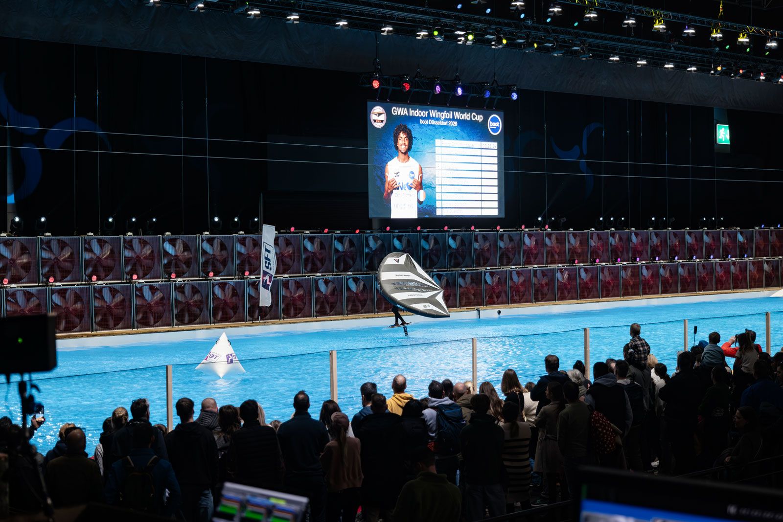 Der Indoor-Wingfoil-Weltcup Düsseldorf ist ein eigenständiger Wettbewerb der GWA, der nicht zum Weltmeisterschaftsgewinn in den vier Disziplinen beiträgt. Der spannende Indoor-Event fand über drei Tage im 60 × 20 Meter großen Becken als Einzelzeitfahren statt. Die zwölf teilnehmenden Herren und sechs Damen wurden von einem Seil auf ihre Foils gezogen und nutzten anschließende die Windkraft der großen Ventilatoren an der Beckenseite, um zwei oder drei Zeitrunden zu absolvieren.