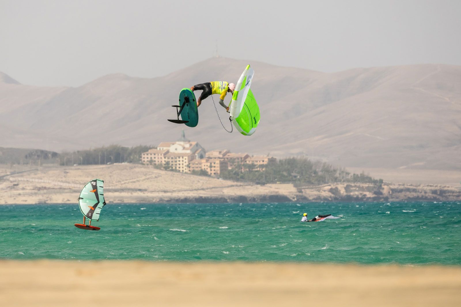 Die Führenden der Tour, Nia Suardíaz und Chris MacDonald, stehen kurz davor, den Weltmeistertitel im Surf-Freestyle auf Fuerteventura zu holen. Zurzeit ist nicht zu sehen, dass sie sich die perfekten Startrampen bei 30-Knoten-Wind entgehen lassen und noch irgendjemanden an der Krone wackeln lassen. Aber wir lassen uns am Finaltag gerne überraschen.