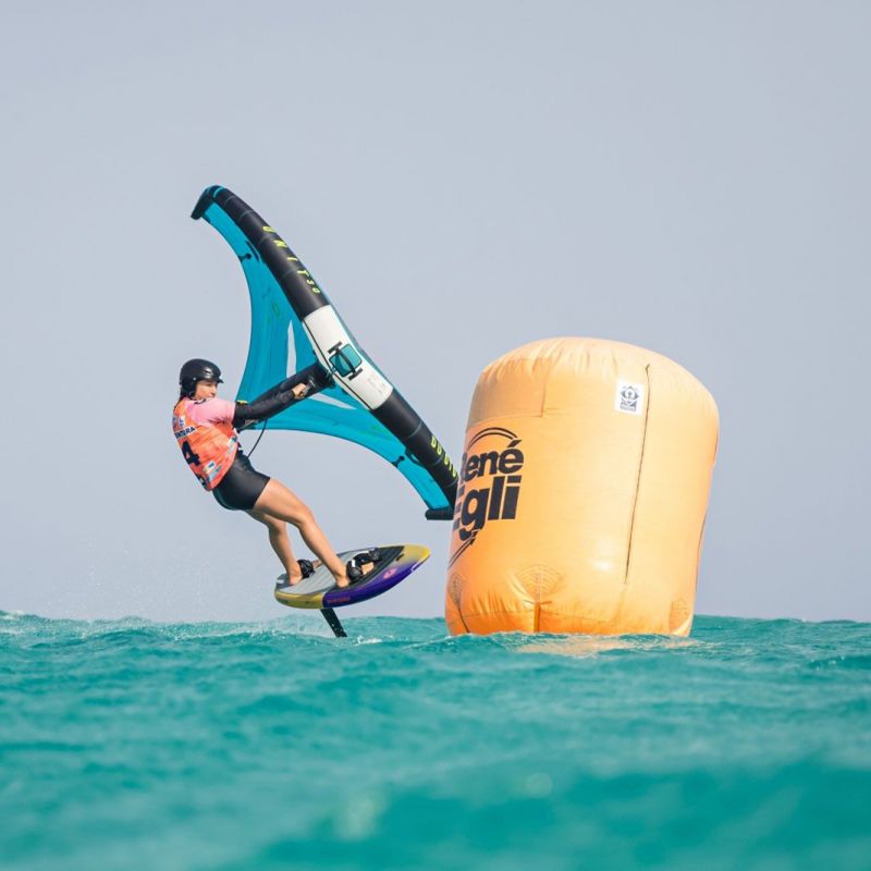 Weltmeisterin Nia Suardíaz, die schon den Tourstopp in Leucate souverän gewann, meisterte beide Runden wie gewohnt mühelos und lag damit fast 10 Punkte vor der Zweitplatzierten Kylie Belloeuvre, die im letzten Finale mit einer Disqualifikation die Chance verpasste, weiterhin auf die Führende aufzuschließen. „Ich war auf einem 3,0 qm großen Wing und einem 550 großen Frontfoil unterwegs“, sagte eine entspannte Nia Suardíaz am Strand nach ihrem Sieg nach der ersten Entscheidungsrunde. Auf die Frage, welche Größe das Backfoil habe, wußte sie nicht recht zu antworten und lachte: „ich weiß es wirklich nicht.“ Der Vorsprung von Nia Suardíaz war wie immer beeindruckend. Sie baute den Vorsprung sowohl zwischen den Bojen wie im Pumpfoil-Bereich konsequent aus und demonstrierte erneut, ihren disziplinübergreifenden Führungsanspruch auf der Tour.
