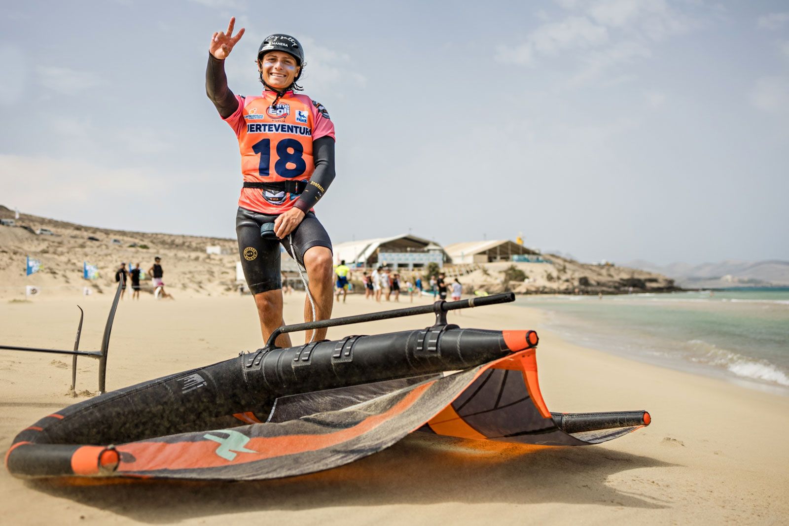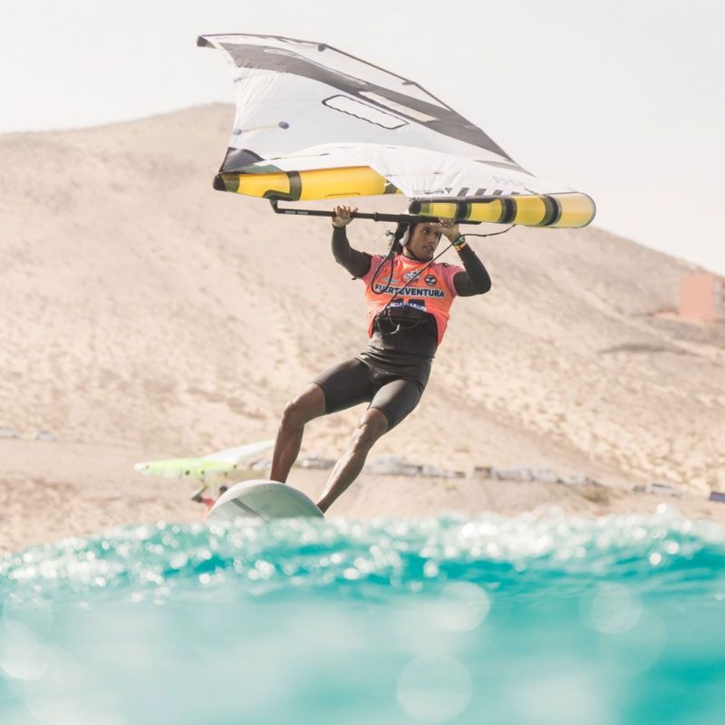 von Sven BlockMaximale Geschwindigkeit von über 30 Knoten auf winzigen Foils bei über 30 Knoten Wind, waren die Realität für die 14 Damen und 27 Herren, die am ersten Tag im Freefly-Slaloms beim Stopp der GWA Wingfoil World Tour auf Fuerteventura antraten. Und Nia Suardíaz und Francesco Cappuzzo verschwendeten keine Zeit, um ihren Führungsanspruch in der Weltspitze erneut zu demonstrieren.
