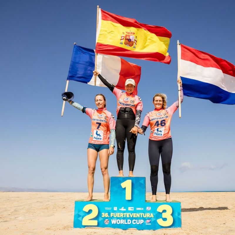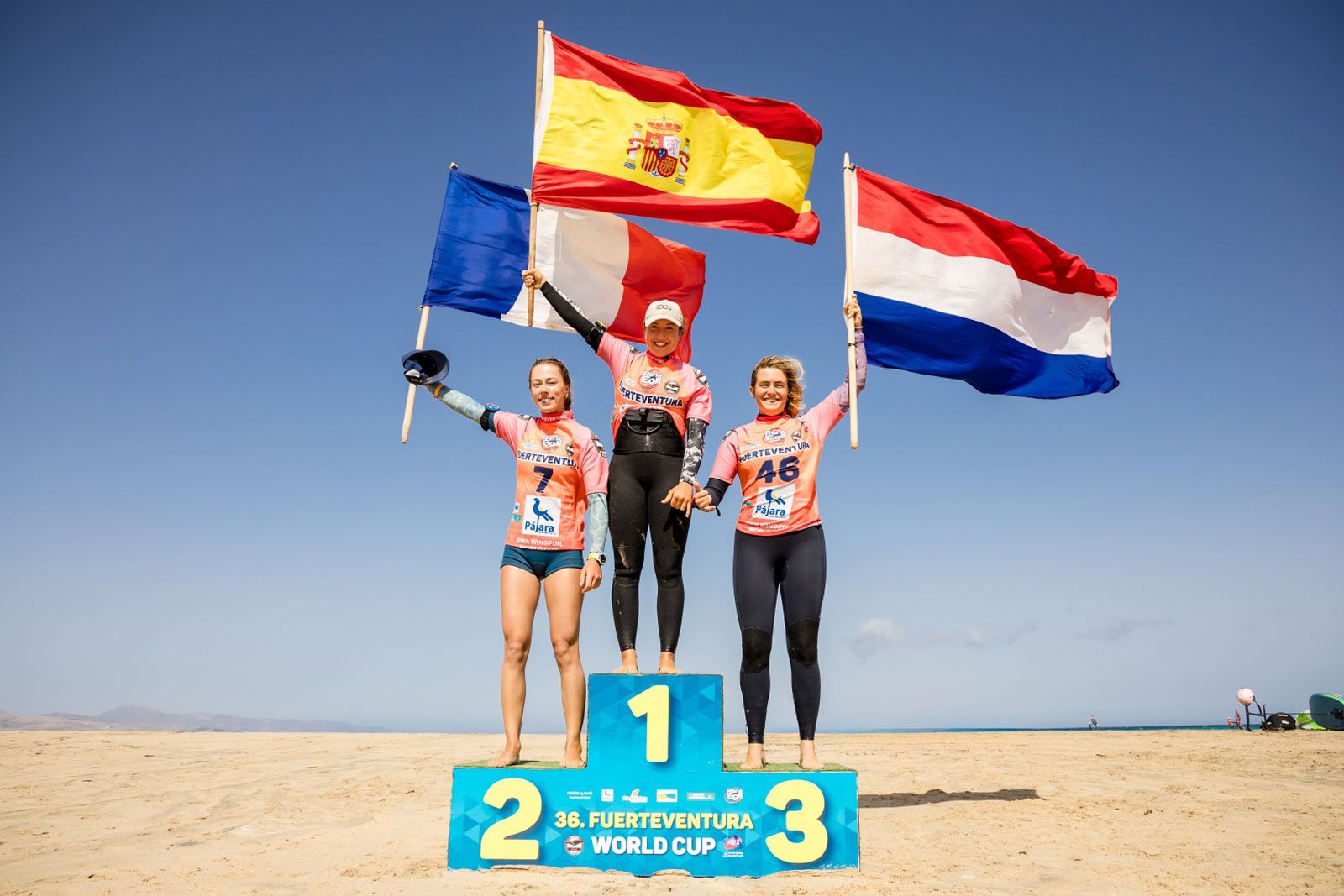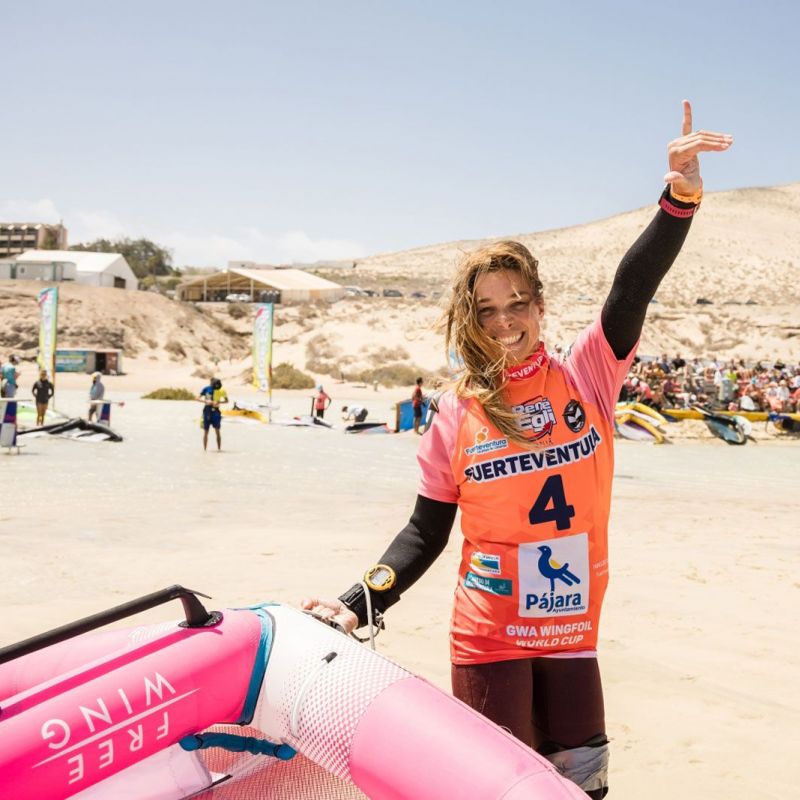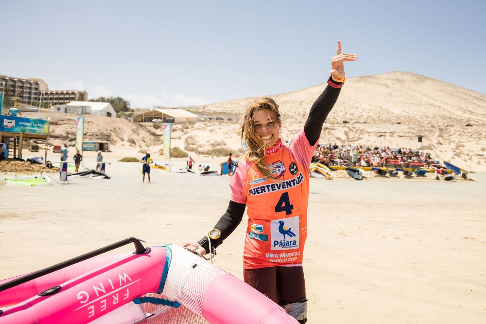 Nia Suardíaz gewann den ersten Lauf des Finales, was sie zu ihrer nach den Qualifikationsrunden verdienten Punktzahl hinzufügte, und sicherte sich den Eventsieg auf Fuerteventura. Ihr zweiter FreeFly-Slalom-Sieg der Saison. Nach einem dichten ersten Durchgang ging sie mit Führung über die Ziellinie und hob nach ihrem Sieg erleichtert mit einem Sprung in die Luft ab. Mit ihrem punktgenauen Starttiming lag die Weltmeisterin bei fast jeder Markierung in der Finalserie in Führung. Die einzige, die ihr in der Rangliste konstant dicht auf den Fersen war, war Kylie Bellouevre, die in drei der vier Ausscheidungsrunden Zweite hinter Nia Suardíaz wurde. „Kylie hat richtig Gas gegeben und ich denke, das Niveau ist besonders bei diesen windigen Bedingungen wirklich hoch. Ich freue mich wirklich darauf zu sehen, wie es beim Event in Brasilien läuft“, freute sich Nia Suardíaz über den erneuten Sieg.