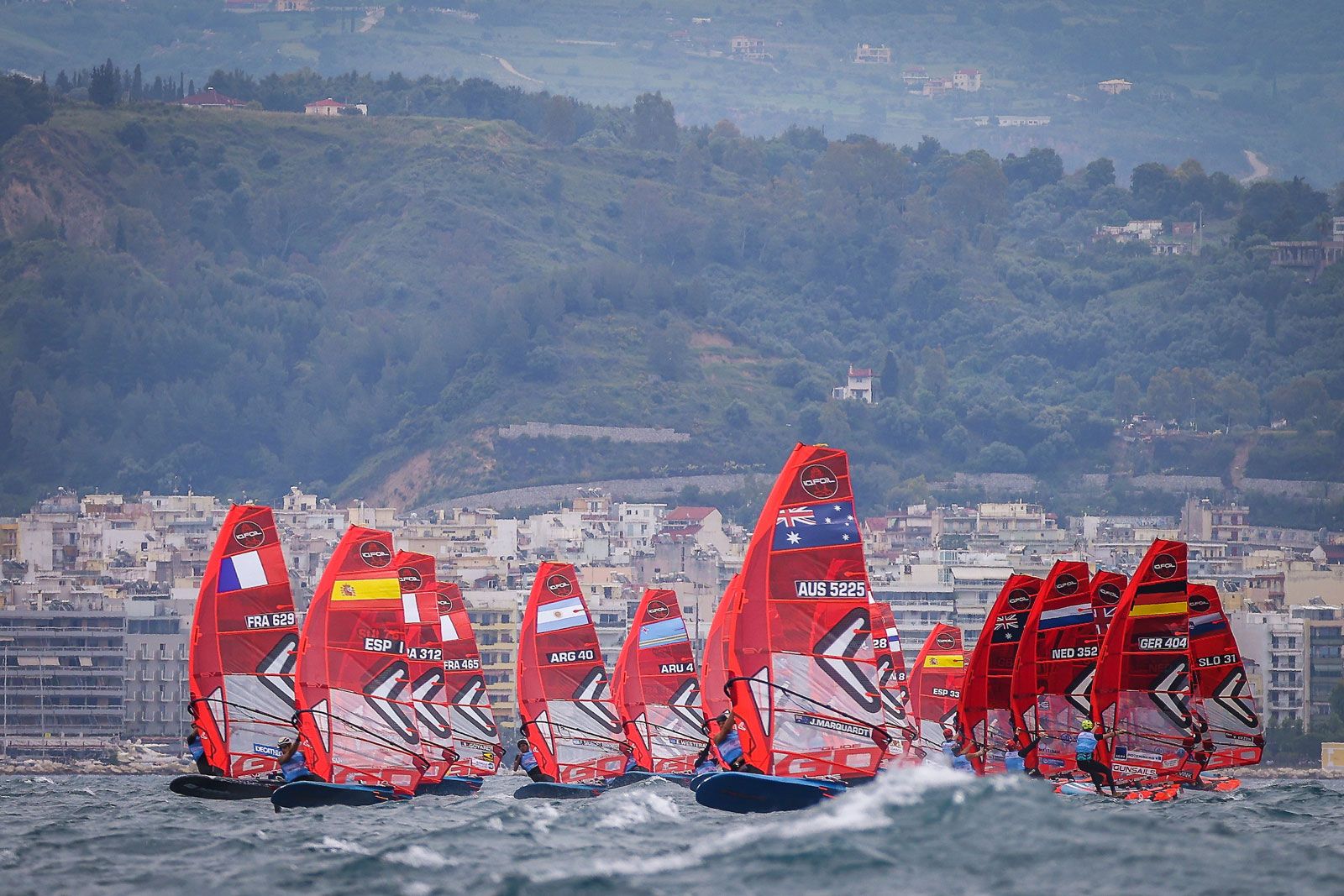 Nicolas Goyard, Sebastian Kördel und Sara Wennekes entschieden sich als heiße Kandidaten auf Gold bei den Olympischen Spielen 2024 für Griechenland und trafen dabei gleich am ersten Tag auf mehr als herausfordernde Bedingungen. Starker Wind, Wellen und entgegen dem Wind gerichtete Strömungsverhältnisse machten es den Fahrerinnen und Fahrern bei der IQ Foil Europameisterschaft in Petras alles andere als leicht, ihr Foil-Equipment sanft und ohne Aufsetzer über den Kurs zu führen. Am Ende des ersten Tages und mit Blick auf die schlechte Windvorhersage für den Stopp der PWA in Italien, haben die Drei alles richtig gemacht und stehen zurzeit mit Emma Wilson, Islay Watson und Luuc van Opzeeland an der Spitze des mit 114 Herren und 86 Damen besetzen Teilnehmerfelds.