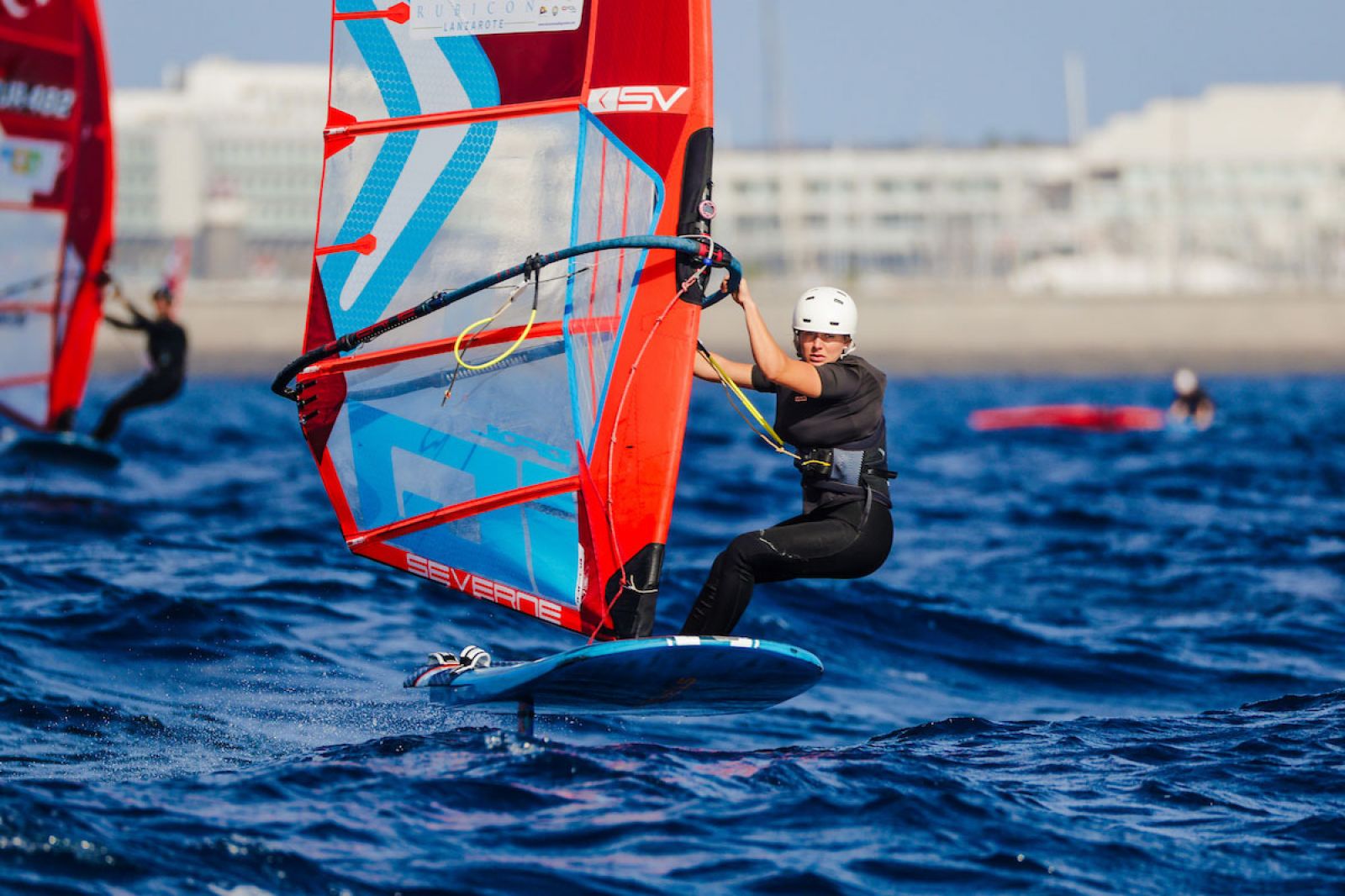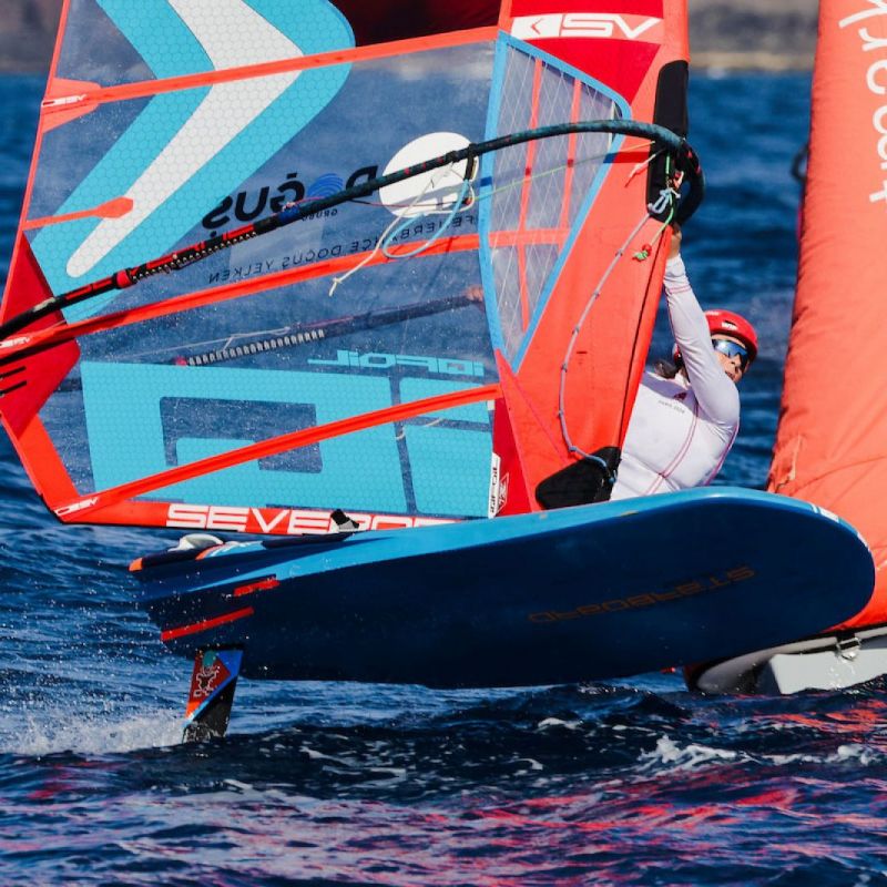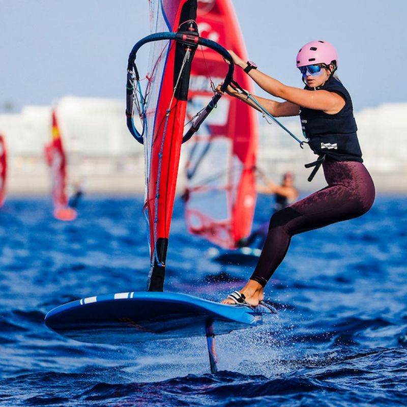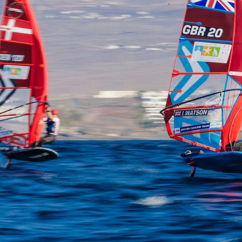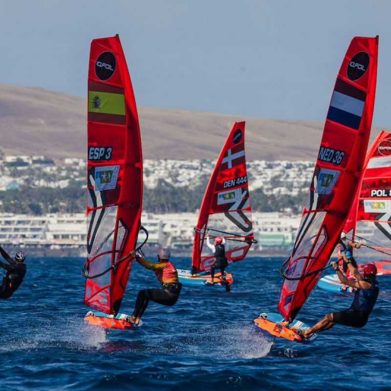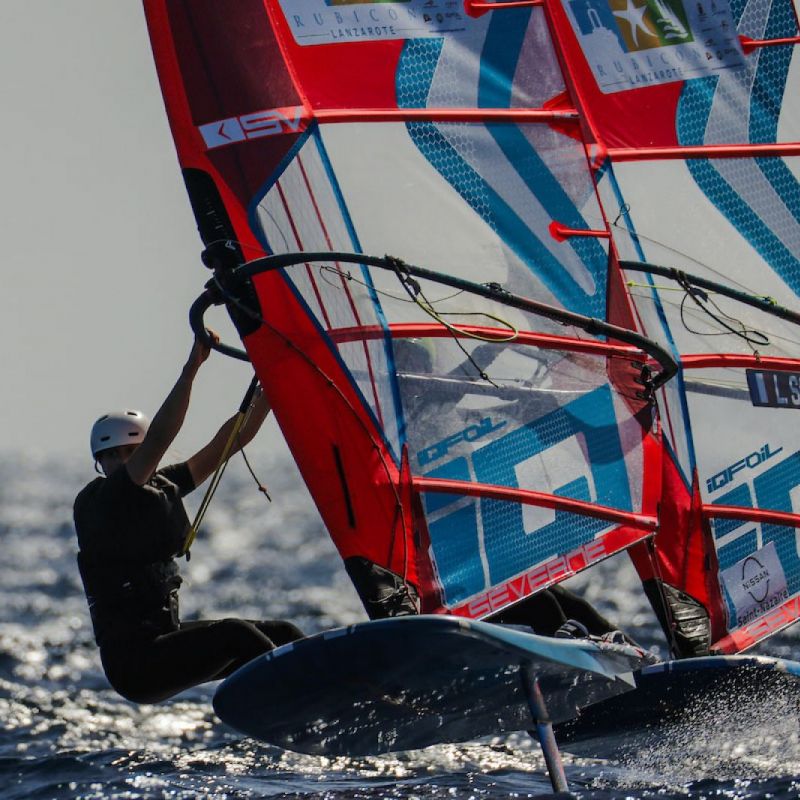 von Sven BlockDie besten acht Herren und Damen haben sich ihre Plätze für das morgige K.o.-Finale bei den iQFOiL International Games in Marina Rubicón vor Lanzarote gesichert. Das ursprünglich geplante Marathonrennen musste aufgrund der instabilen Windverhältnisse zwischen Playa Blanca und der Insel Los Lobos, direkt vor Fuerteventura, ausgesetzt werden. Stattdessen entschied sich das Rennkomitee für weitere Kursrennen und danach zum Abschluss für Sprint-Slalomrennen, sodass die Flotten ihre komplette Eröffnungsserie mit insgesamt 16 Rennen absolvieren konnten.