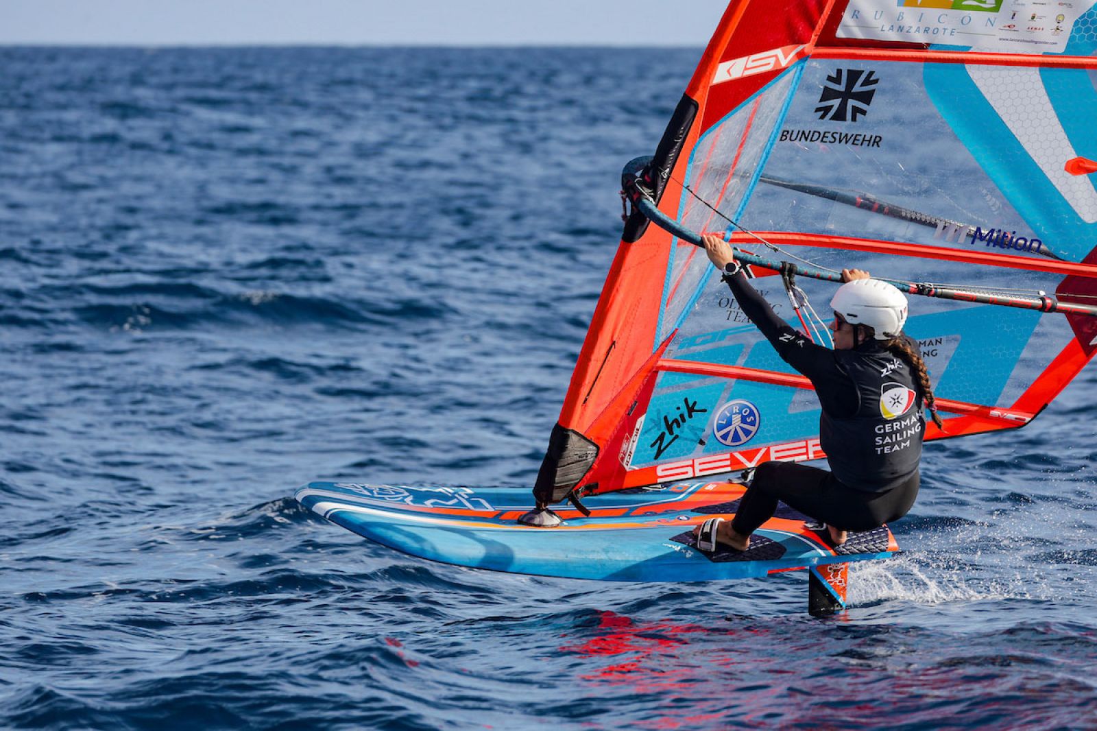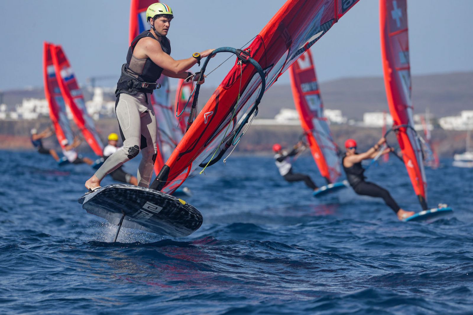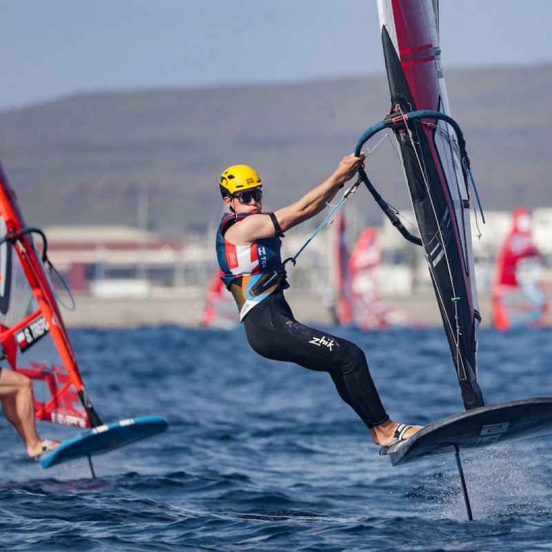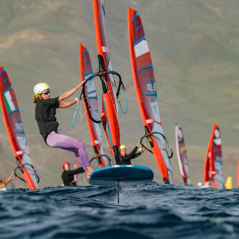 von Sven BlockOrganisiert von der Marina Rubicón, verzeichnen die iQFOiL Games Lanzarote mit 101 Teilnehmern (61 Herren und 40 Damen) aus 30 Nationen einen starken Auftakt der diesjährigen Regattasaison. Der erste Tag bot anspruchsvolle, aber qualitativ hochwertige Rennbedingungen. Eine Brise aus Westnordwest wehte mit 8 bis 12 Knoten und drehte im Laufe des Nachmittags leicht nach rechts. Die Regattastrecke bot eine 1,5 Meter hohe Dünung, minimalen Wellengang und klares Wasser, was schnelle, technisch anspruchsvolle Bedingungen für die Flotte bedeutete.