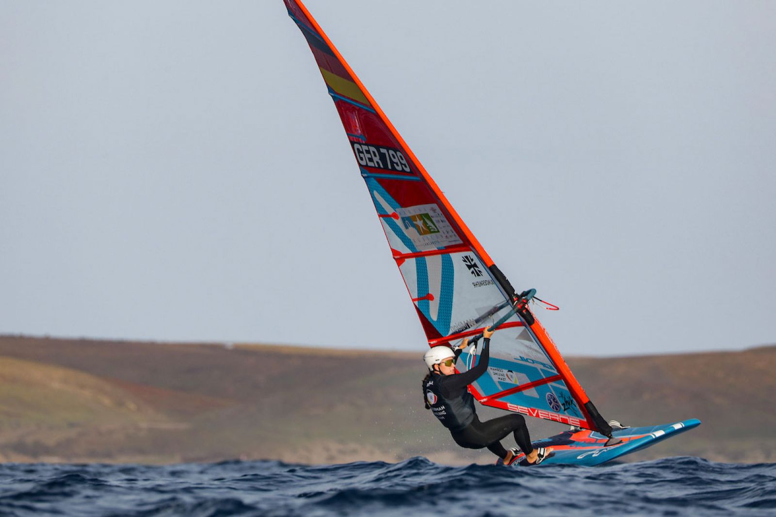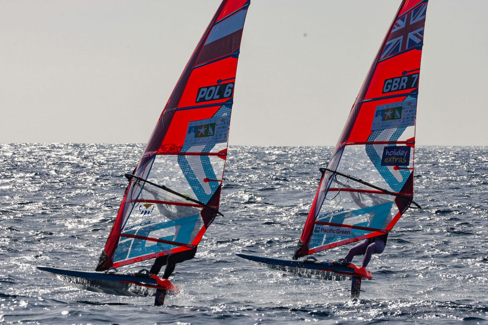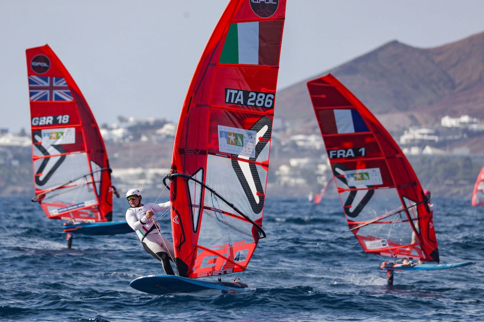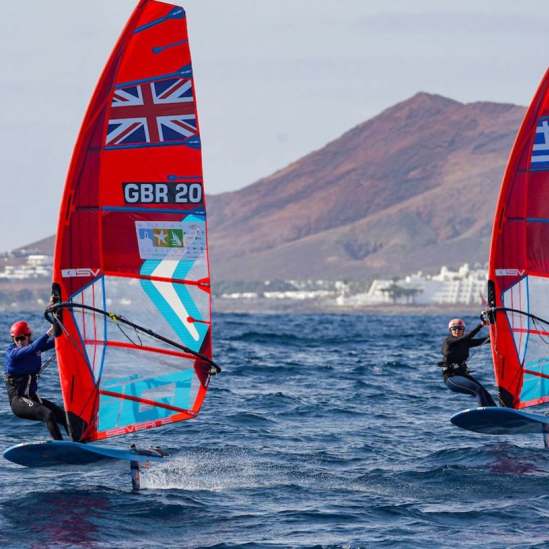 Saisonauftakt mit rasanter Slalom-Action unter klassischen Lanzarote-Bedingungen am ersten Tag bei den ersten iQFOiL Games in diesem Jahr. Emma Wilson und Finn Hawkins übernehmen die Führung.