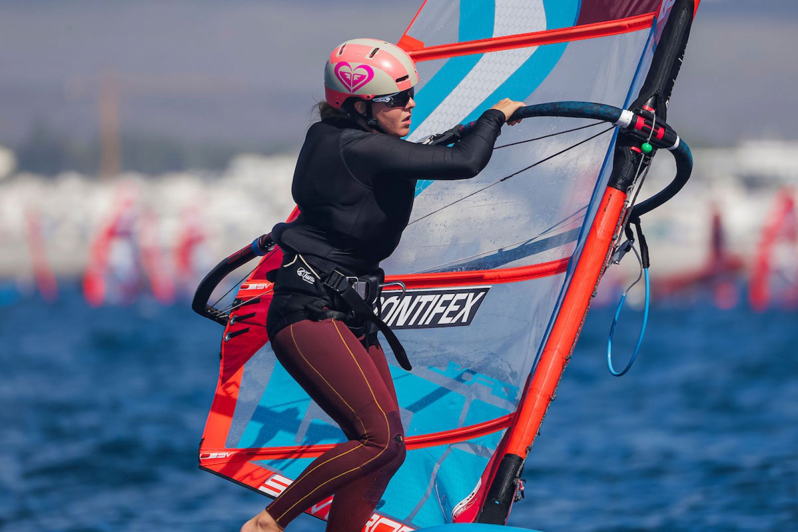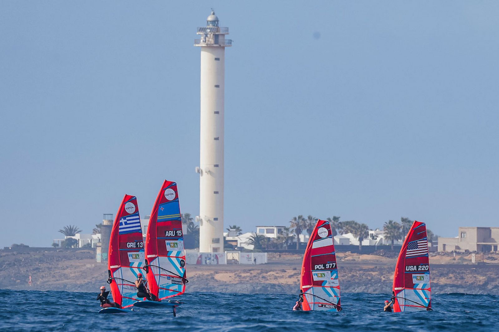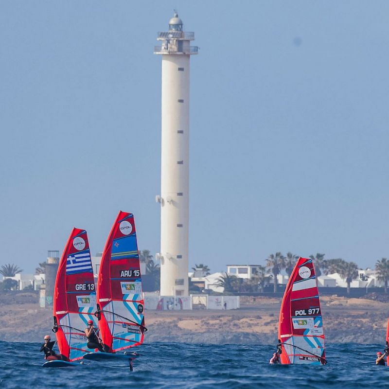Die Regattastrecke wurde näher an den Leuchtturm verlegt, wo die Starterinnen und Starter mit etwas höherer Dünung als am Vortag zu kämpfen hatten. Die Windrichtung blieb bei Nordnordwest, war aber in den frühen Morgenstunden schwächer. Daher eröffnete die Regattaleitung den Tag mit einem Sprint-Slalom-Rennen für die Herren. Mit zunehmenden Winden wechselte das Programm zu Sprintrennen gegen den Wind: drei Rennen für die Herren und vier für die Damen. Es handelt sich um kurze, temporeiche Rennen, bei denen die Flotte aufgeteilt wird, der Start gegen den Wind sorgt für zusätzliche Herausforderungen und belohnte Präzision und saubere Ausführung von Start weg.