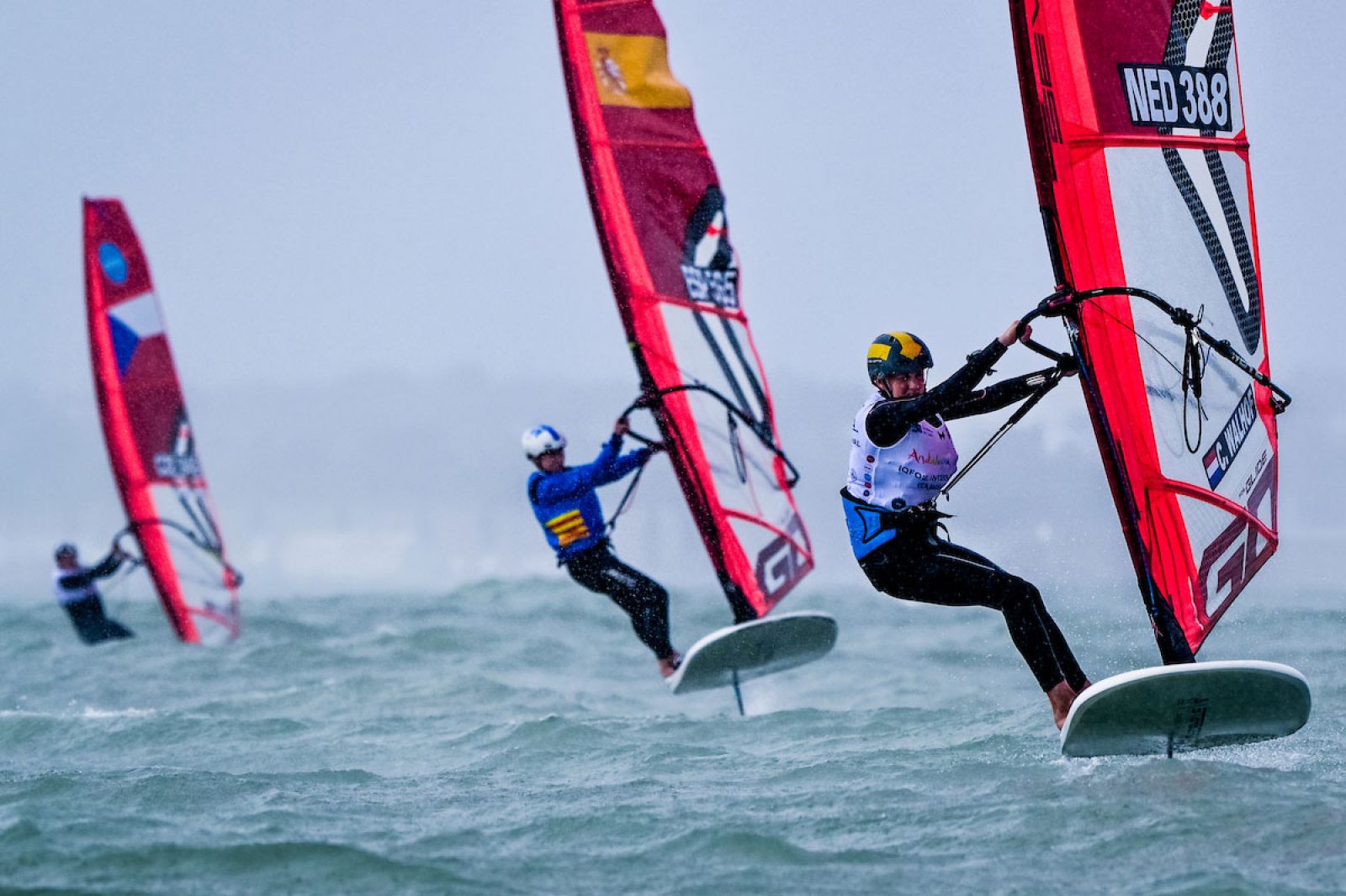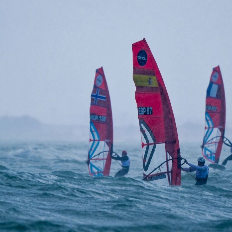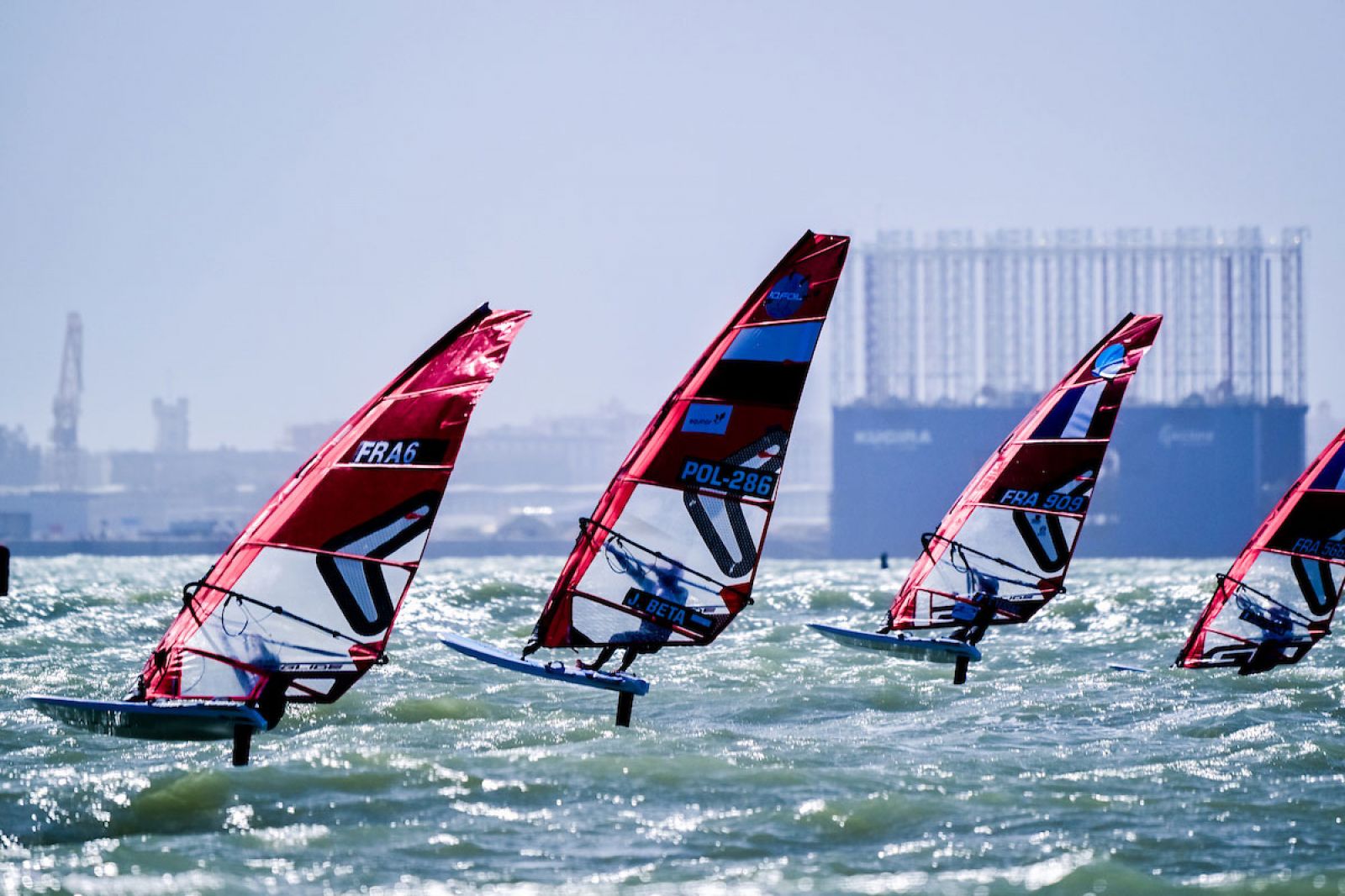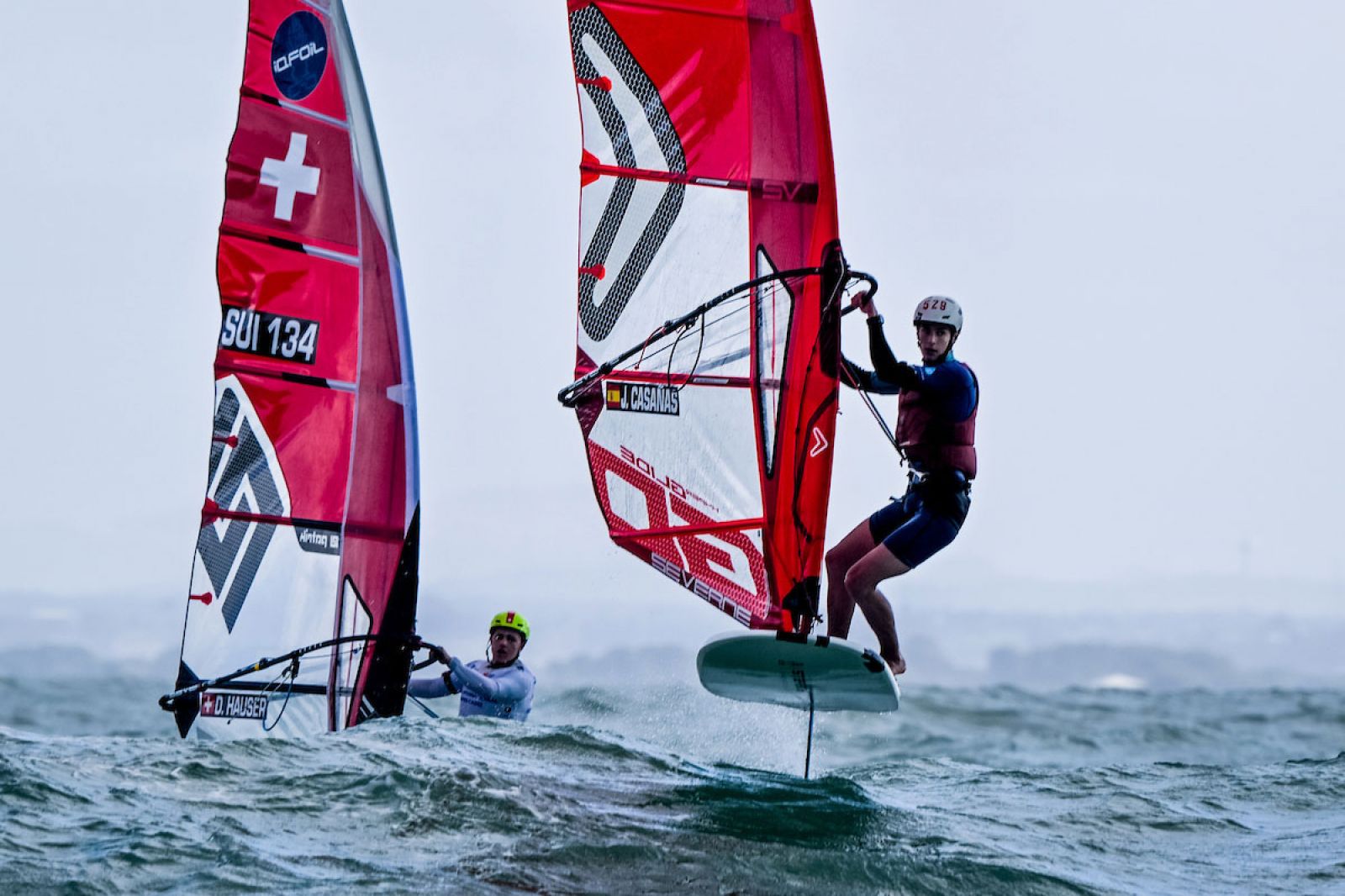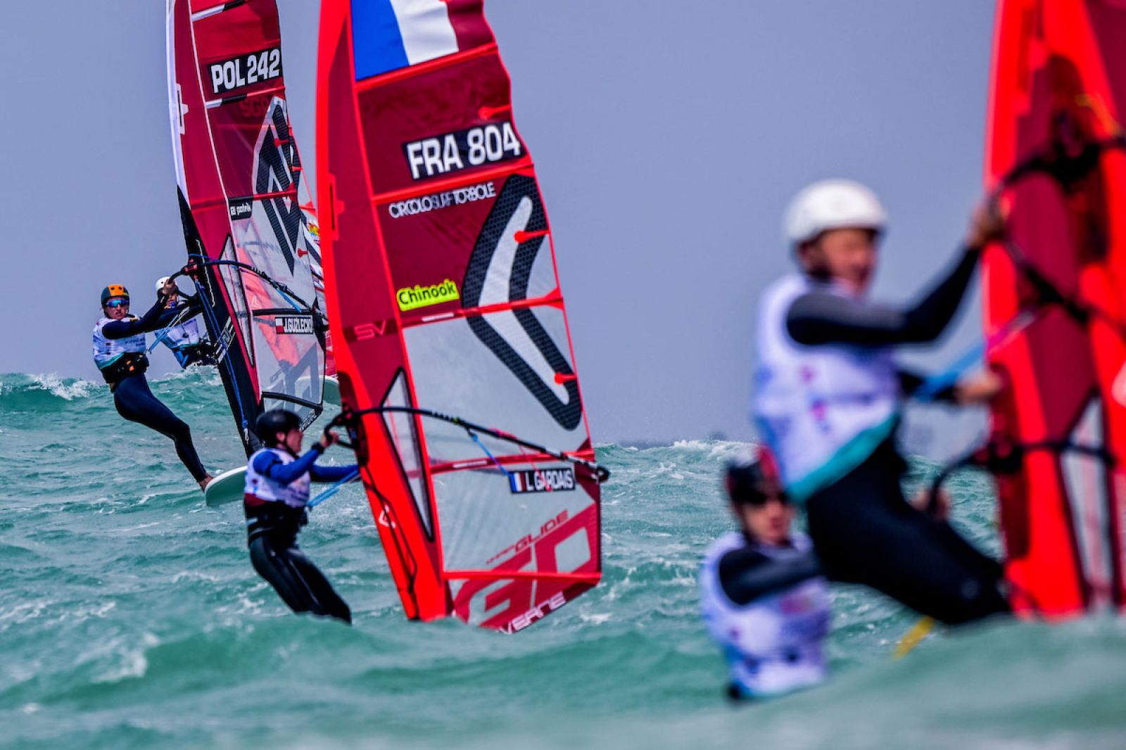 Die U19-Flotten brachen etwas früher auf als die Senioren und fuhren auf einem westlich gelegeneren Kurs, näher am offenen Wasser. Mit größeren Wellen und stärkeren Winden erwies sich das Rennen als noch anspruchsvoller. Die U19-Herren absolvierten vier Kursrennen, während die U19-Damen nach drei Rennen wegen zunehmender Winde an Land geschickt wurden. Kylian Manhaval aus Frankreich war mit vier Siegen in Folge nicht zu stoppen. Mit Punktgleichheit belegten Robin Zeley aus der Schweiz und der Franzose Titouan Dizet den zweiten und dritten Platz. Bei den Damen setzte sich Yfke van der Meer mit drei Siegen an die Spitze gefolgt von der Polin Zofia Zarzecka (zwei zweite Plätze und ein dritter) und Jade Boyer-Gibaud aus Frankreich (ein zweiter und zwei dritte Plätze) durch.