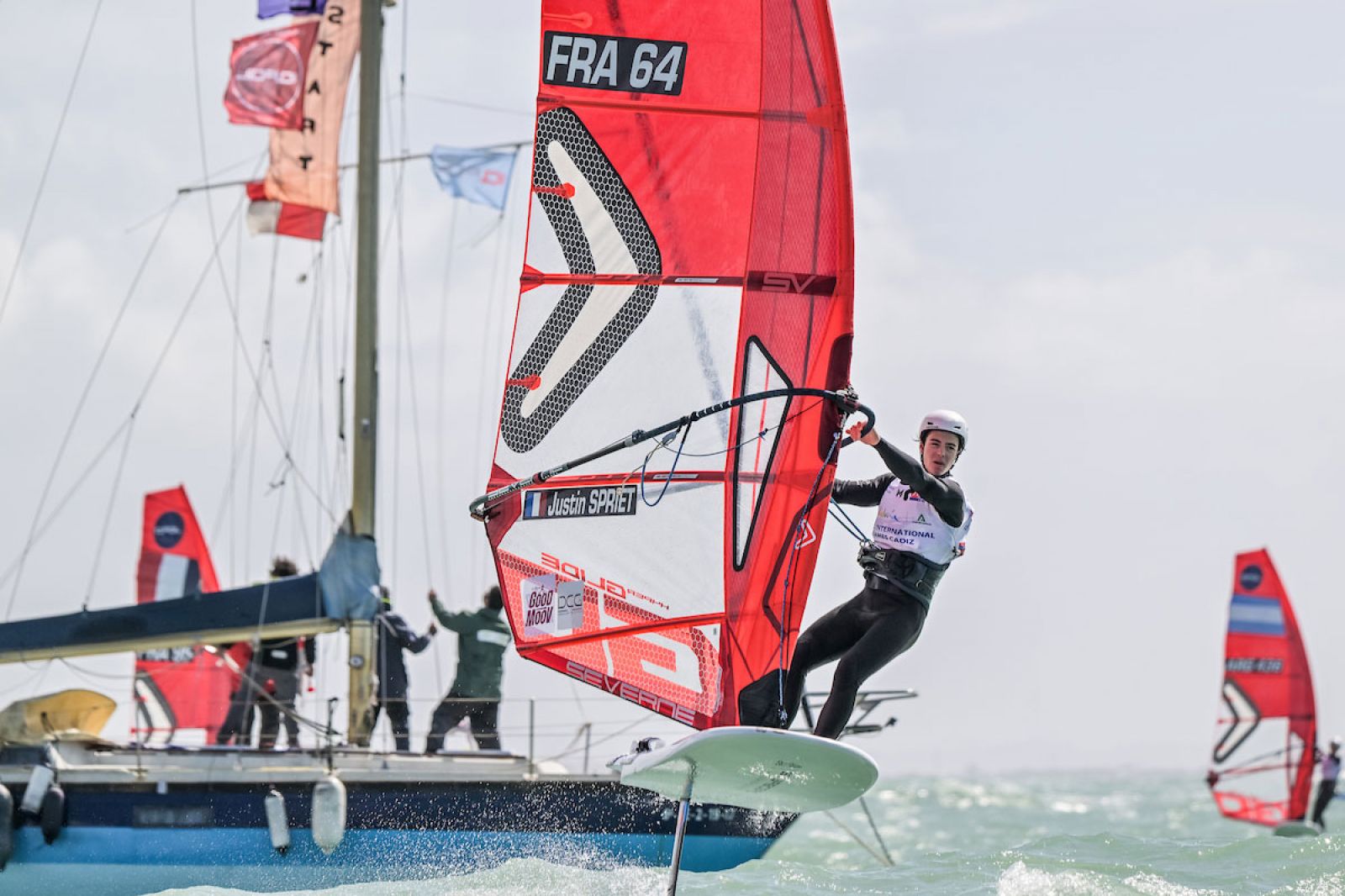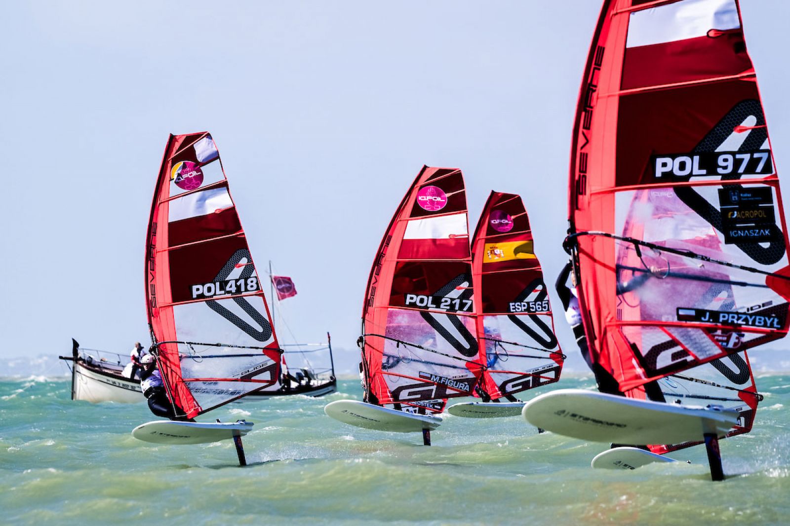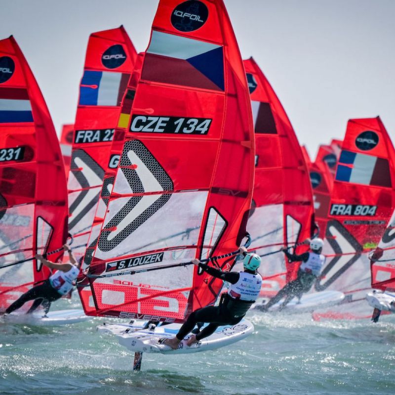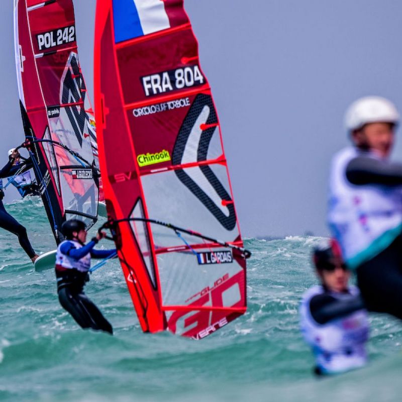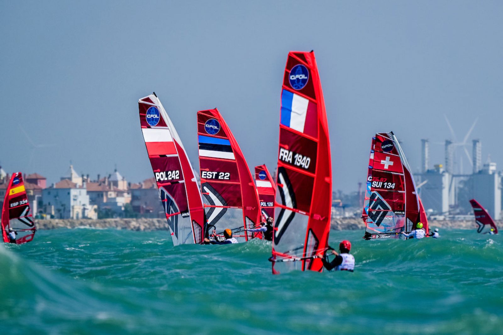 Die U19-Flotten brachen etwas früher auf als die Senioren und fuhren auf einem westlich gelegeneren Kurs, näher am offenen Wasser. Mit größeren Wellen und stärkeren Winden erwies sich das Rennen als noch anspruchsvoller. Die U19-Herren absolvierten vier Kursrennen, während die U19-Damen nach drei Rennen wegen zunehmender Winde an Land geschickt wurden. Kylian Manhaval aus Frankreich war mit vier Siegen in Folge nicht zu stoppen. Mit Punktgleichheit belegten Robin Zeley aus der Schweiz und der Franzose Titouan Dizet den zweiten und dritten Platz. Bei den Damen setzte sich Yfke van der Meer mit drei Siegen an die Spitze gefolgt von der Polin Zofia Zarzecka (zwei zweite Plätze und ein dritter) und Jade Boyer-Gibaud aus Frankreich (ein zweiter und zwei dritte Plätze) durch.