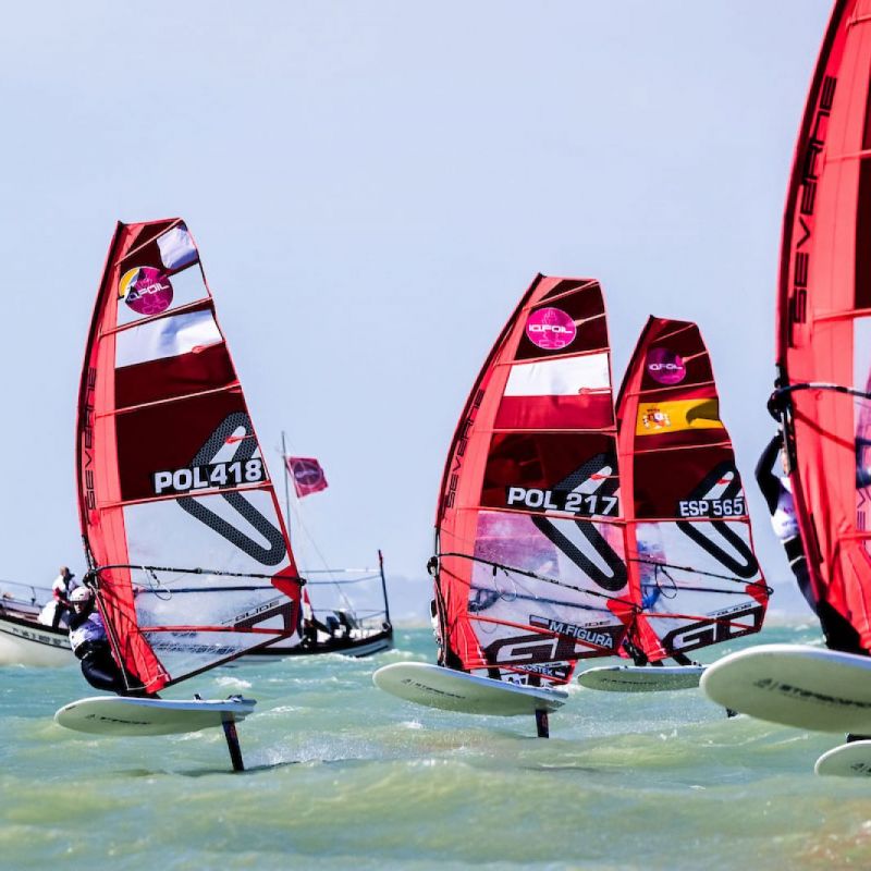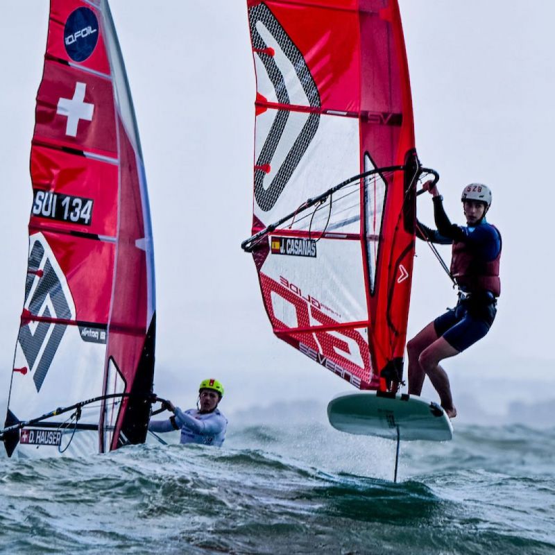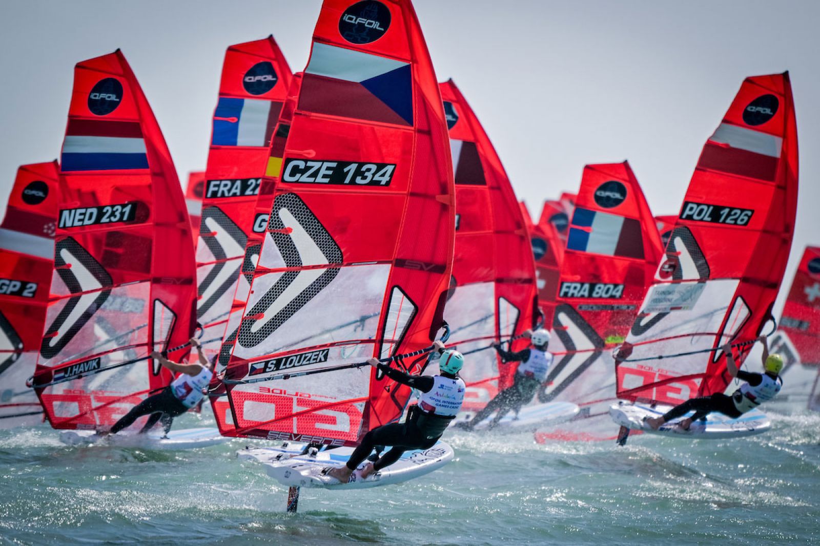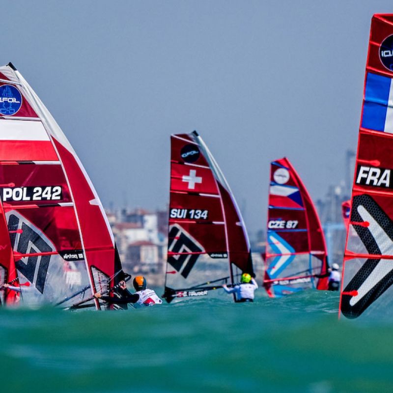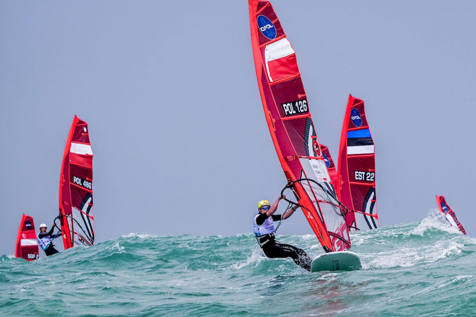 Die U19-Flotten brachen etwas früher auf als die Senioren und fuhren auf einem westlich gelegeneren Kurs, näher am offenen Wasser. Mit größeren Wellen und stärkeren Winden erwies sich das Rennen als noch anspruchsvoller. Die U19-Herren absolvierten vier Kursrennen, während die U19-Damen nach drei Rennen wegen zunehmender Winde an Land geschickt wurden. Kylian Manhaval aus Frankreich war mit vier Siegen in Folge nicht zu stoppen. Mit Punktgleichheit belegten Robin Zeley aus der Schweiz und der Franzose Titouan Dizet den zweiten und dritten Platz. Bei den Damen setzte sich Yfke van der Meer mit drei Siegen an die Spitze gefolgt von der Polin Zofia Zarzecka (zwei zweite Plätze und ein dritter) und Jade Boyer-Gibaud aus Frankreich (ein zweiter und zwei dritte Plätze) durch.