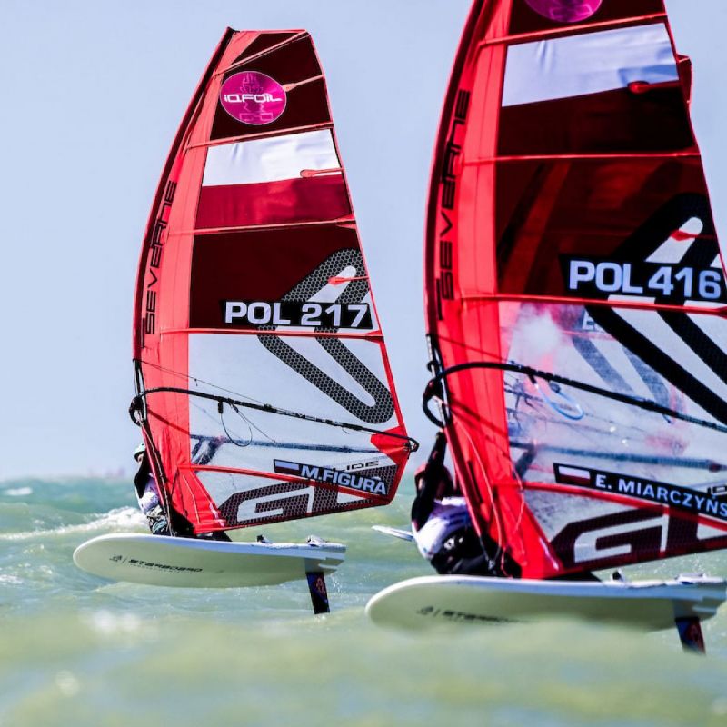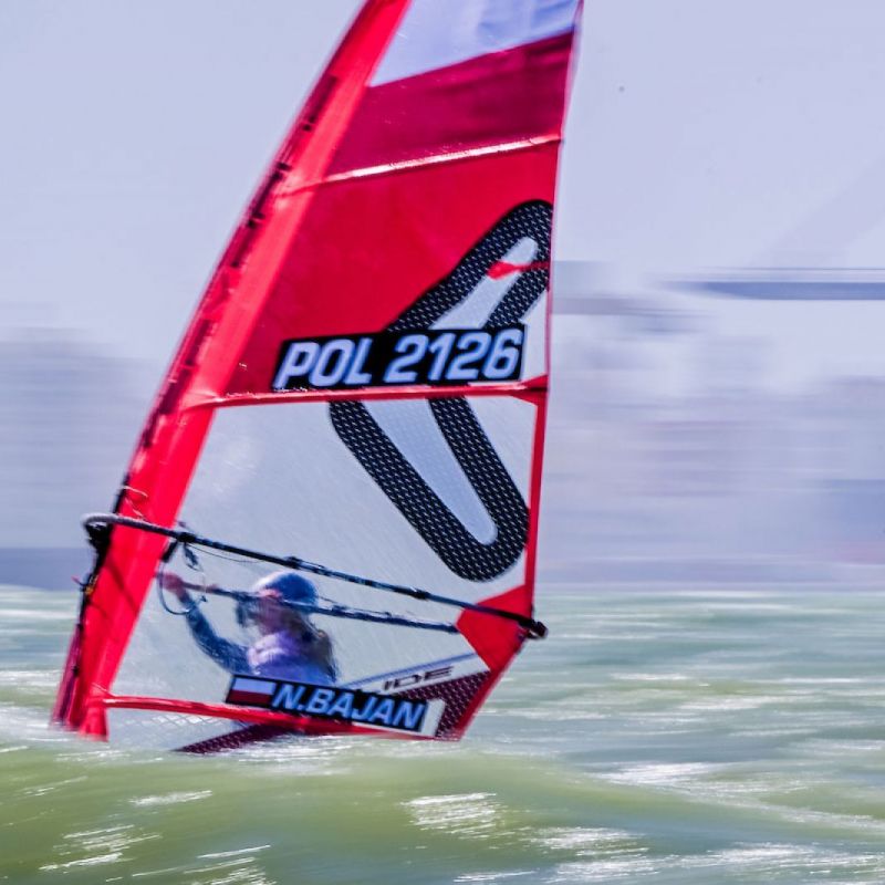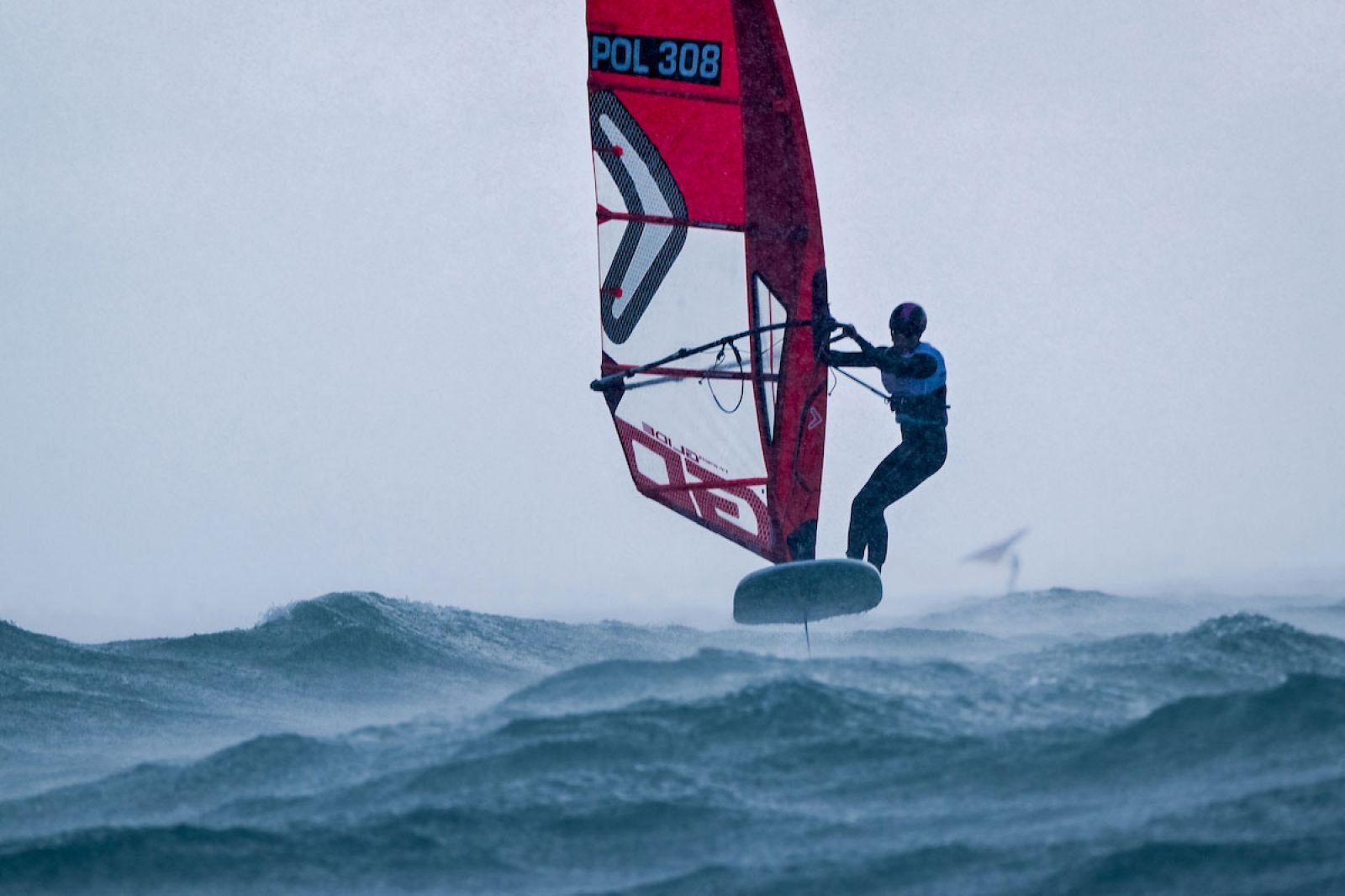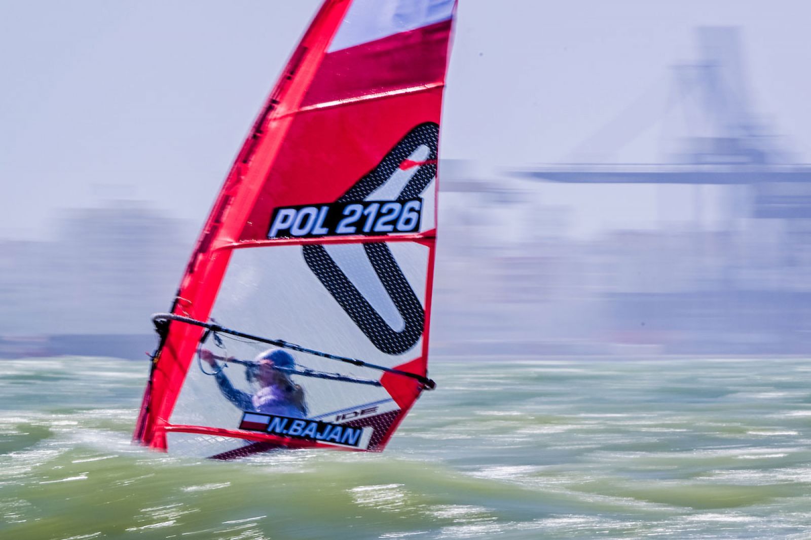 Die U17-Flotten gingen am Nachmittag als letzte aufs Wasser und nutzten den Kurs, den zuvor die Senioren absolviert hatten. In einer kurzen und intensiven Session absolvierten sowohl die jungen Herren und die jungen Damen vier Kursrennen. Julia Przybyl aus Polen holte drei Siege und führt damit die Wertung an, gefolgt von Kalina Szostek ebenfalls aus Polen, die das vierte Rennen für sich entscheiden konnte. Anna Korevaar aus den Niederlanden liegt auf Platz drei. Bei den Jungen stehen die niederländischen Segler Finn Brüll und Merlijn Boswijk an der Spitze, Lorenzo Maroadi aus Italien liegt auf der dritten Position. „Wir hatten einen fantastischen Tag auf dem Wasser! Ich habe es geschafft, drei Rennen zu gewinnen - es war verrückt da draußen mit starkem Wind, großen Wellen und viel Energie“, freute sich Finn Brüll über seinen Triumph am ersten Tag.