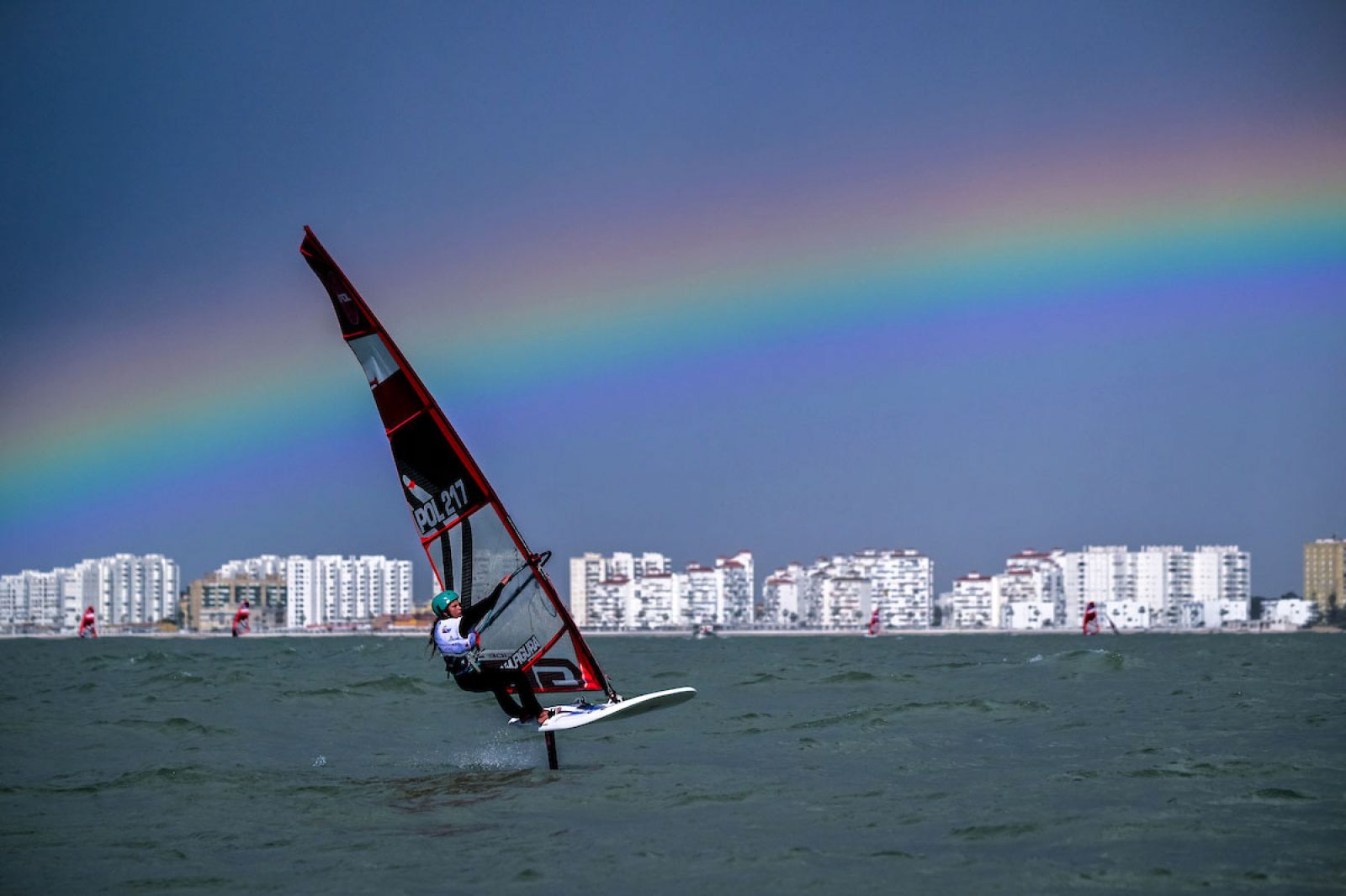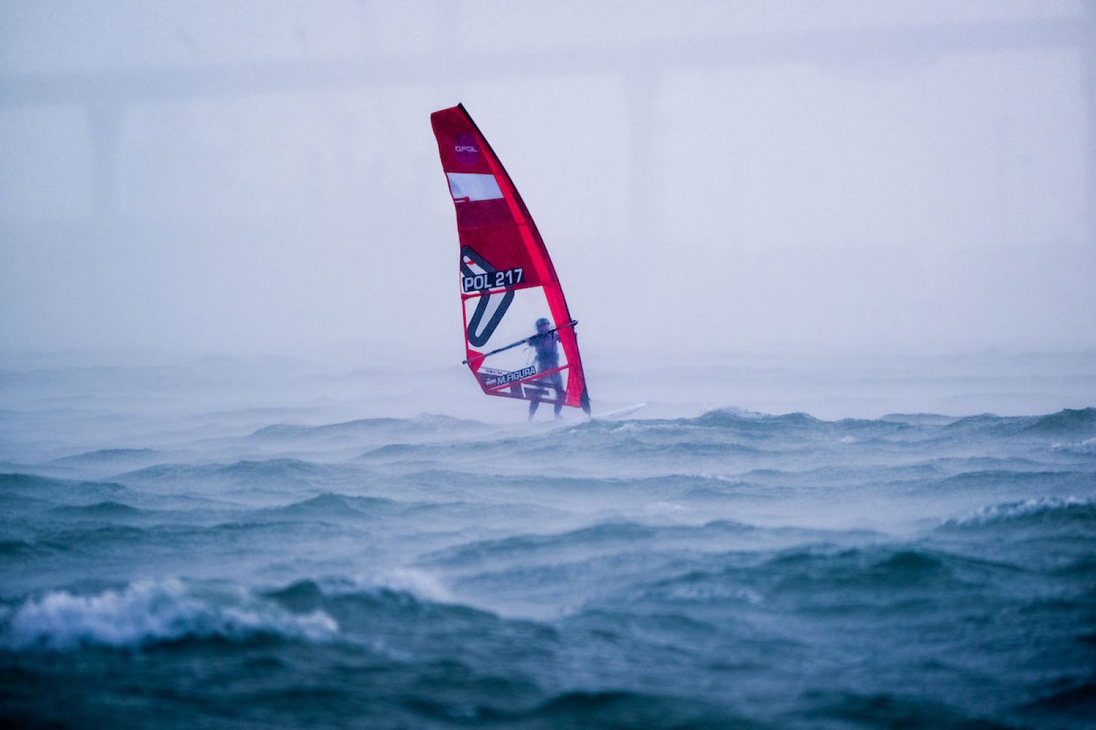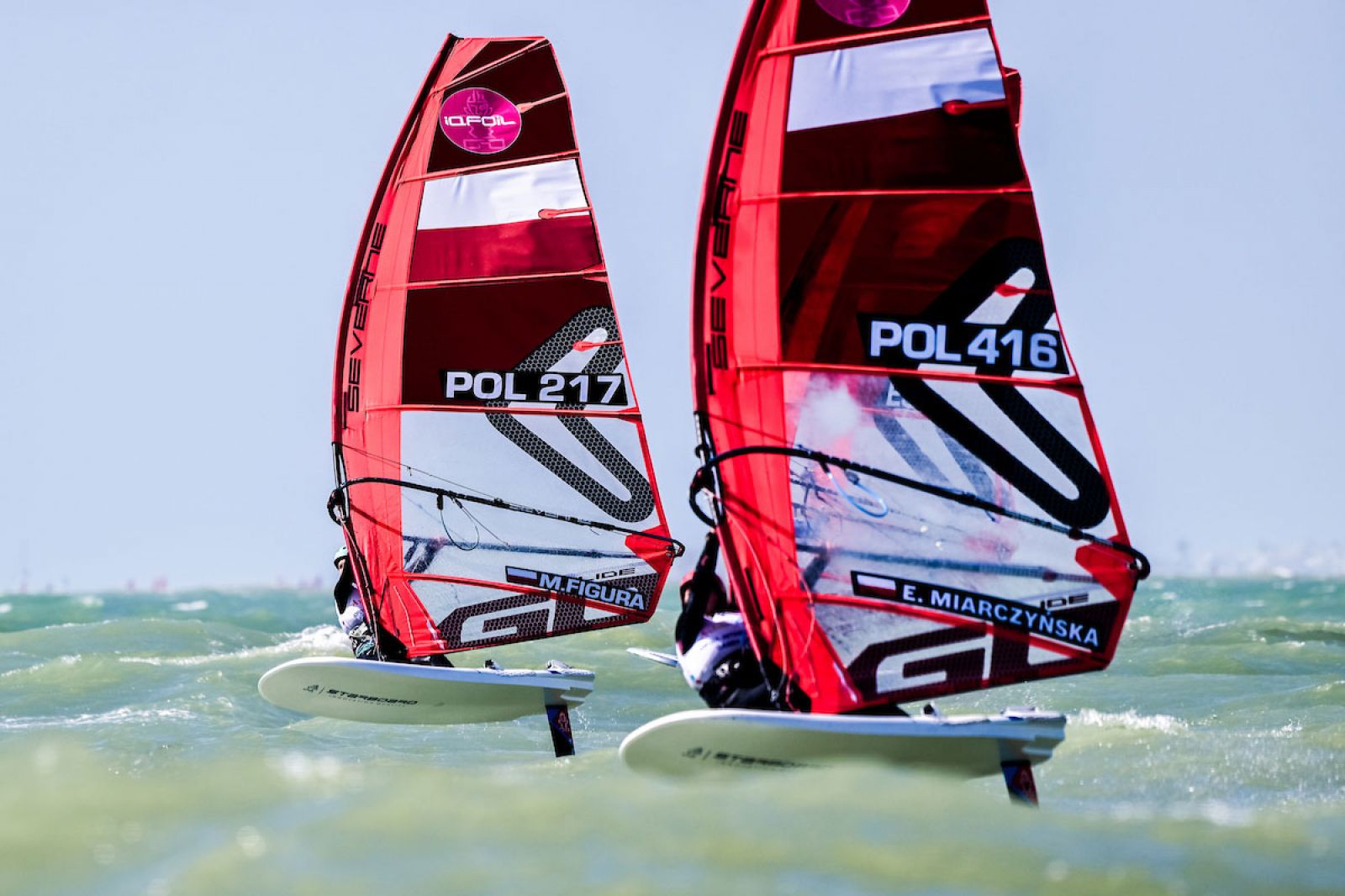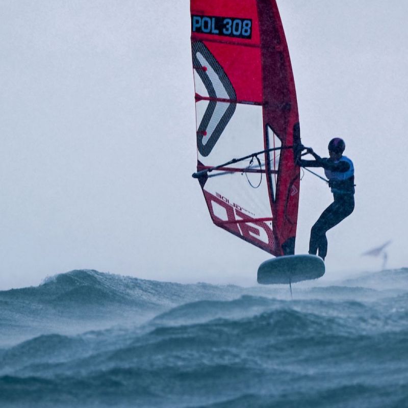 Die U17-Flotten gingen am Nachmittag als letzte aufs Wasser und nutzten den Kurs, den zuvor die Senioren absolviert hatten. In einer kurzen und intensiven Session absolvierten sowohl die jungen Herren und die jungen Damen vier Kursrennen. Julia Przybyl aus Polen holte drei Siege und führt damit die Wertung an, gefolgt von Kalina Szostek ebenfalls aus Polen, die das vierte Rennen für sich entscheiden konnte. Anna Korevaar aus den Niederlanden liegt auf Platz drei. Bei den Jungen stehen die niederländischen Segler Finn Brüll und Merlijn Boswijk an der Spitze, Lorenzo Maroadi aus Italien liegt auf der dritten Position. „Wir hatten einen fantastischen Tag auf dem Wasser! Ich habe es geschafft, drei Rennen zu gewinnen - es war verrückt da draußen mit starkem Wind, großen Wellen und viel Energie“, freute sich Finn Brüll über seinen Triumph am ersten Tag.
