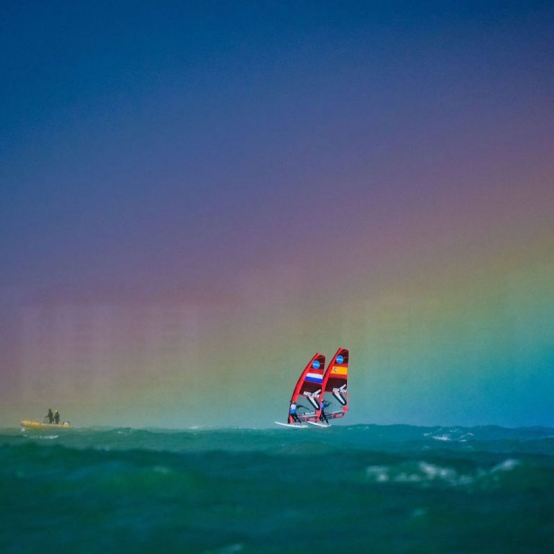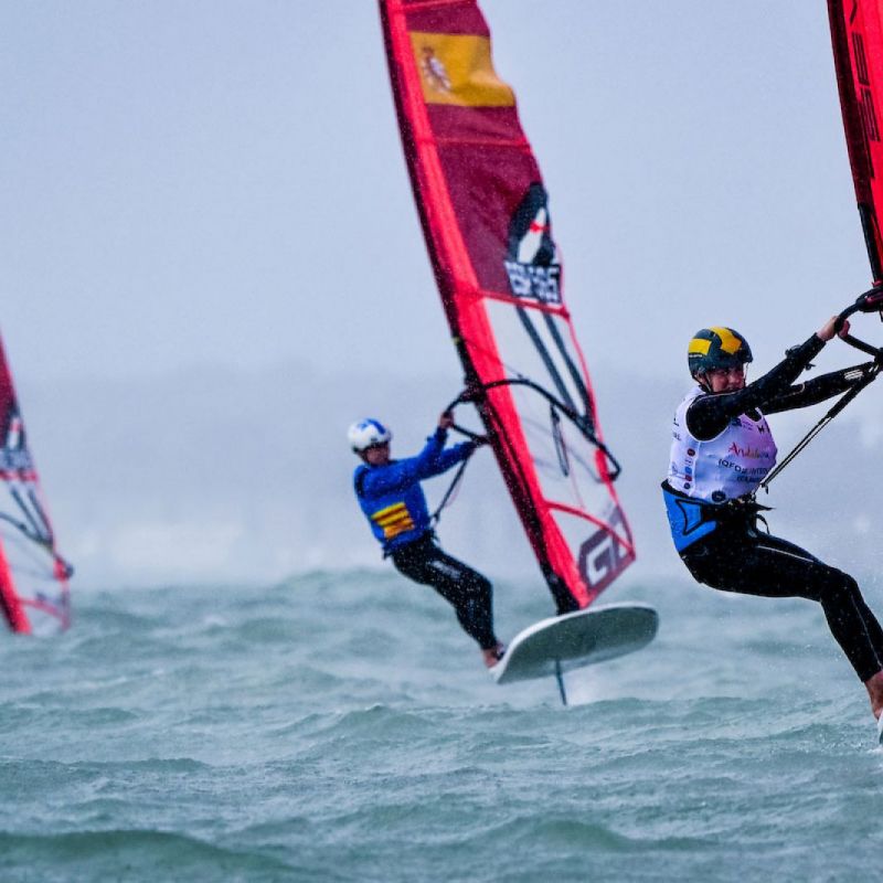 Die Senioren starteten als erste mit dem Rennen und absolvierten wie geplant vier Kursrennen auf einer Strecke, die in der Nähe zum Hafen ausgelegt wurde. Zwei der drei Olympiamedaillengewinner von Paris 2024 standen nach dem anspruchsvollen Renntag auf dem Podium. Die Bronzemedaillengewinnerin Emma Wilson führt die Damenwertung an und dominierte die Rennen mit drei Siegen und einem zweiten Platz. Die Britin bewies erneut ihre Topform nach dem Sieg auf Lanzarote. Führender bei den Herren ist der Brite Finn Hawking. Der Australier Grae Morris liegt auf Platz zwei bei den Herren. In der Damenflotte komplettieren Shahar Tibi und Tamar Steinberg aus Israel das vorläufige Podium. Bei den Herren belegte Noah Lyons aus den USA den vorläufigen dritten Platz.
