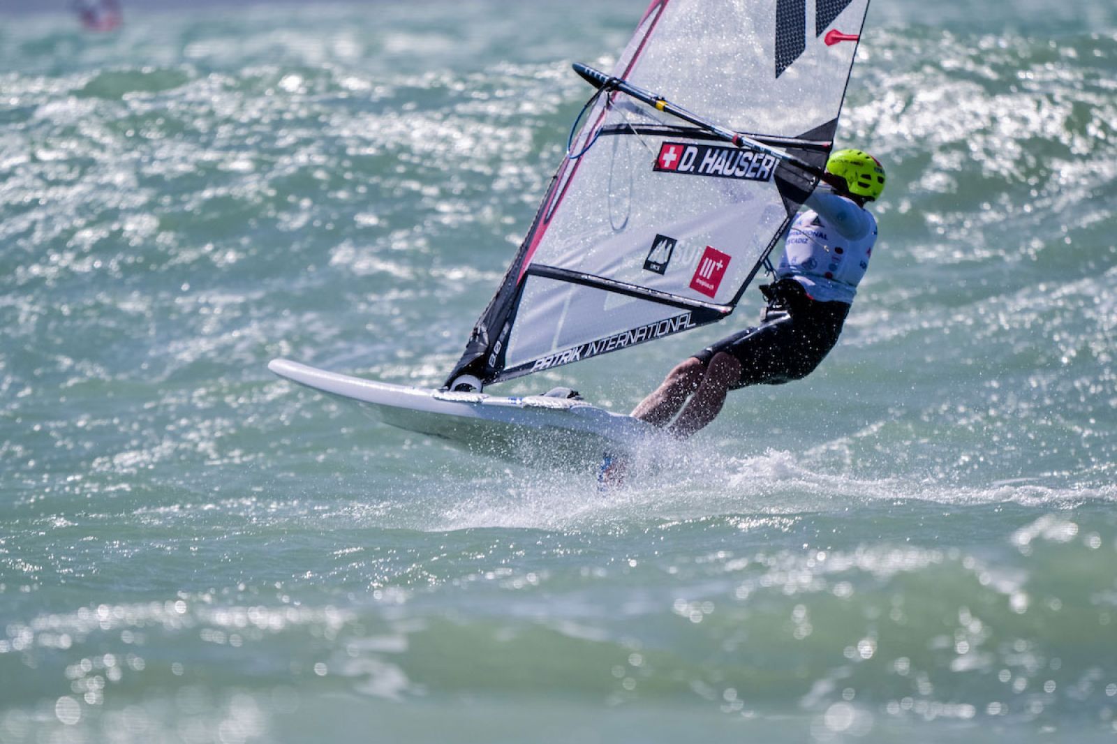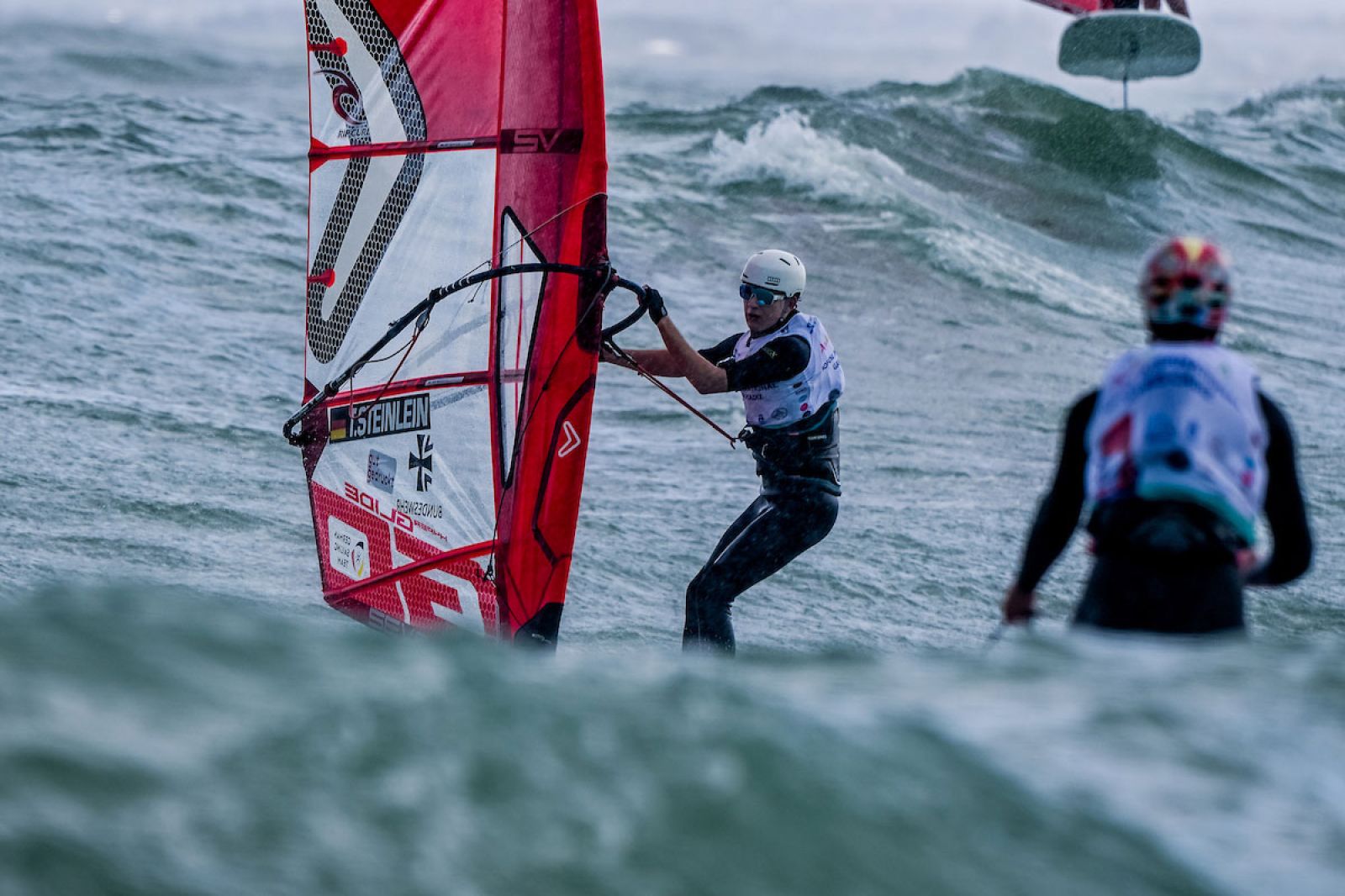 Starke Winde, hohe Wellen und Schauerböen stellten die 240 Athletinnen und Athleten am ersten Wettkampftag auf die Probe. Emma Wilson dominierte mit drei Rennsiegen das Feld bei den Damen, bei den Herren setzte sich Finn Hawkings vorläufig an die Spitze.