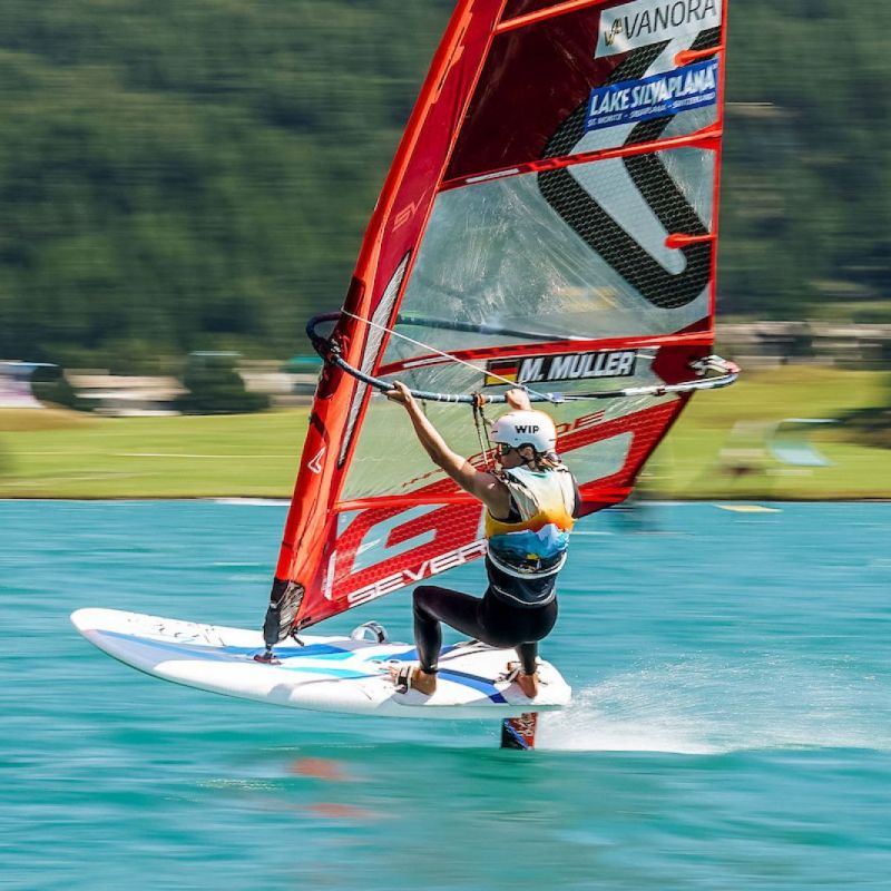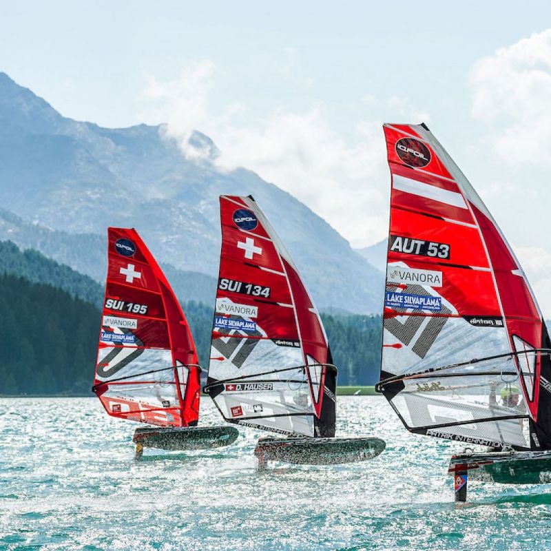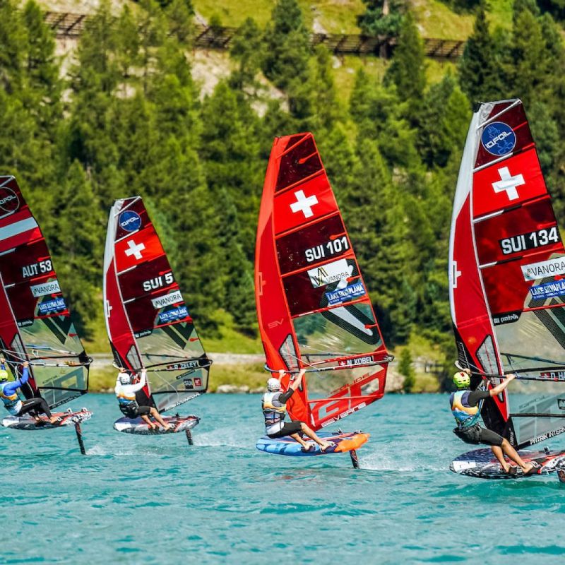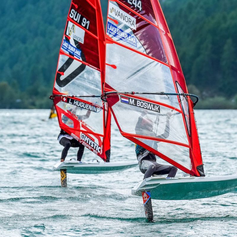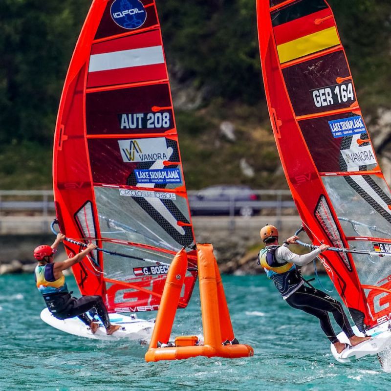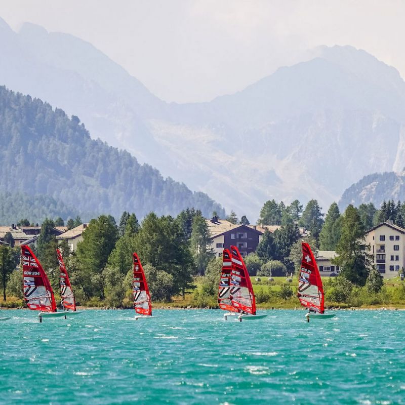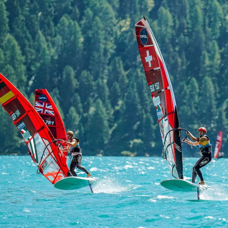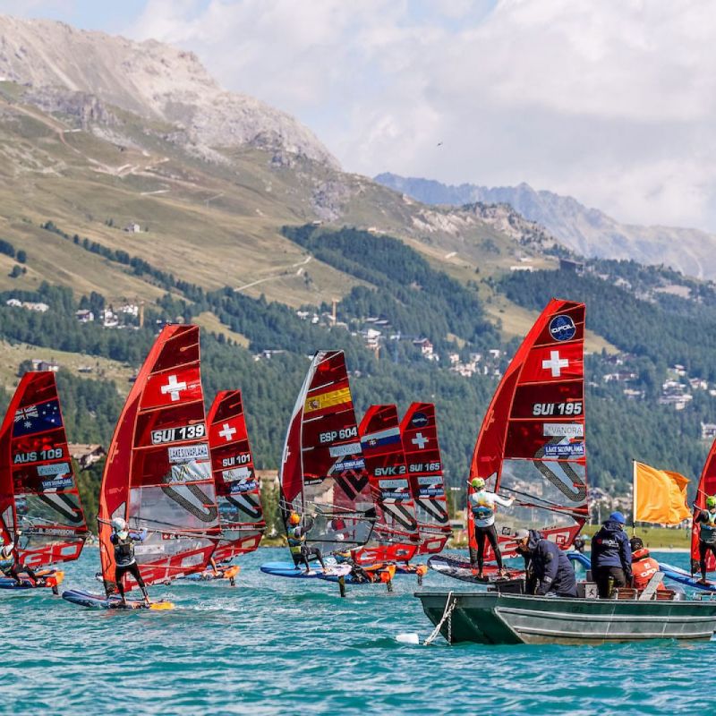 Die Veranstaltung startete mit einem spektakulären Renntag, an dem der berühmte Malojawind kräftig auffrischte und jedem Feld fünf aufregende Rennen bescherte. Mit Geschwindigkeiten von über 20 Knoten zeigte der Eröffnungstag das Beste des iQFOiL: schnell, technisch und adrenalingeladen lieferte sich das Teilnehmerfeld spannende Rennen. Danach jedoch zeigten die Berge ihre ganze Kraft. Vier Tage lang erwies sich der Wind als zu instabil für offizielle Rennen und stellte die Teilnehmer auf eine Geduldsprobe.