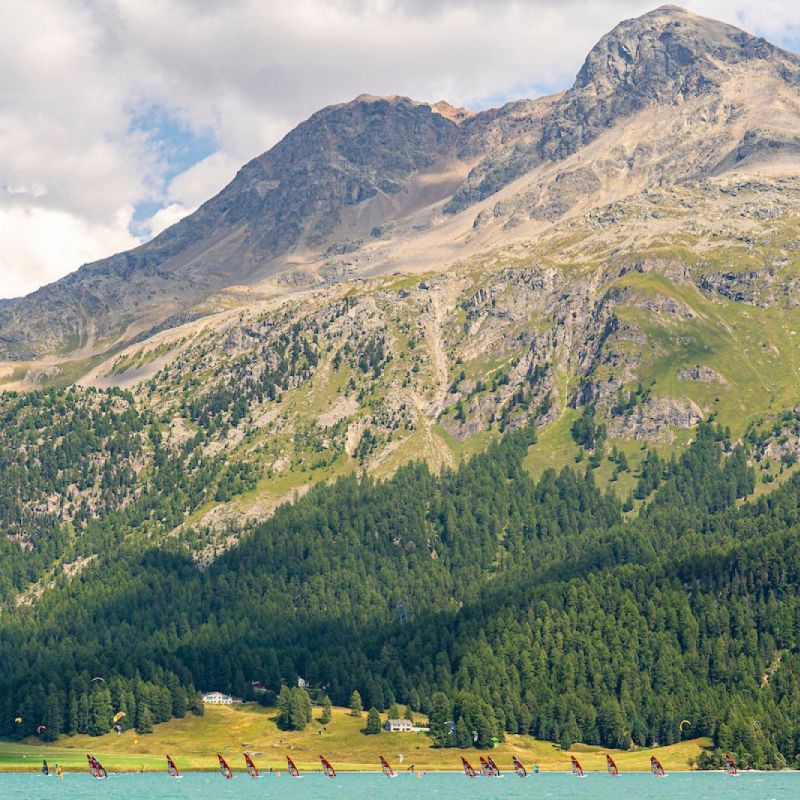 Mit konstanten Winden, einer atemberaubenden Landschaft und hochkarätigen Wettkämpfen unterstrich der erste Tag erneut den Status von Silvaplana als Weltklasse-Austragungsort für den Segelsport.