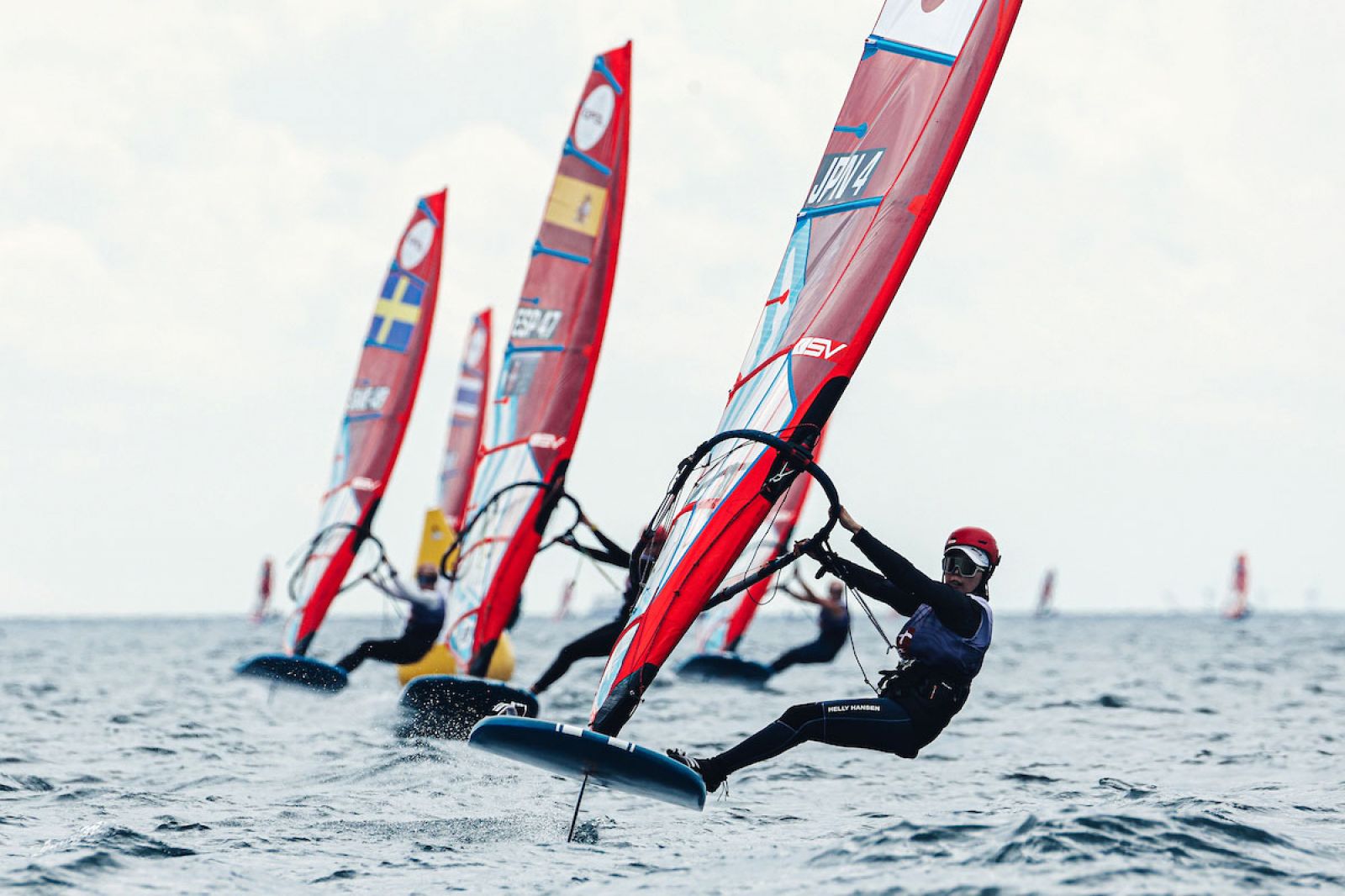 von Sven BlockDer erste Wettkampftag bei den iQFOiL World Championships in Aarhus stellte das Fahrerfeld auf eine harte Probe, der Wind wechselte im Laufe des Tages sowohl in Richtung als auch in Intensität. Bei einer Brise zwischen 12 und 15 Knoten aus westlicher Richtung mit technisch und taktisch anspruchsvollen Bedingungen konnten sowohl bei den Damen wie bei den Herren erste Läufe gestartet werden, bevor der Wind langsam nachließ.
